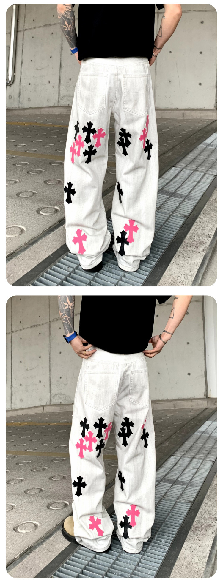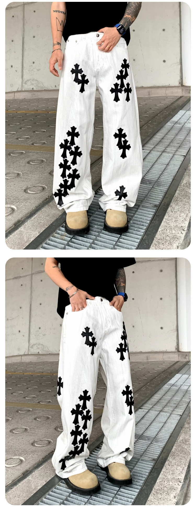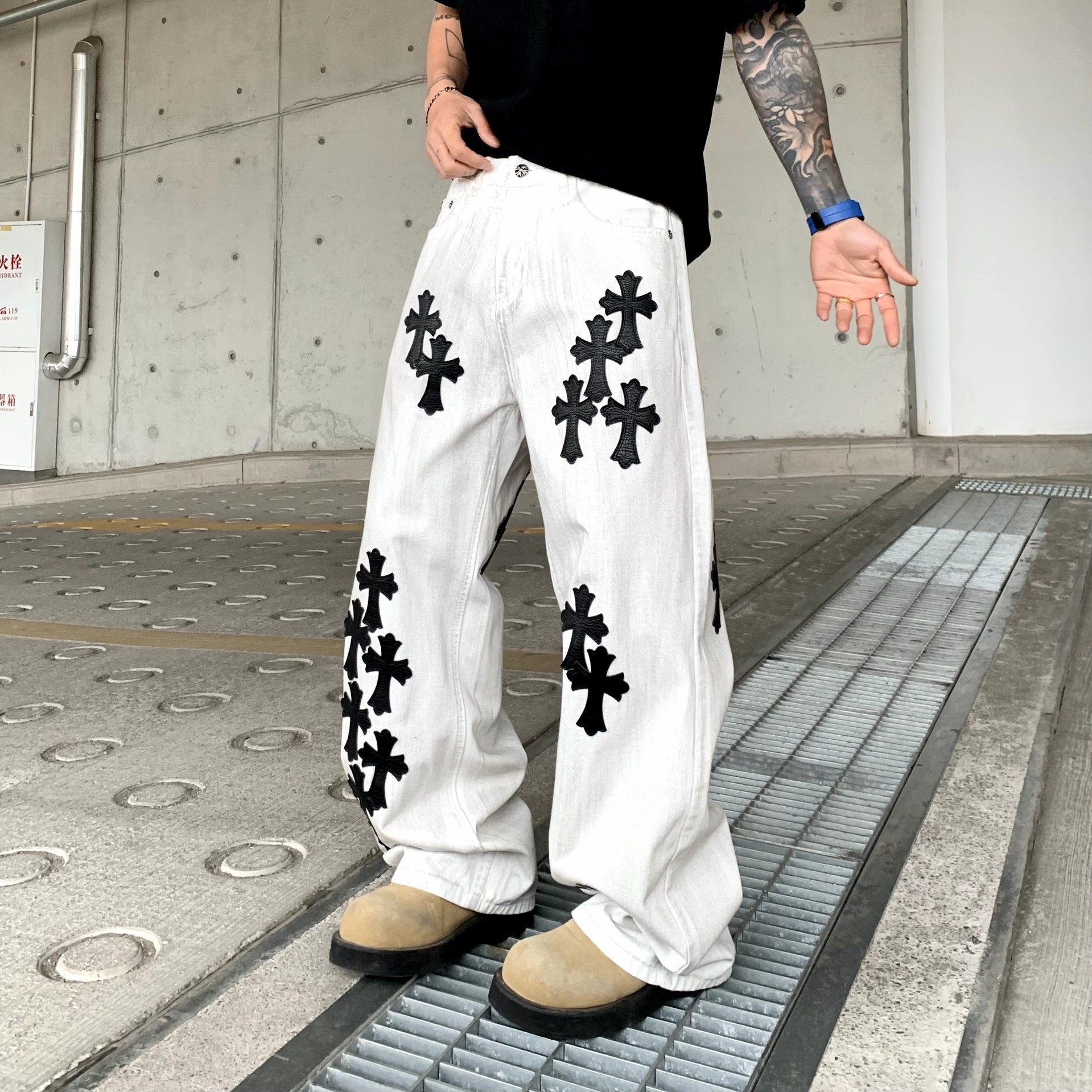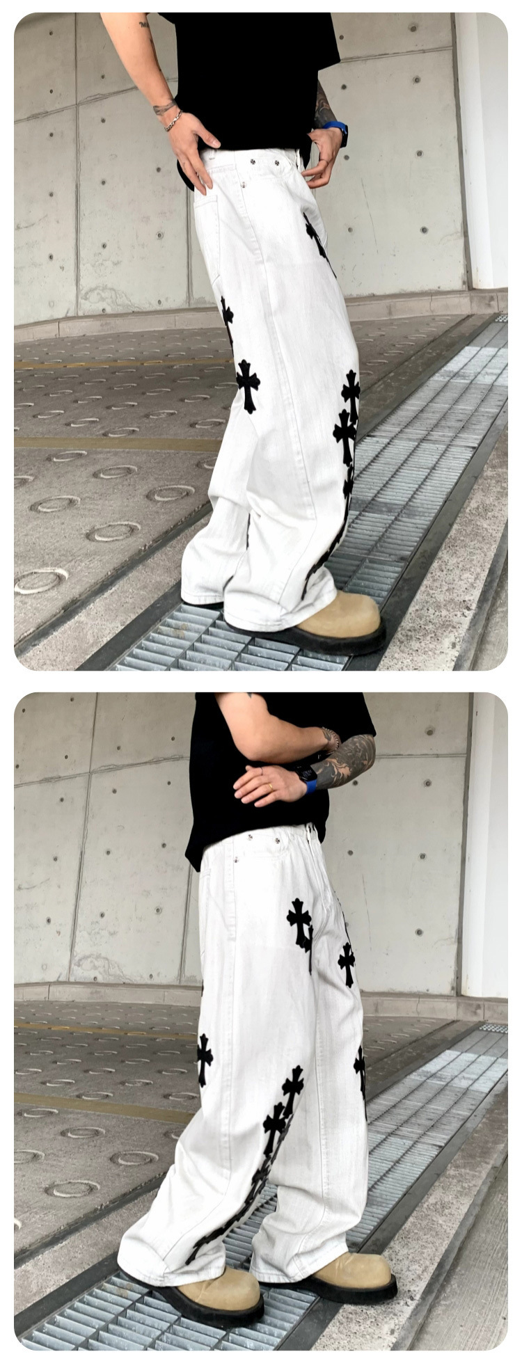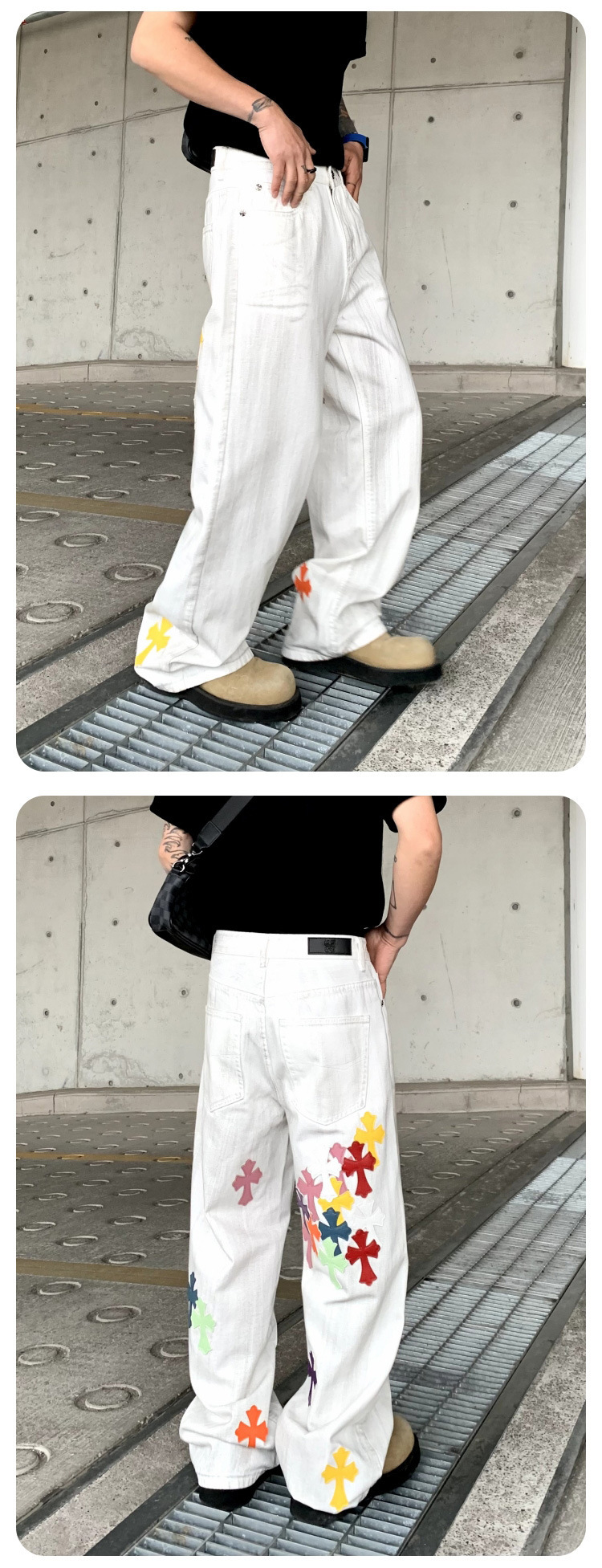 뉴 크로우 청바지 남성 아메리칸 패션 브랜드 크로스 루즈 스트레이트 캐주얼 와이드 팬츠 남성 여름스토어 가기