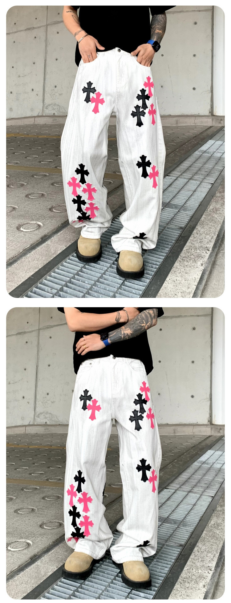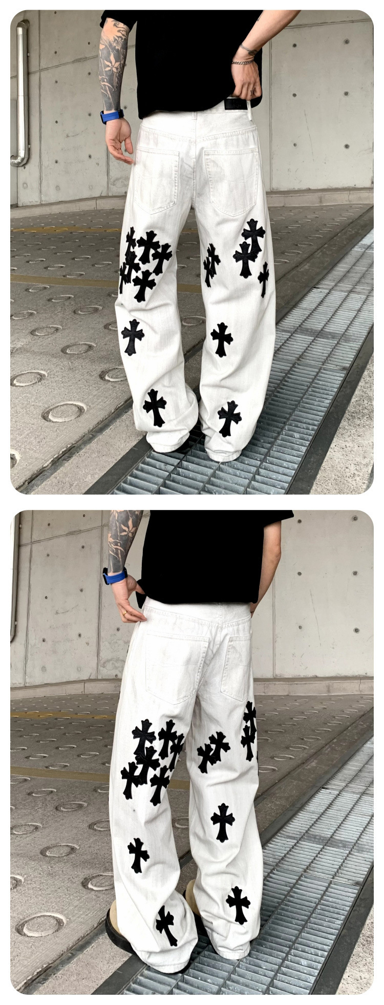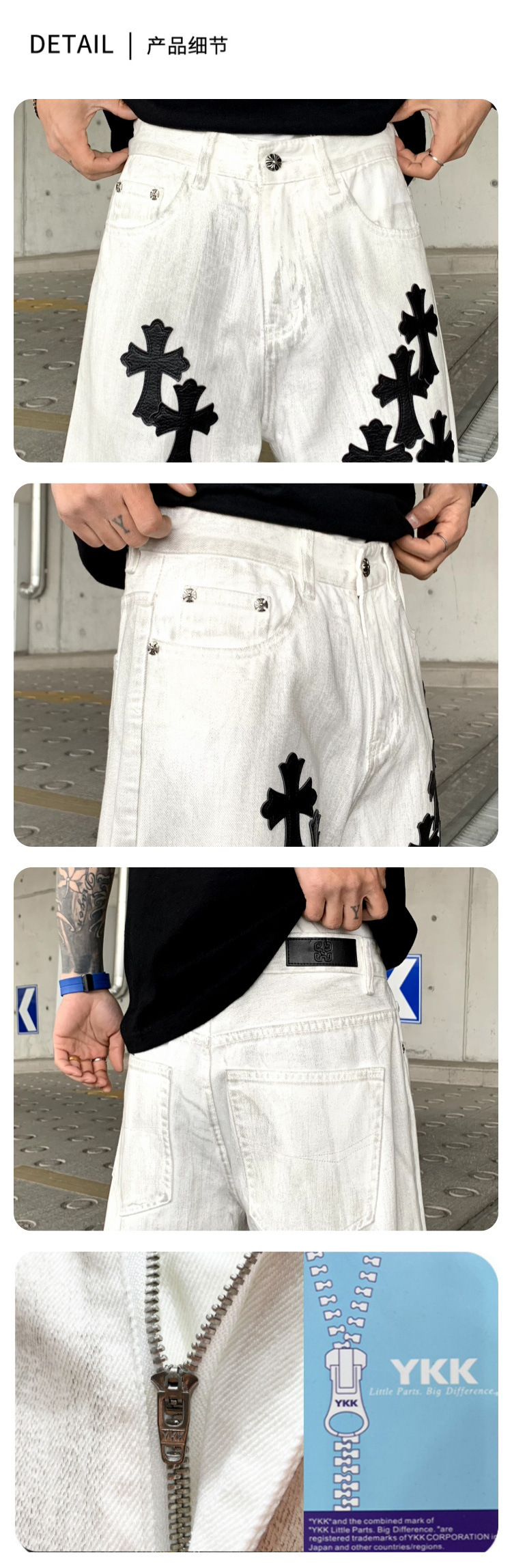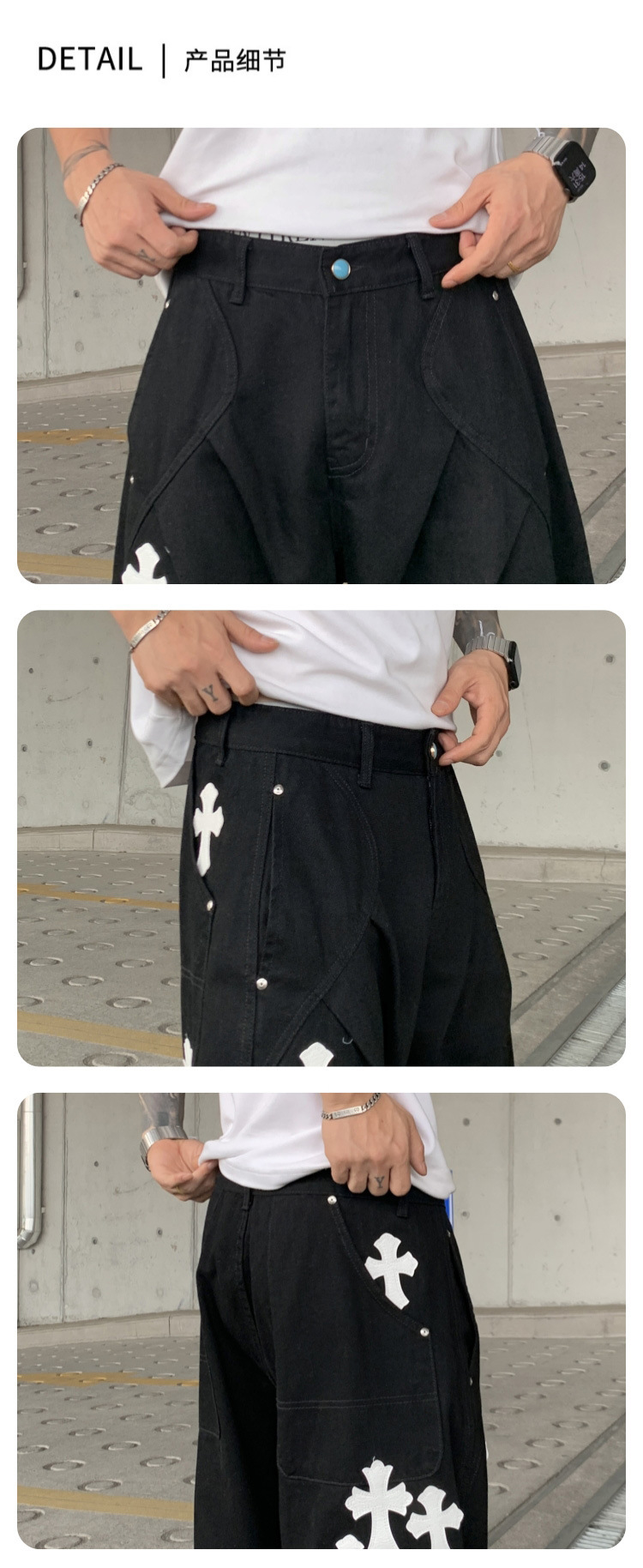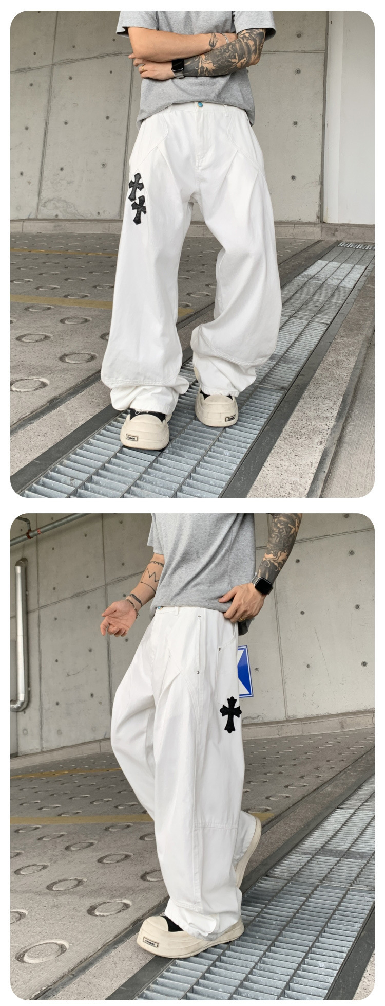 뉴 크로우 청바지 남성 아메리칸 패션 브랜드 크로스 루즈 스트레이트 캐주얼 와이드 팬츠 남성 여름스토어 가기