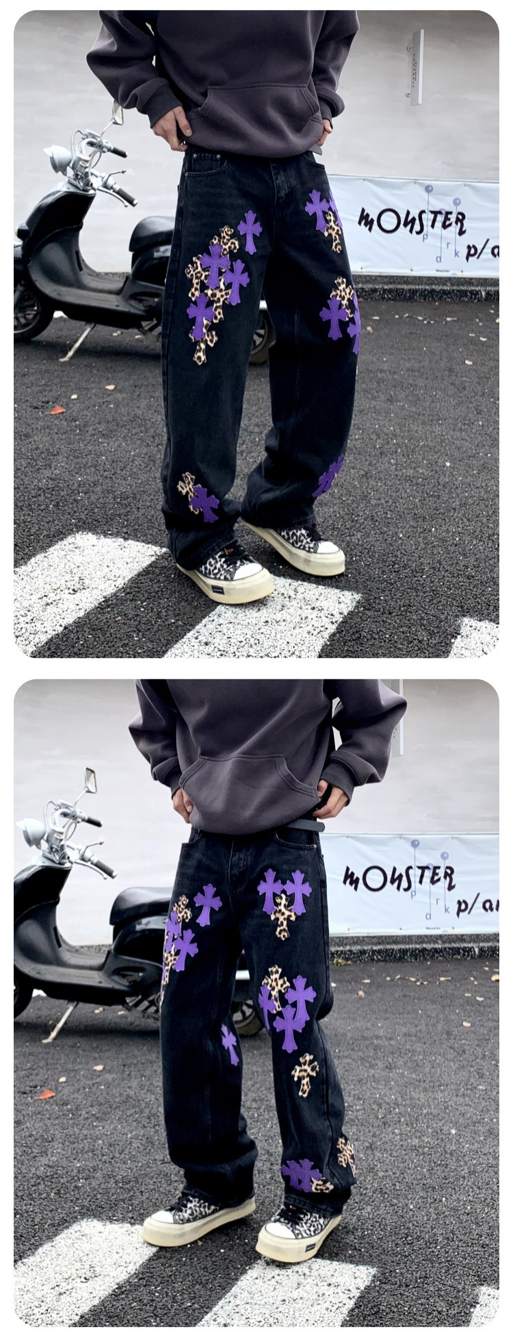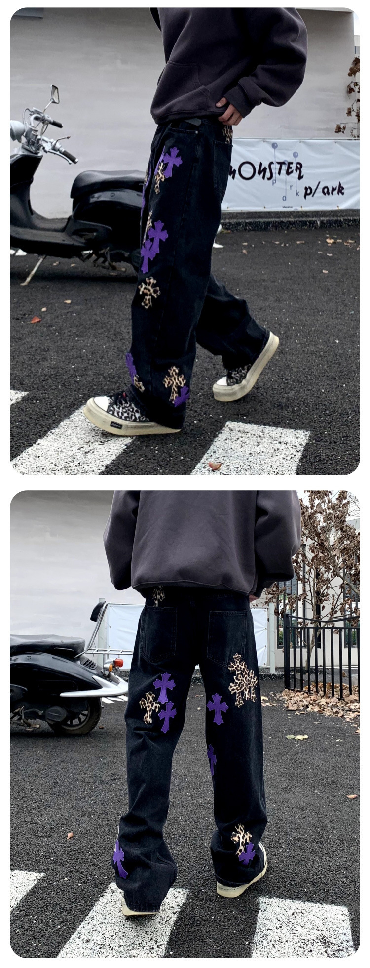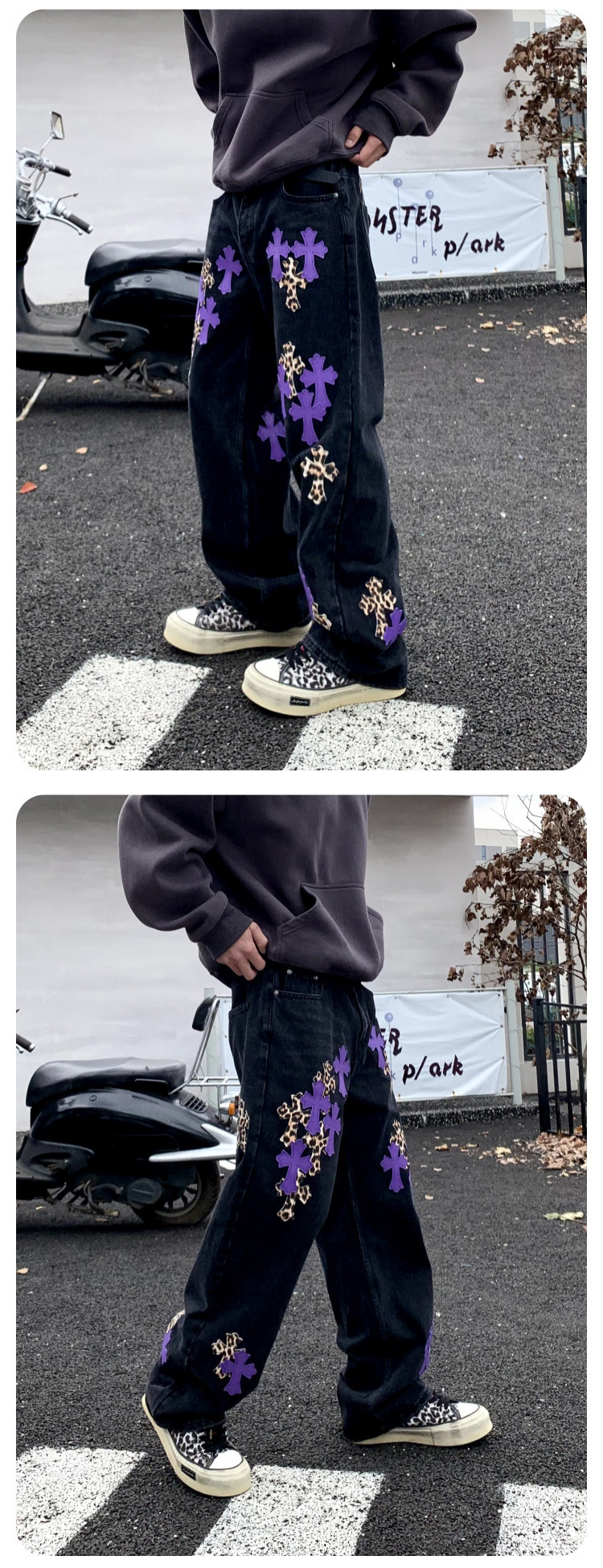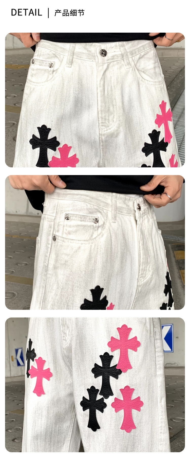 뉴 크로우 청바지 남성 아메리칸 패션 브랜드 크로스 루즈 스트레이트 캐주얼 와이드 팬츠 남성 여름스토어 가기
