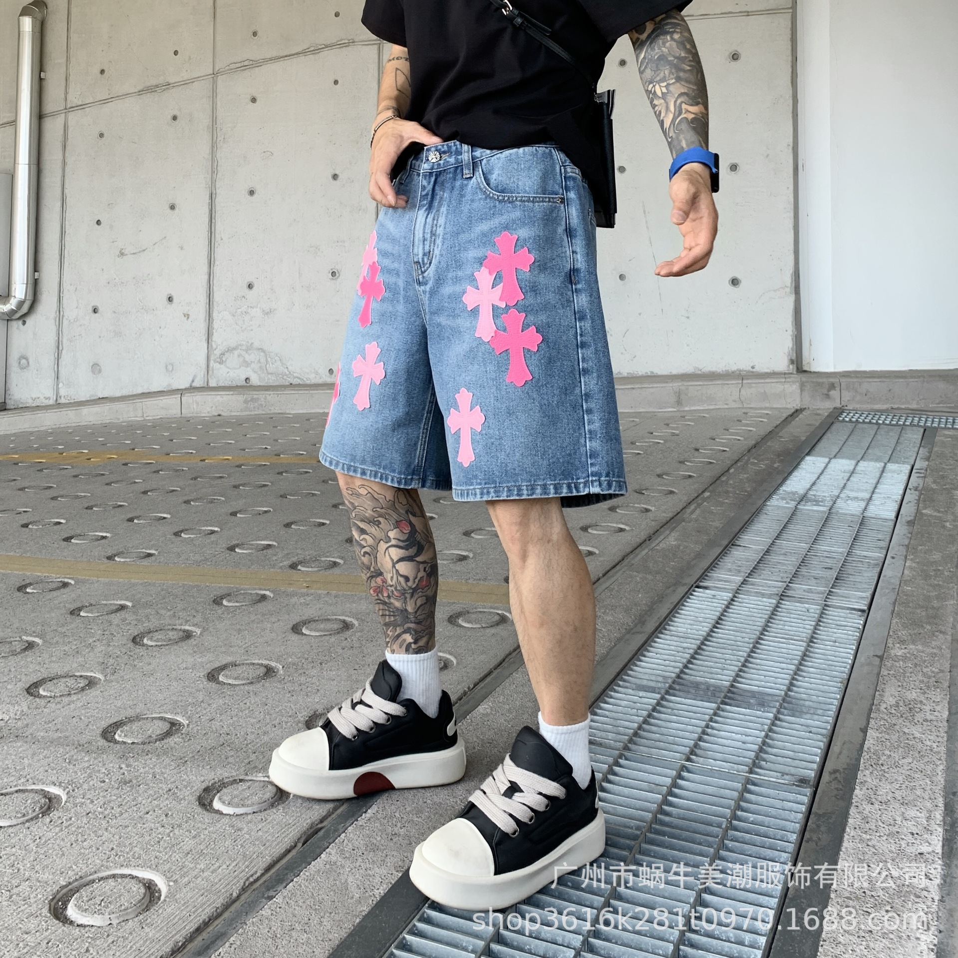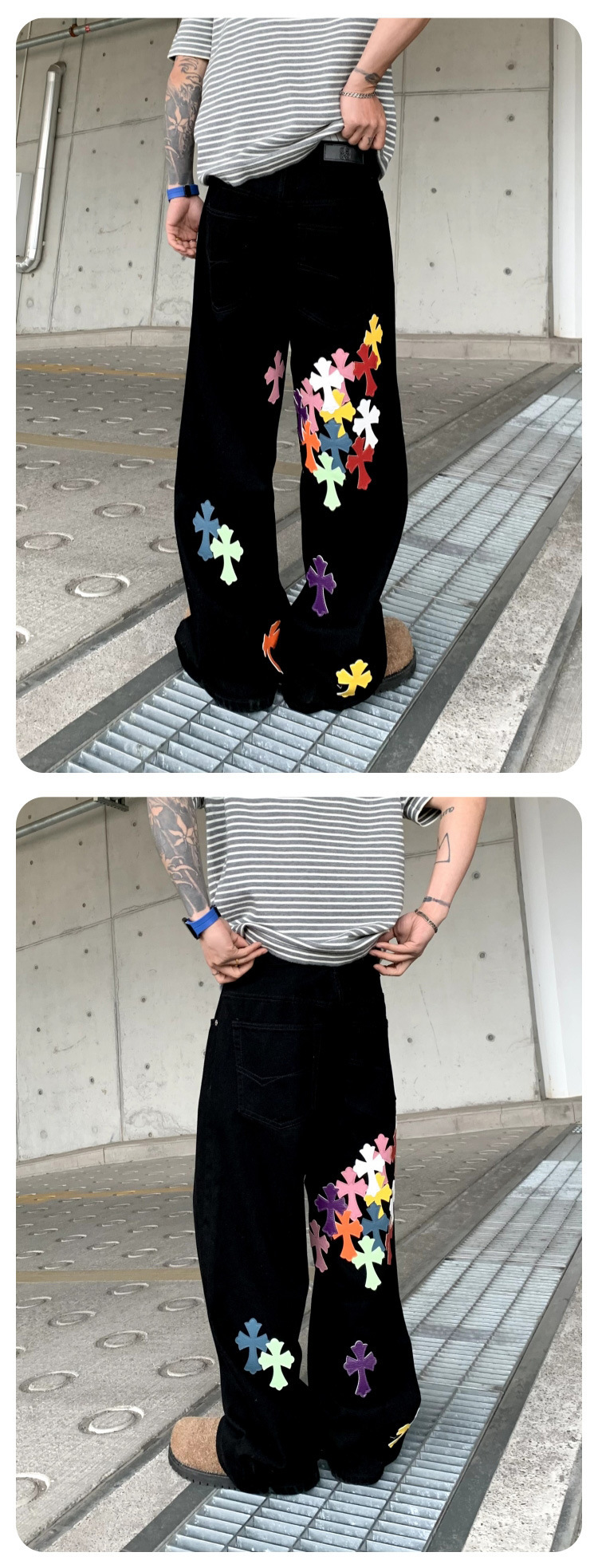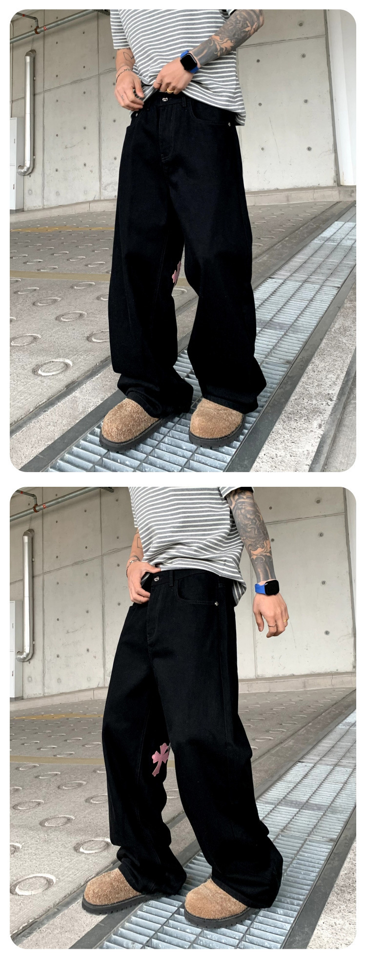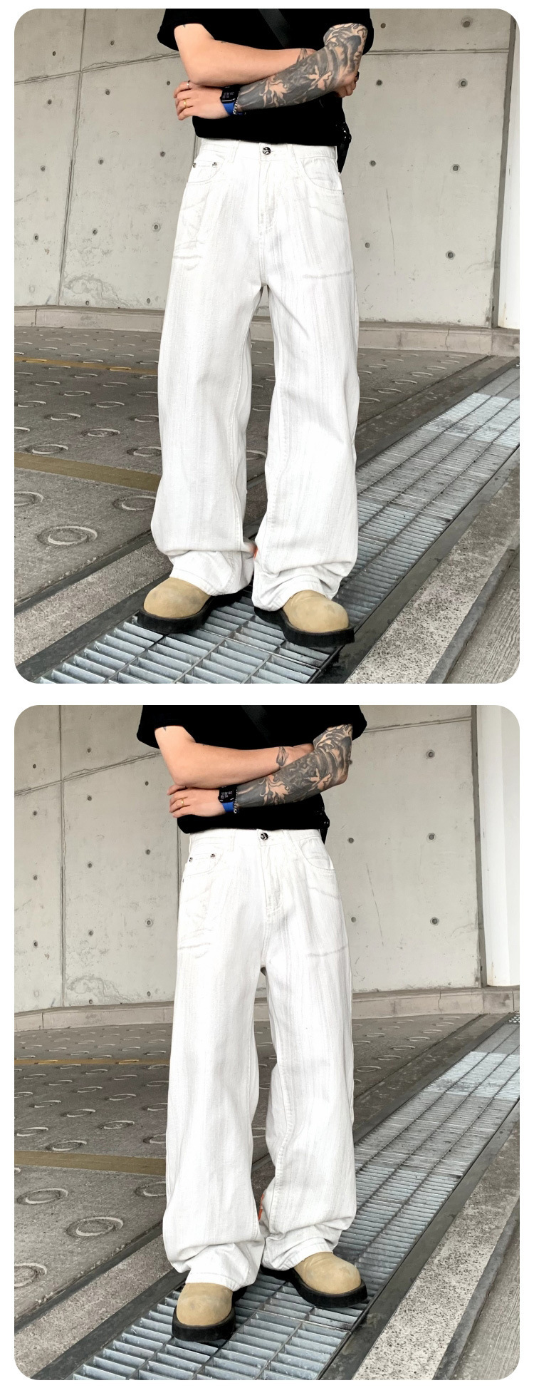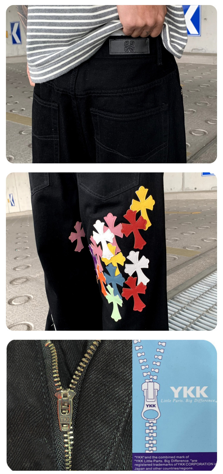 뉴 크로우 청바지 남성 아메리칸 패션 브랜드 크로스 루즈 스트레이트 캐주얼 와이드 팬츠 남성 여름스토어 가기