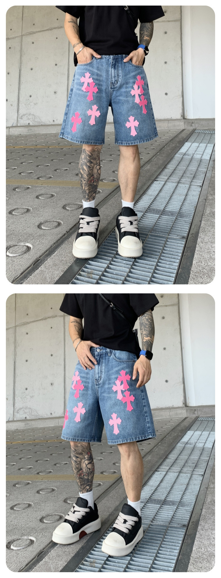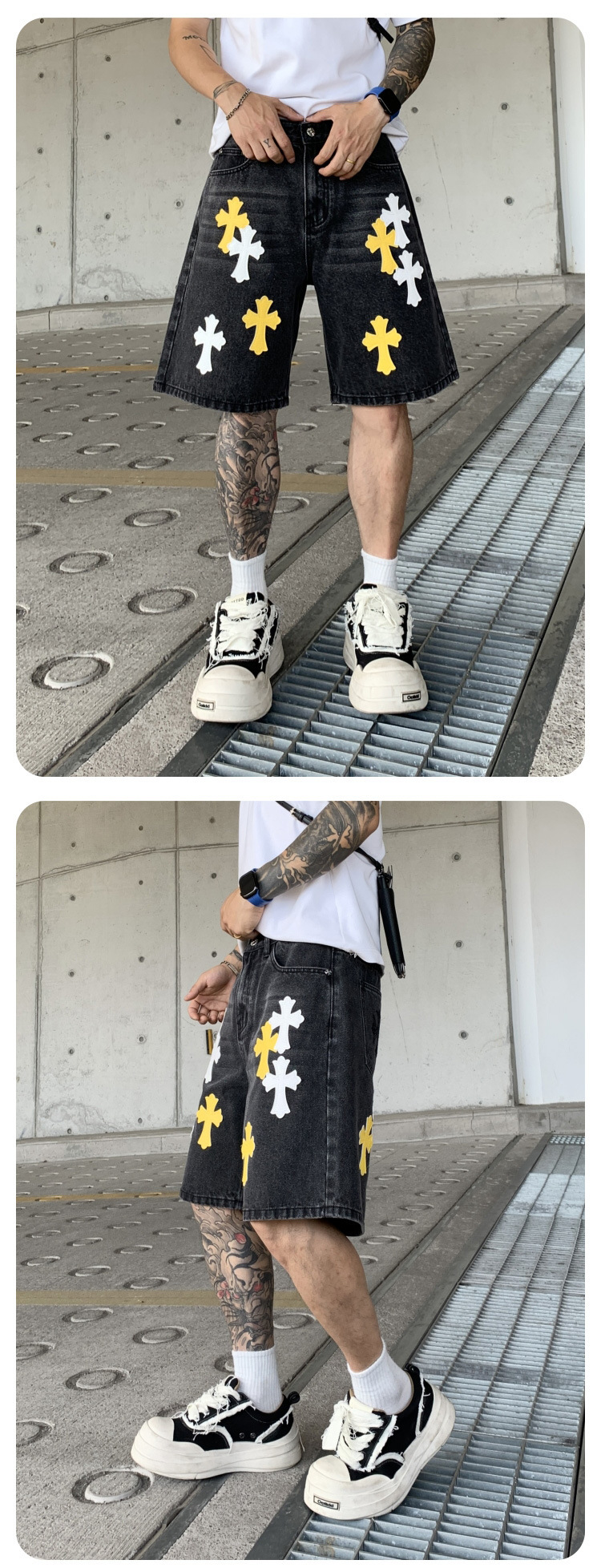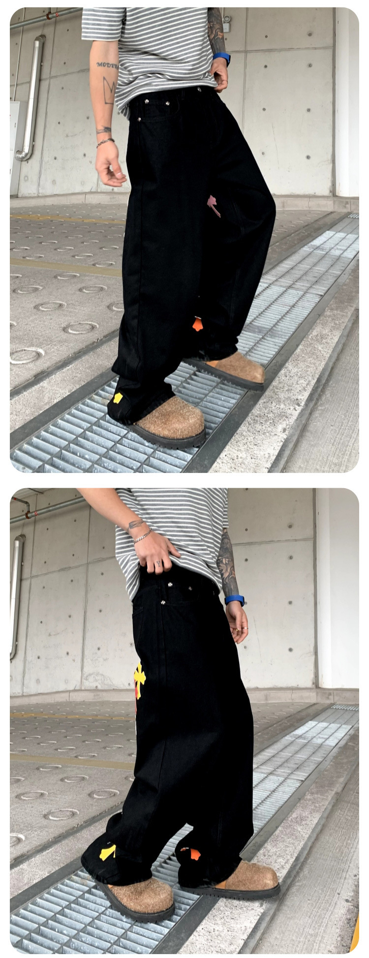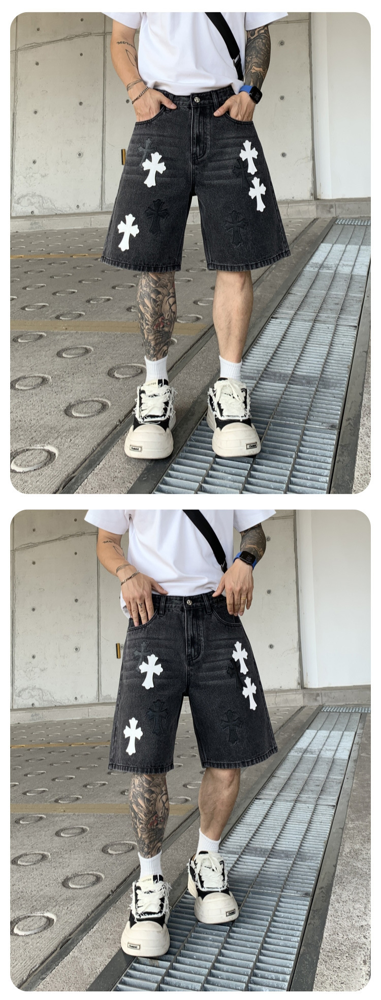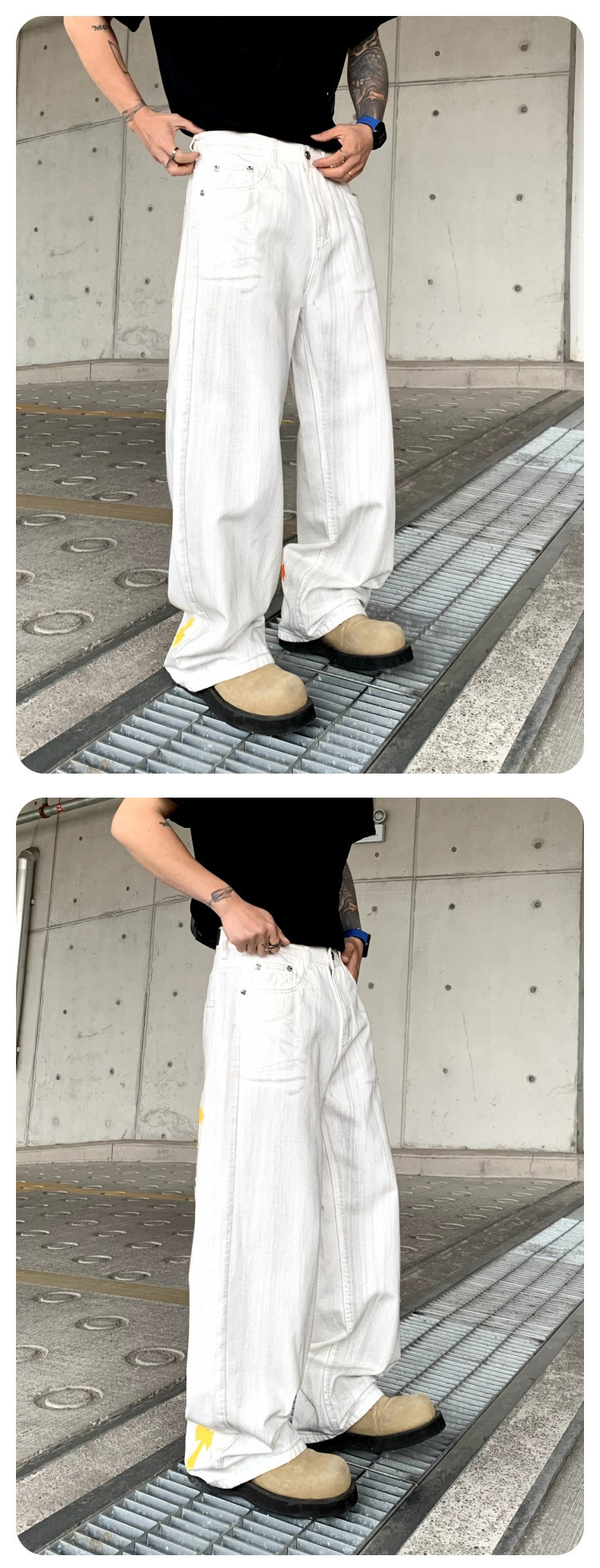 뉴 크로우 청바지 남성 아메리칸 패션 브랜드 크로스 루즈 스트레이트 캐주얼 와이드 팬츠 남성 여름스토어 가기