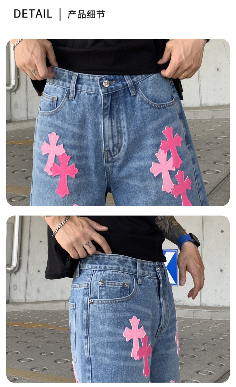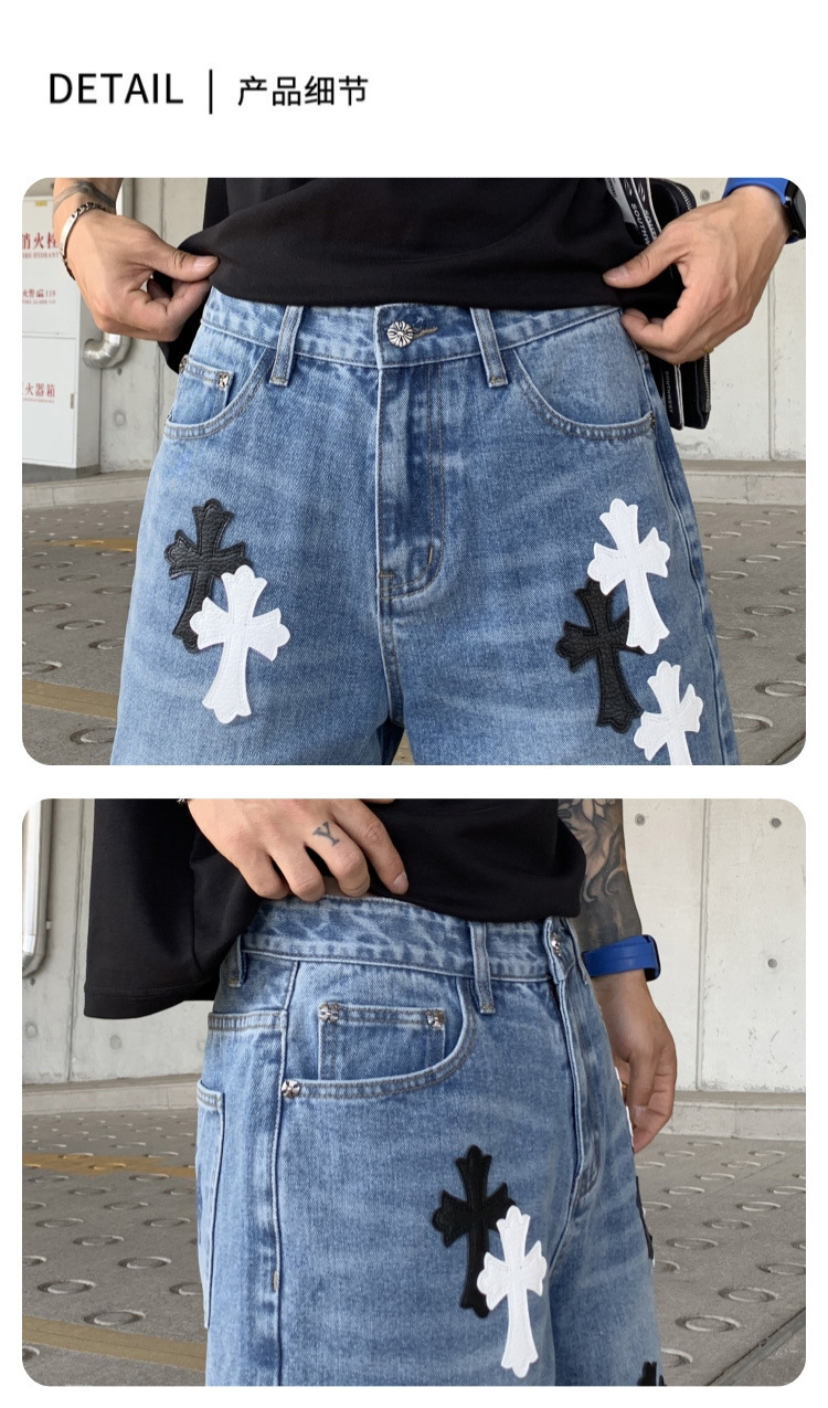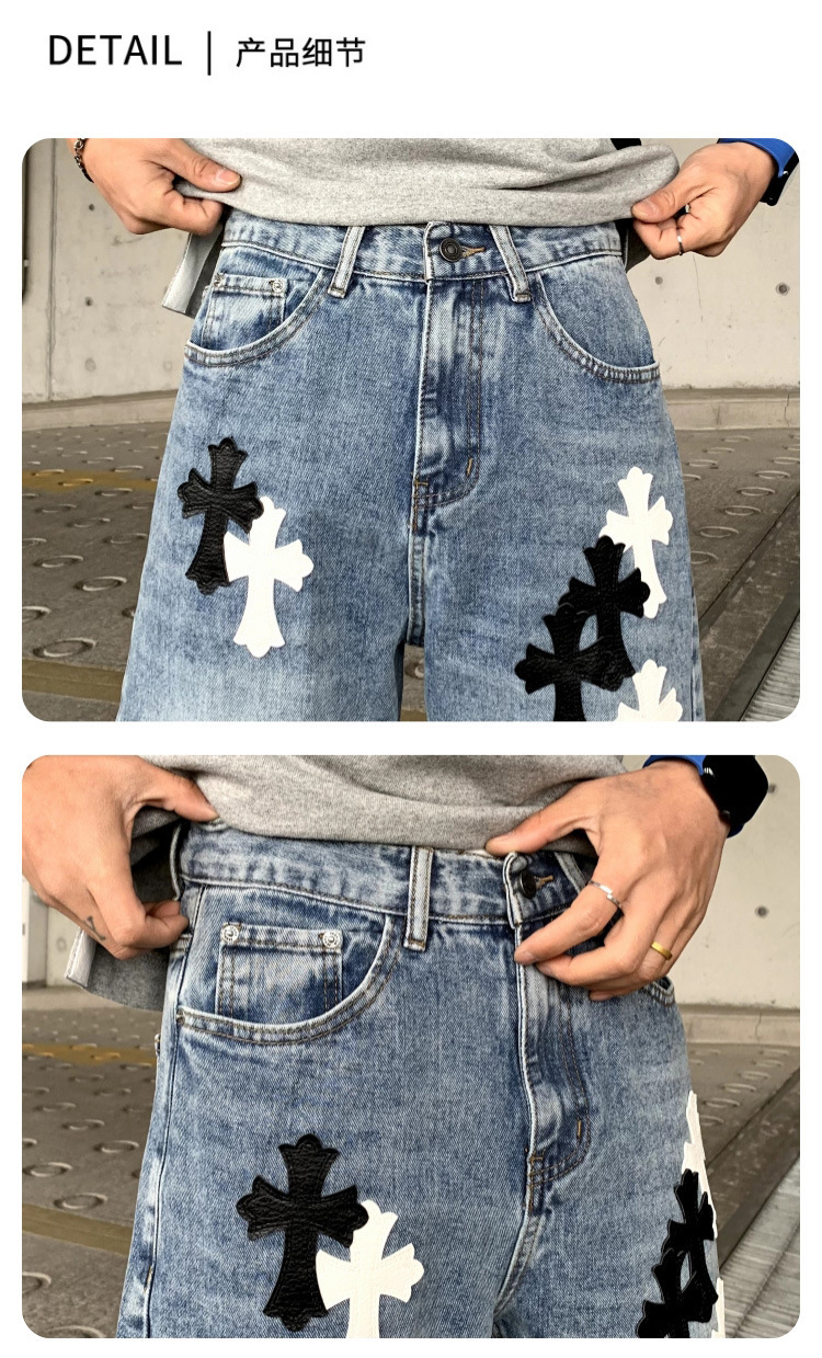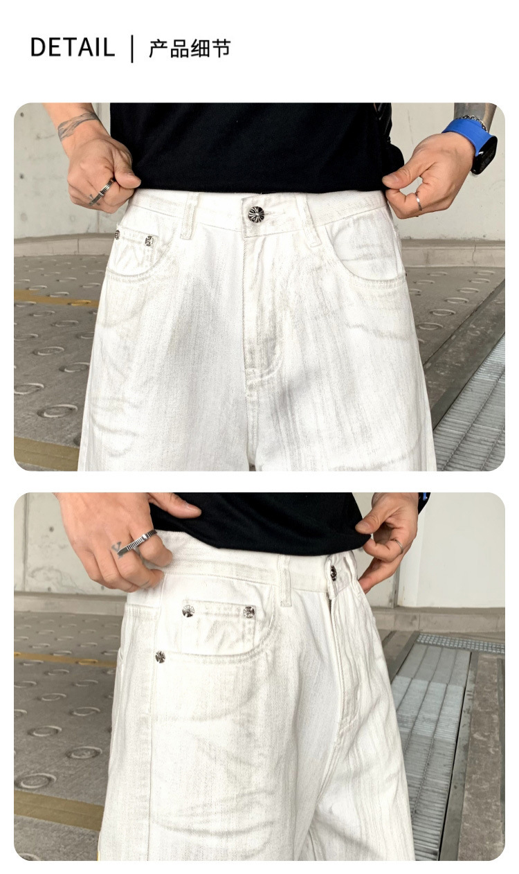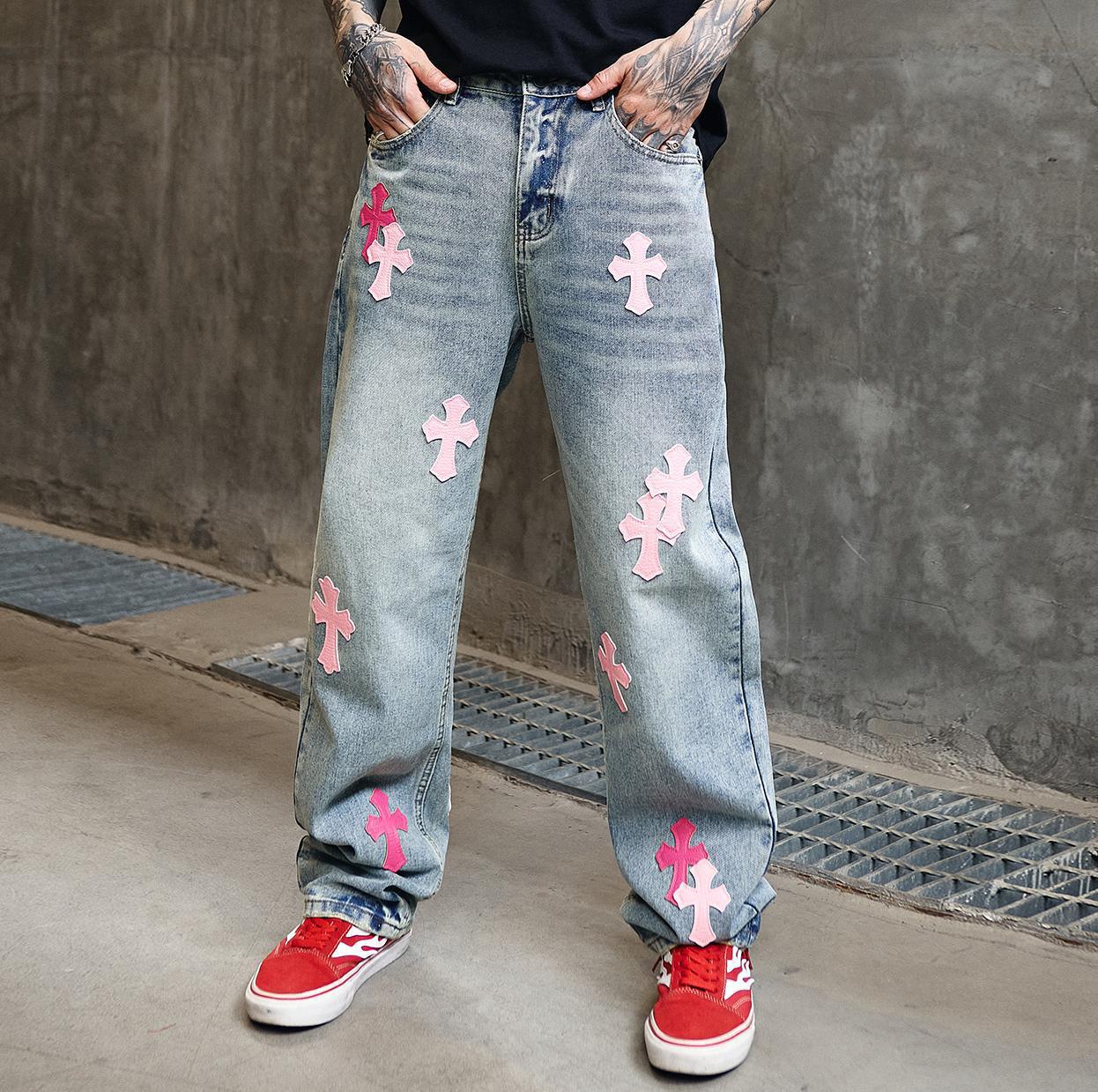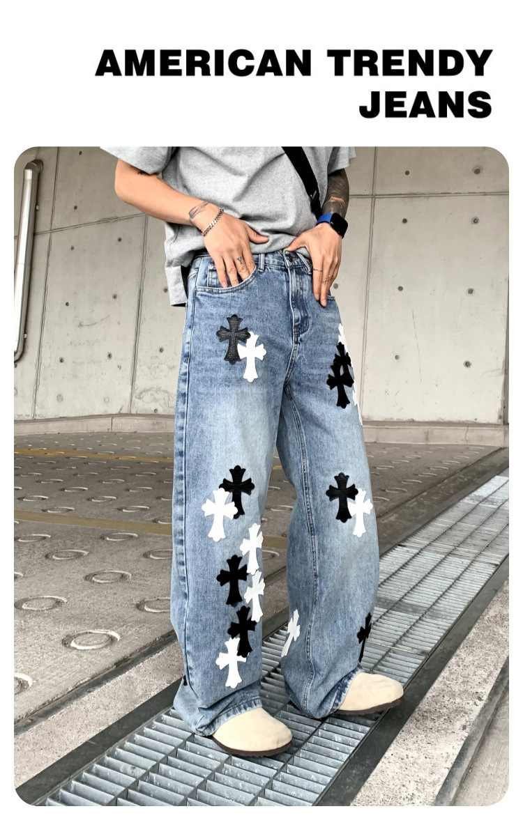 뉴 크로우 청바지 남성 아메리칸 패션 브랜드 크로스 루즈 스트레이트 캐주얼 와이드 팬츠 남성 여름