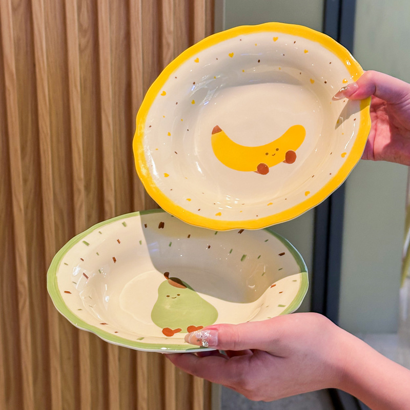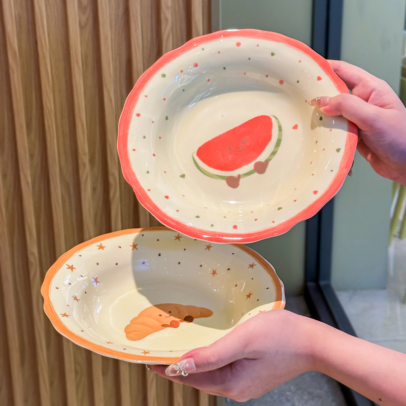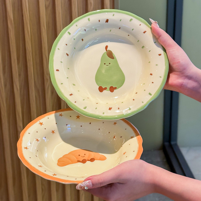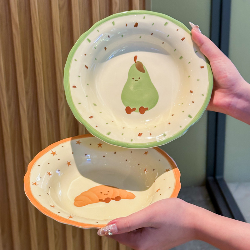 크로아상 세라믹 접시 홈 다이닝 접시 2025 새로운 고가치 원형 접시 귀여운 어린이 아침 식사 접시 식기 세트