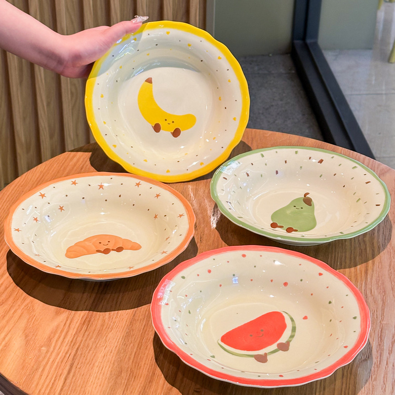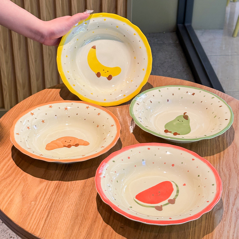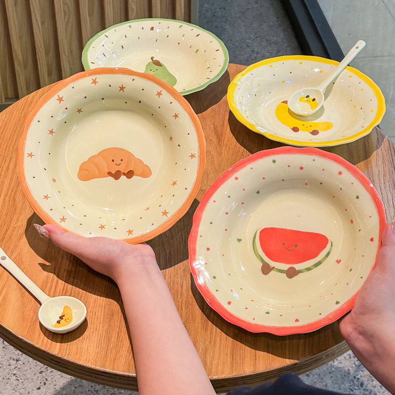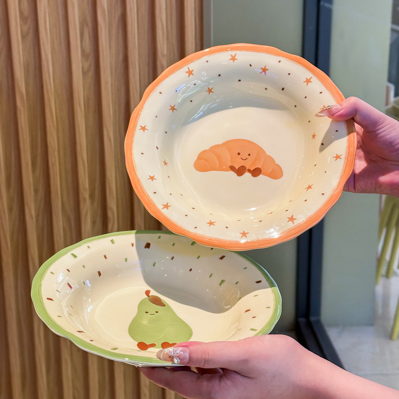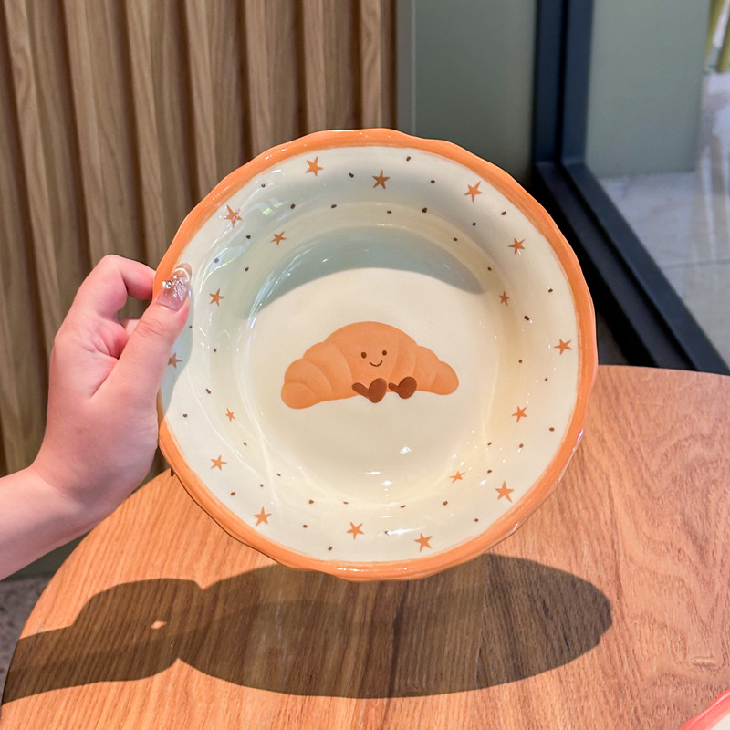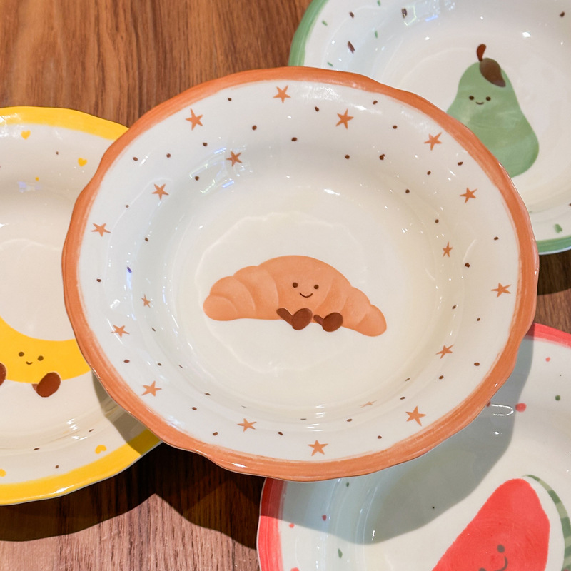 크로아상 세라믹 접시 홈 다이닝 접시 2025 새로운 고가치 원형 접시 귀여운 어린이 아침 식사 접시 식기 세트스토어 가기