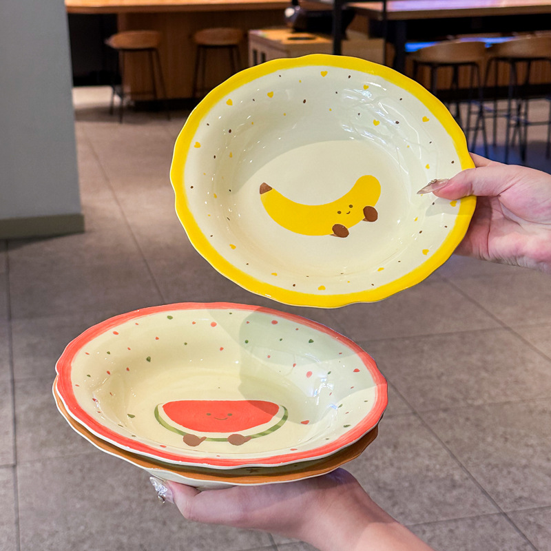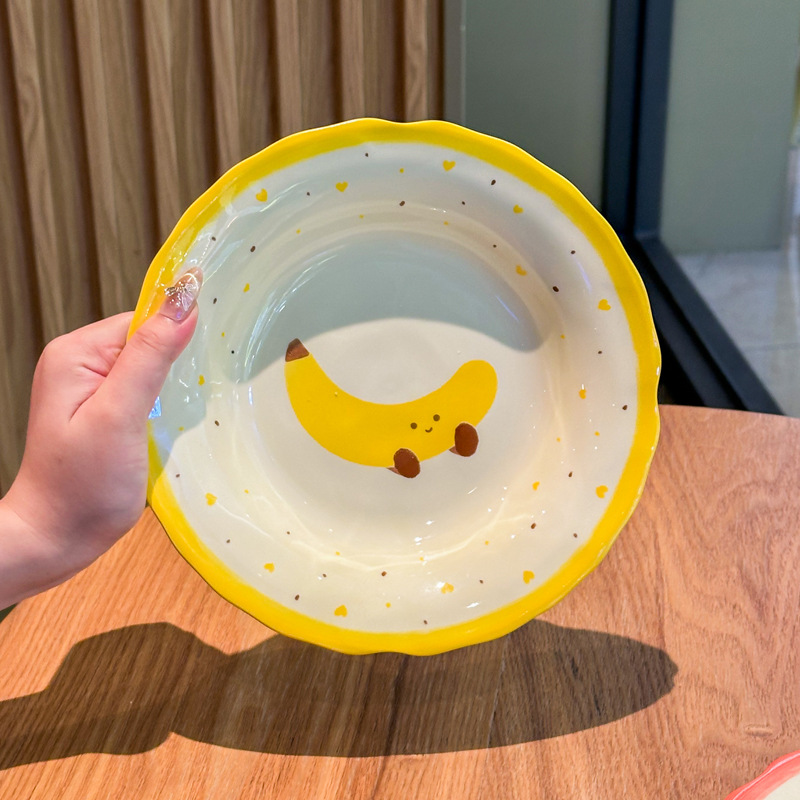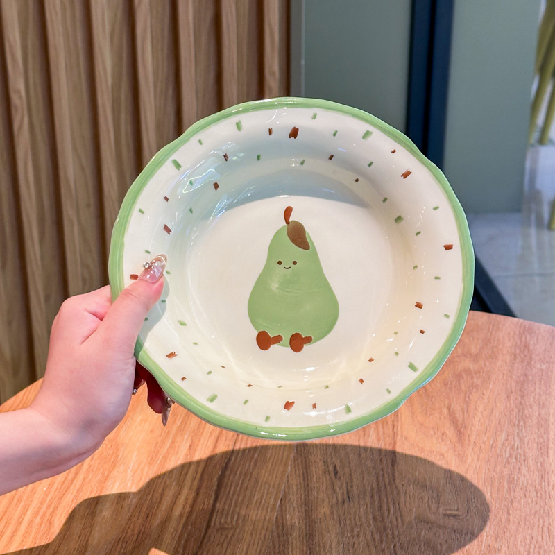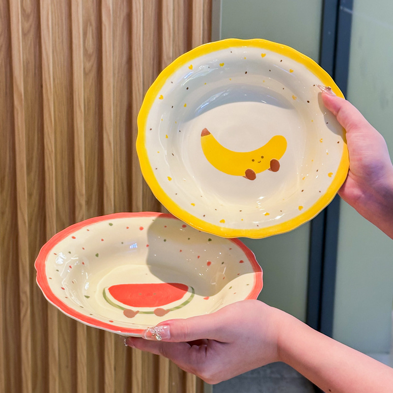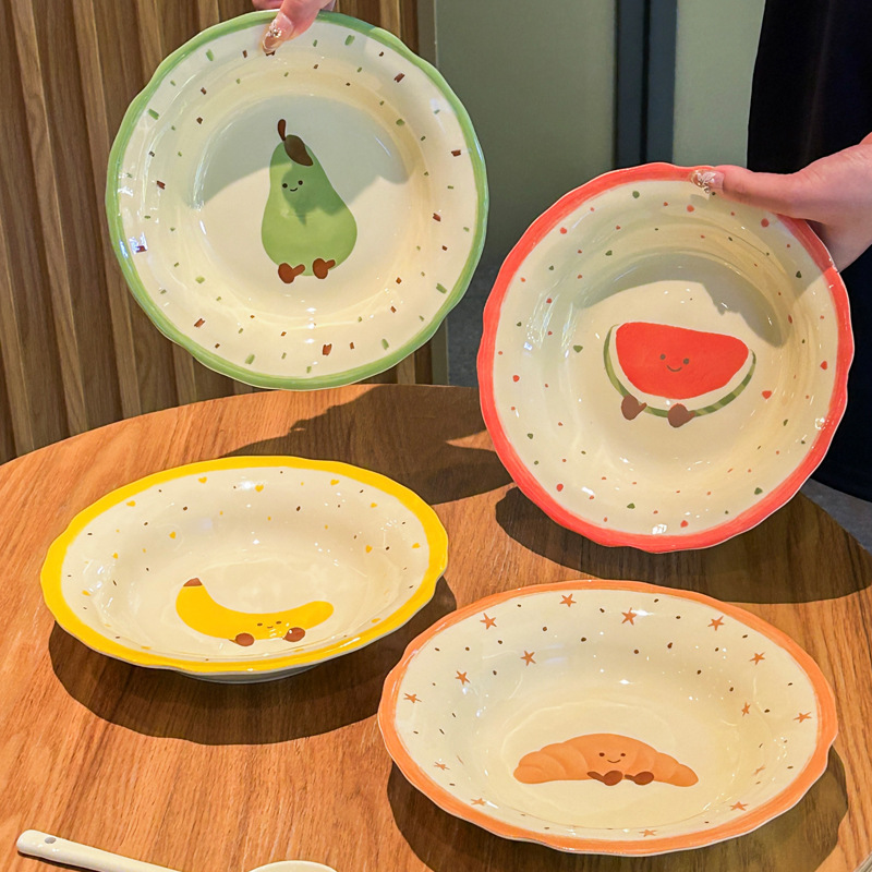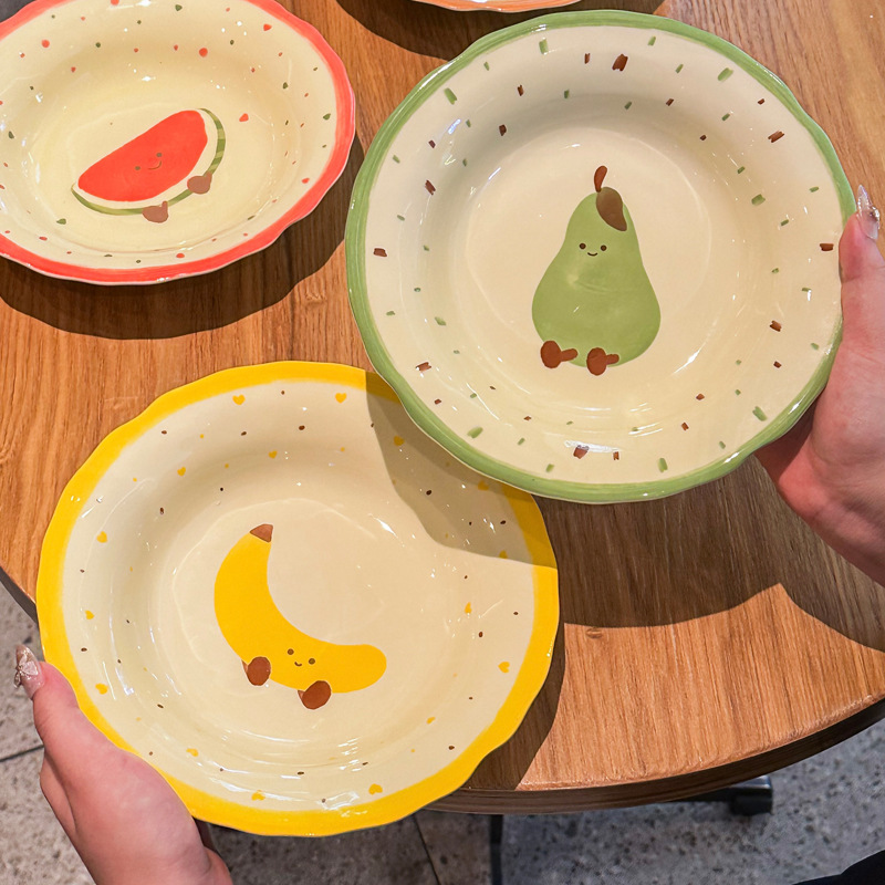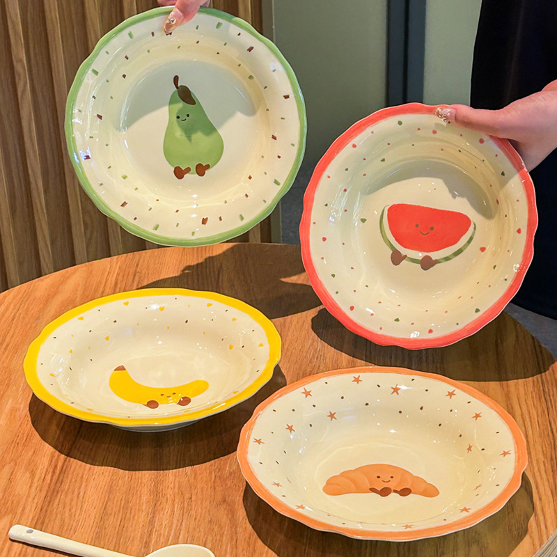 크로아상 세라믹 접시 홈 다이닝 접시 2025 새로운 고가치 원형 접시 귀여운 어린이 아침 식사 접시 식기 세트스토어 가기