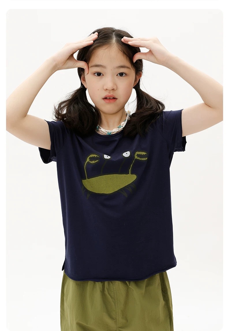어린이 소년 소녀 여름 시원하고 부드럽고 통기성이 좋으며 편안하고 재미있는 반팔 티셔츠 캐주얼하고 심플한 학생용스토어 가기