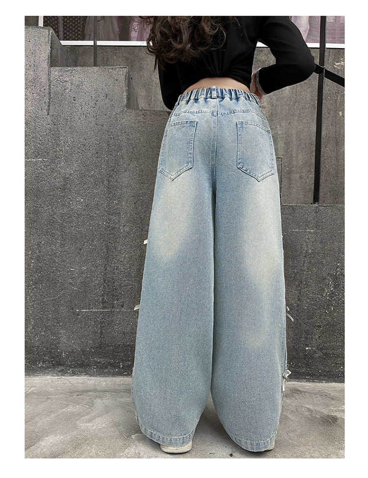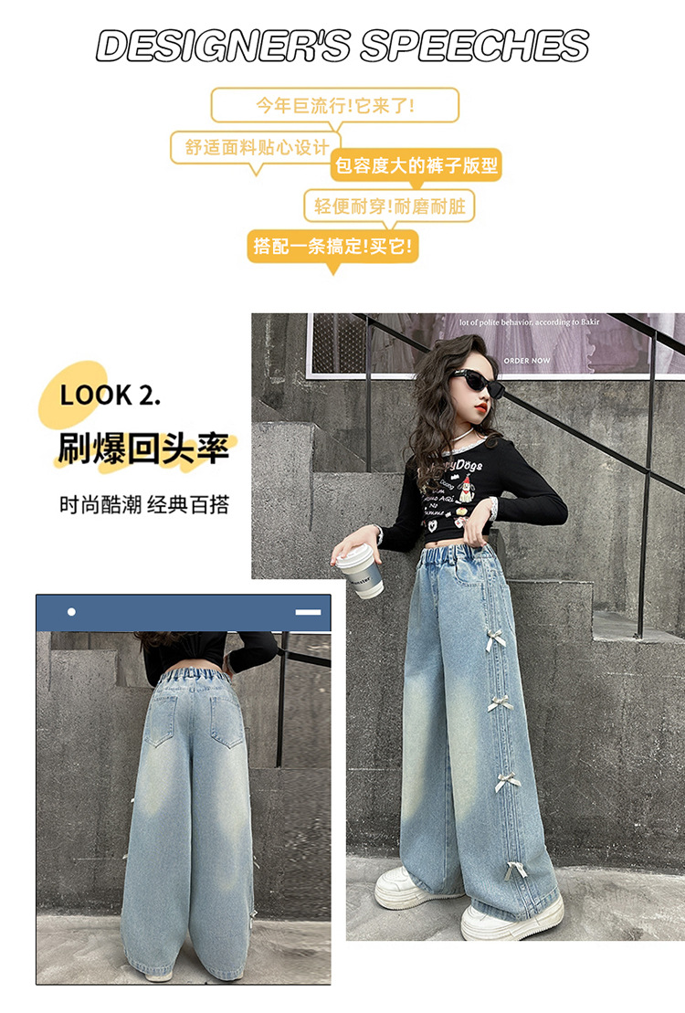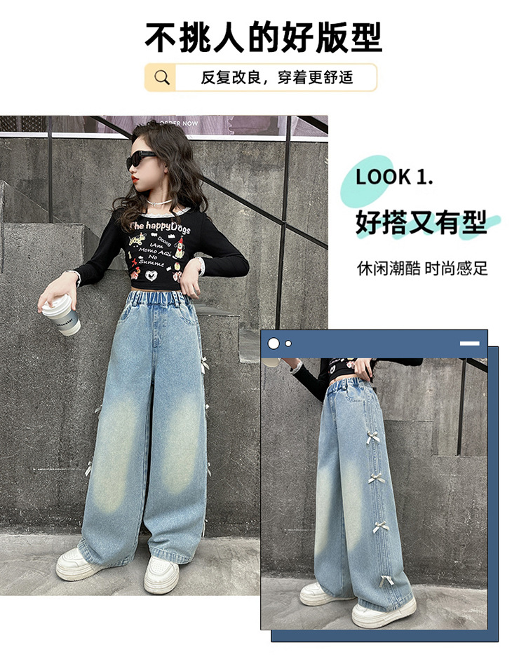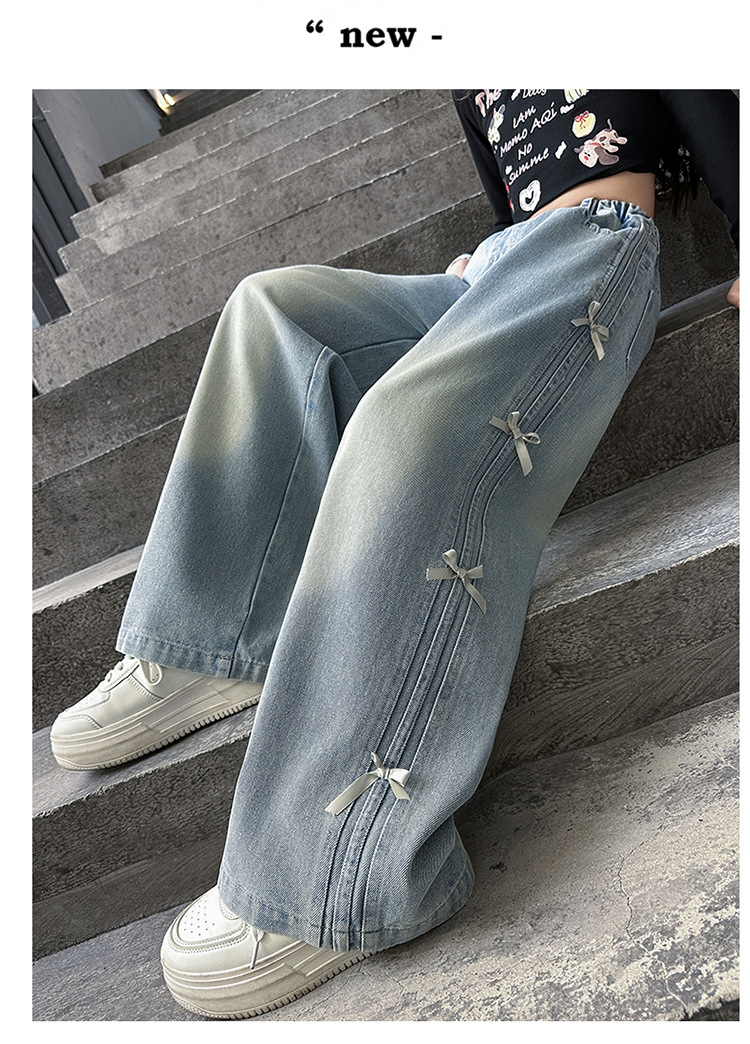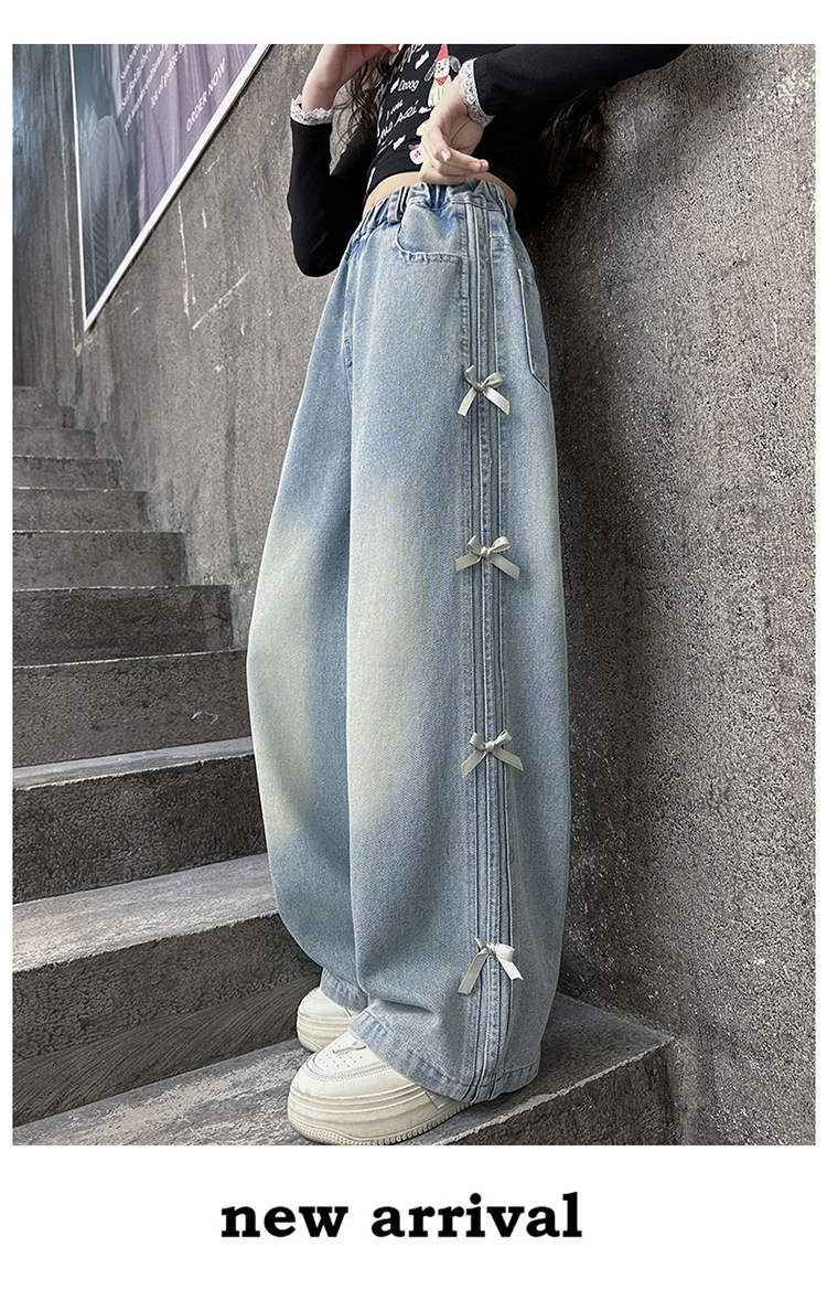 여아 바지 봄, 가을 새로운 스타일 2025 중대형 어린이 리본 청바지 어린이 스트레이트 루즈 와이드 레그 팬츠스토어 가기