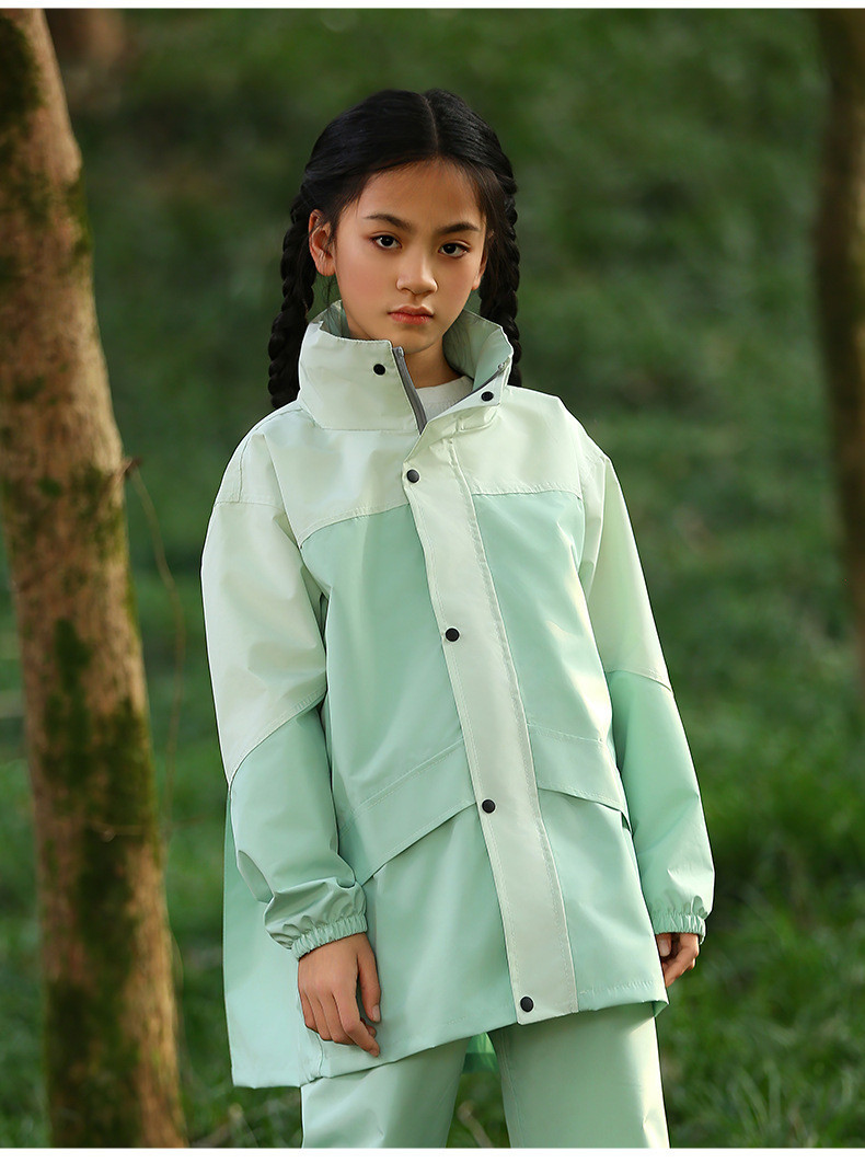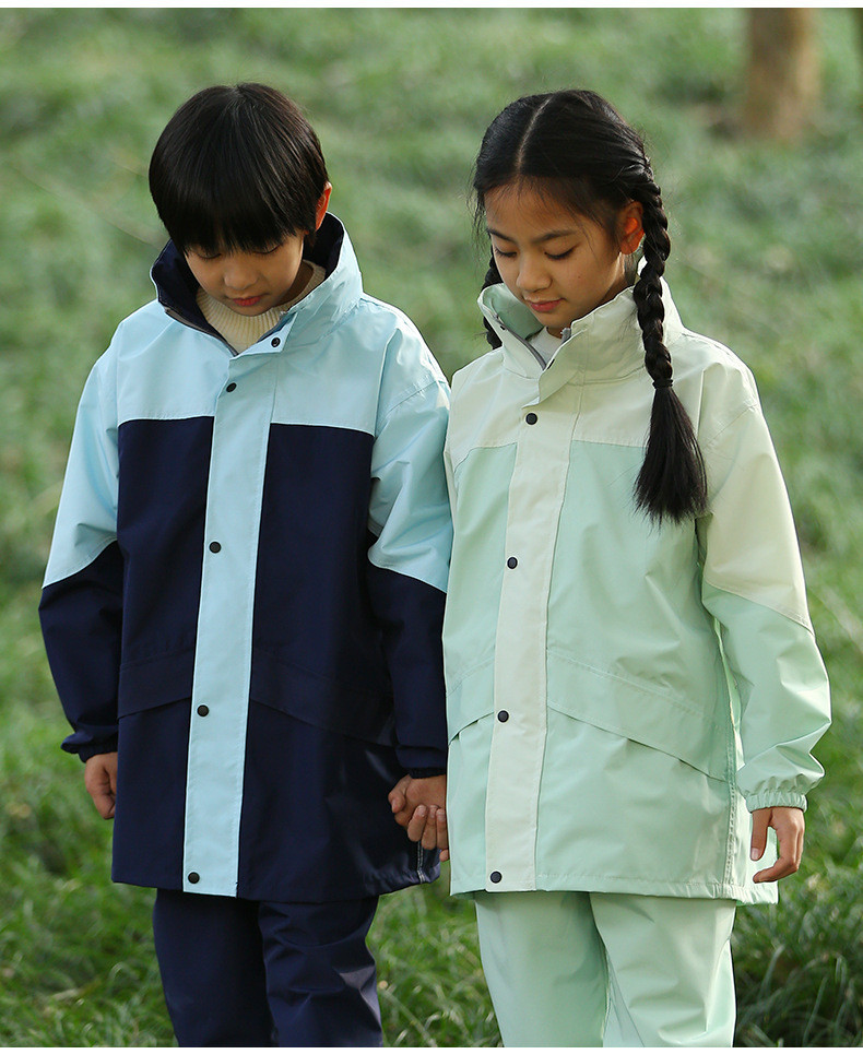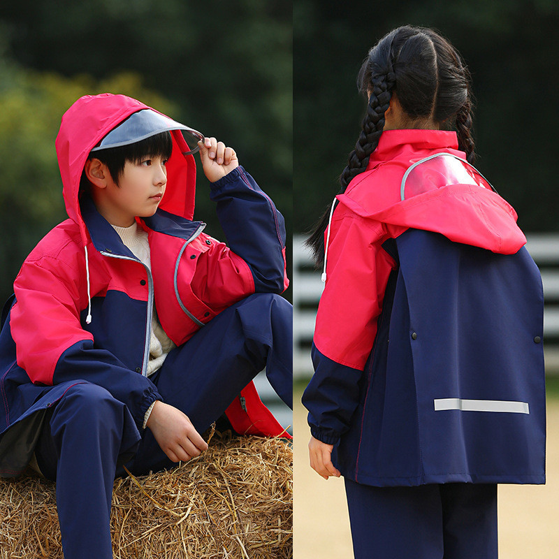 D5O 어린이 스플릿 비옷 및 레인 팬츠 세트 방수 전신 초등 및 중등 학교 소년 소녀 사이클링 야외
