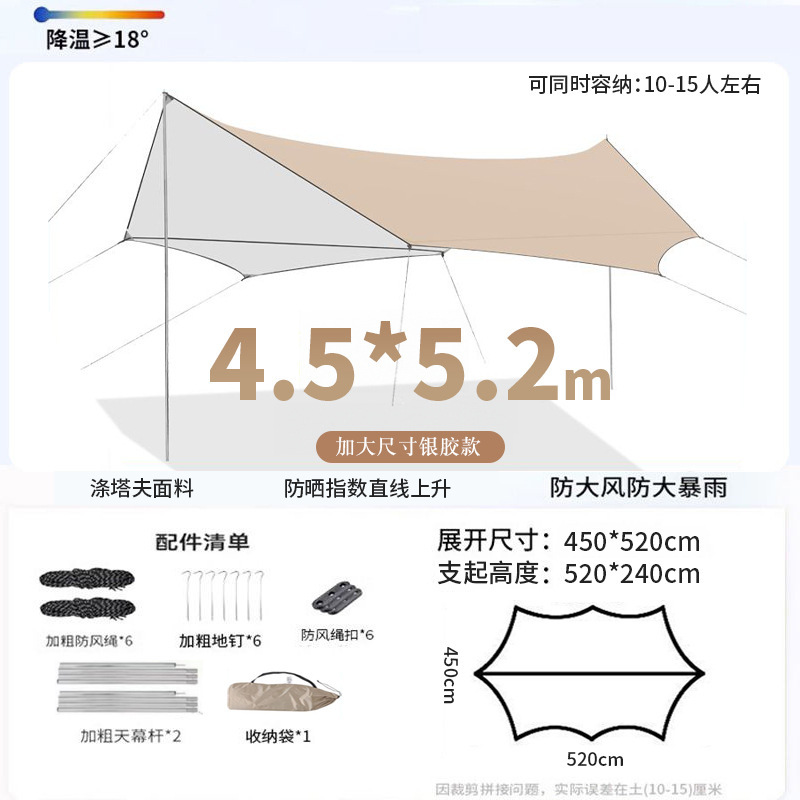 모험 실버 코팅 캐노피 텐트 야외 장비 피크닉 캠핑 테이블과 의자 캠핑 6피스 자외선 차단 천막 천