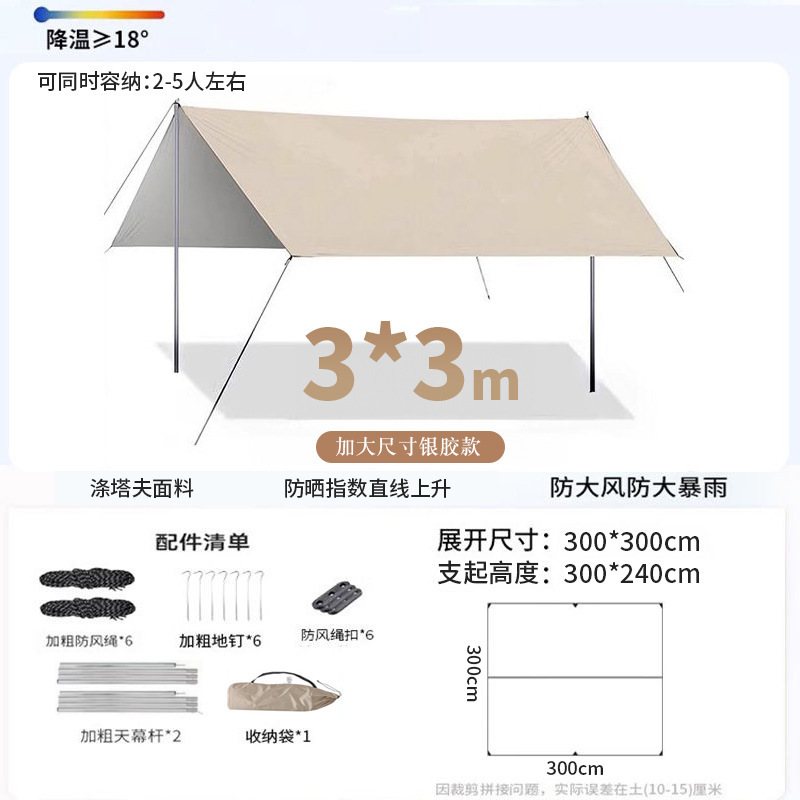 모험 실버 코팅 캐노피 텐트 야외 장비 피크닉 캠핑 테이블과 의자 캠핑 6피스 자외선 차단 천막 천스토어 가기
