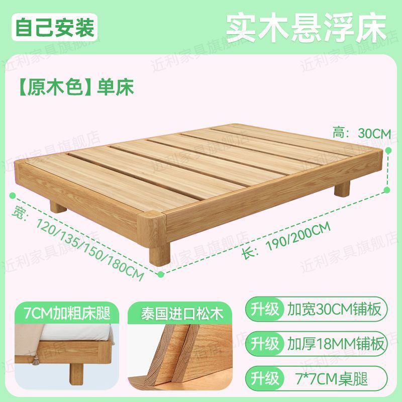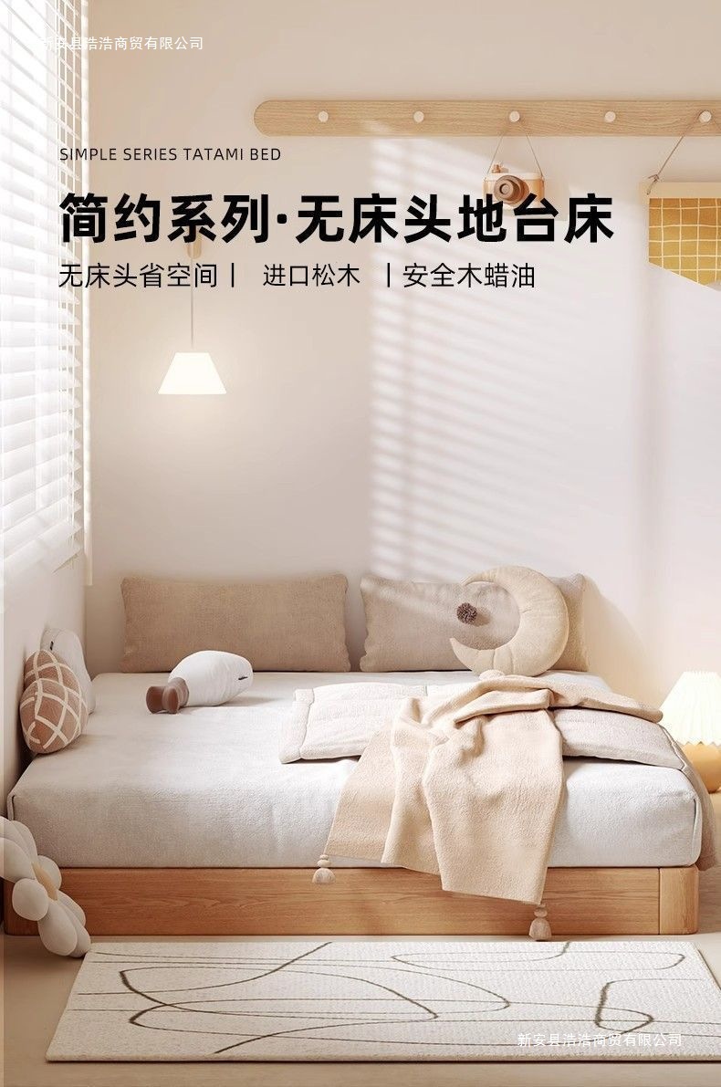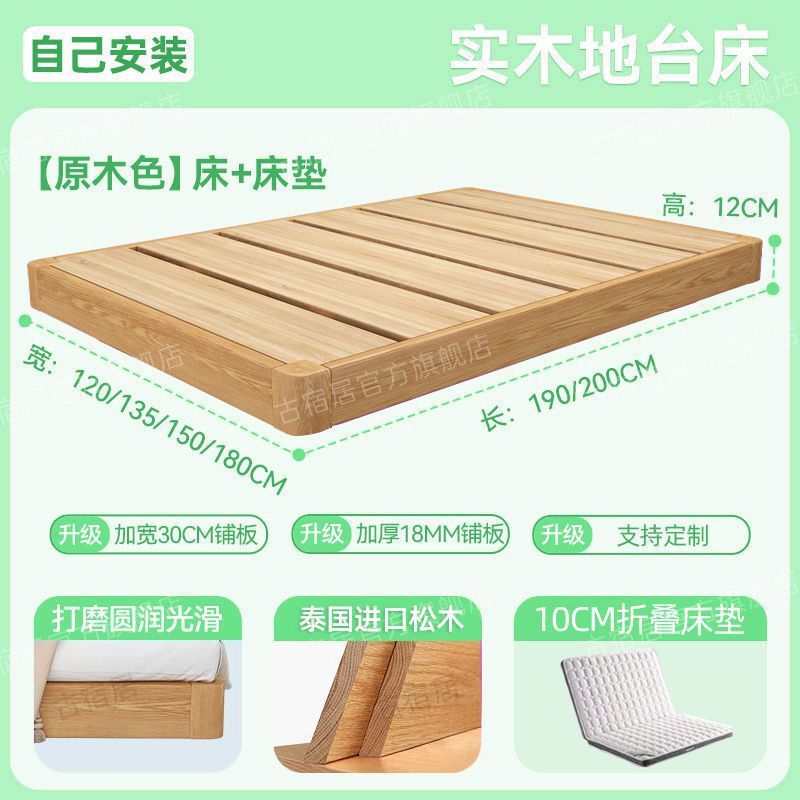 원목 어린이 침대, 원목 침대, 소형 일본식 침실 플랫폼, 심플한 침대 없는 매달린 다다미, 두꺼운 원목스토어 가기