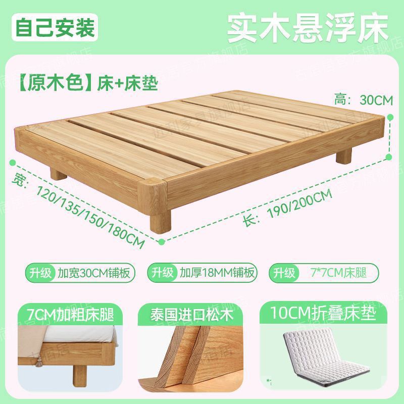 원목 어린이 침대, 원목 침대, 소형 일본식 침실 플랫폼, 심플한 침대 없는 매달린 다다미, 두꺼운 원목