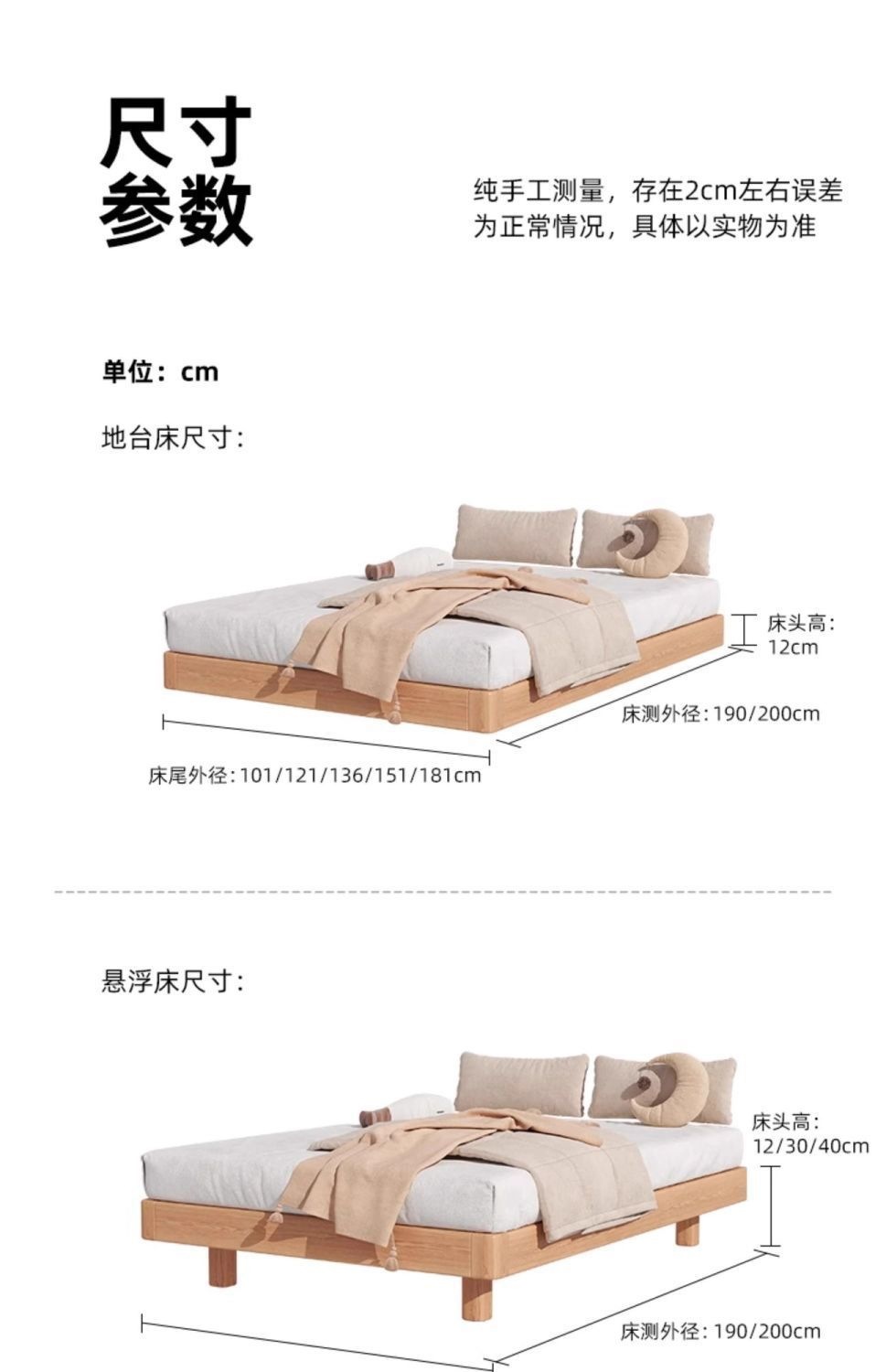 • 통나무 무도장 플랫폼 침대 [12CM] + 10CM 매트리스