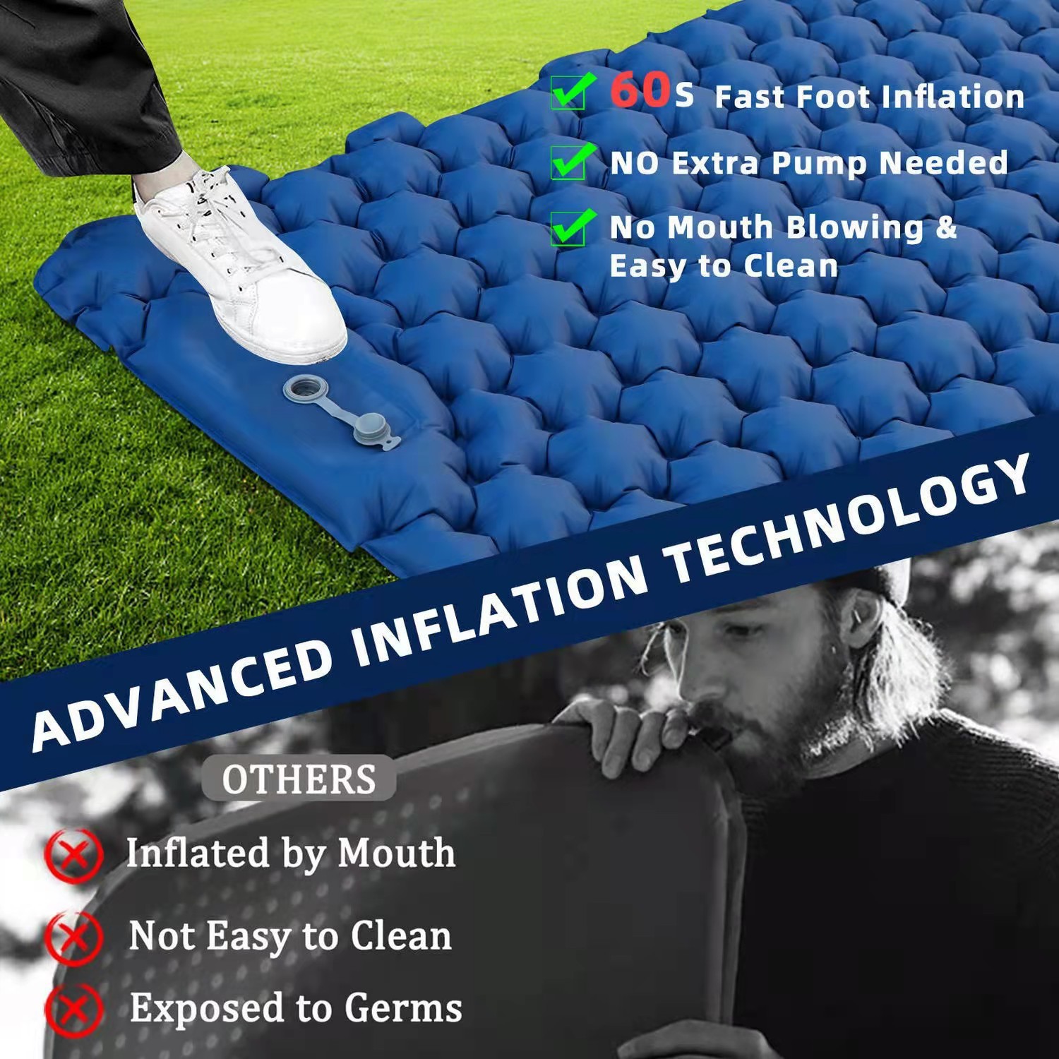 야외용 에어매트, 캠핑용 발판, 방습 기능, 2인용 수면매트, 낮잠용 차량용 에어매트리스, 베개 포함, 야외 레저용스토어 가기