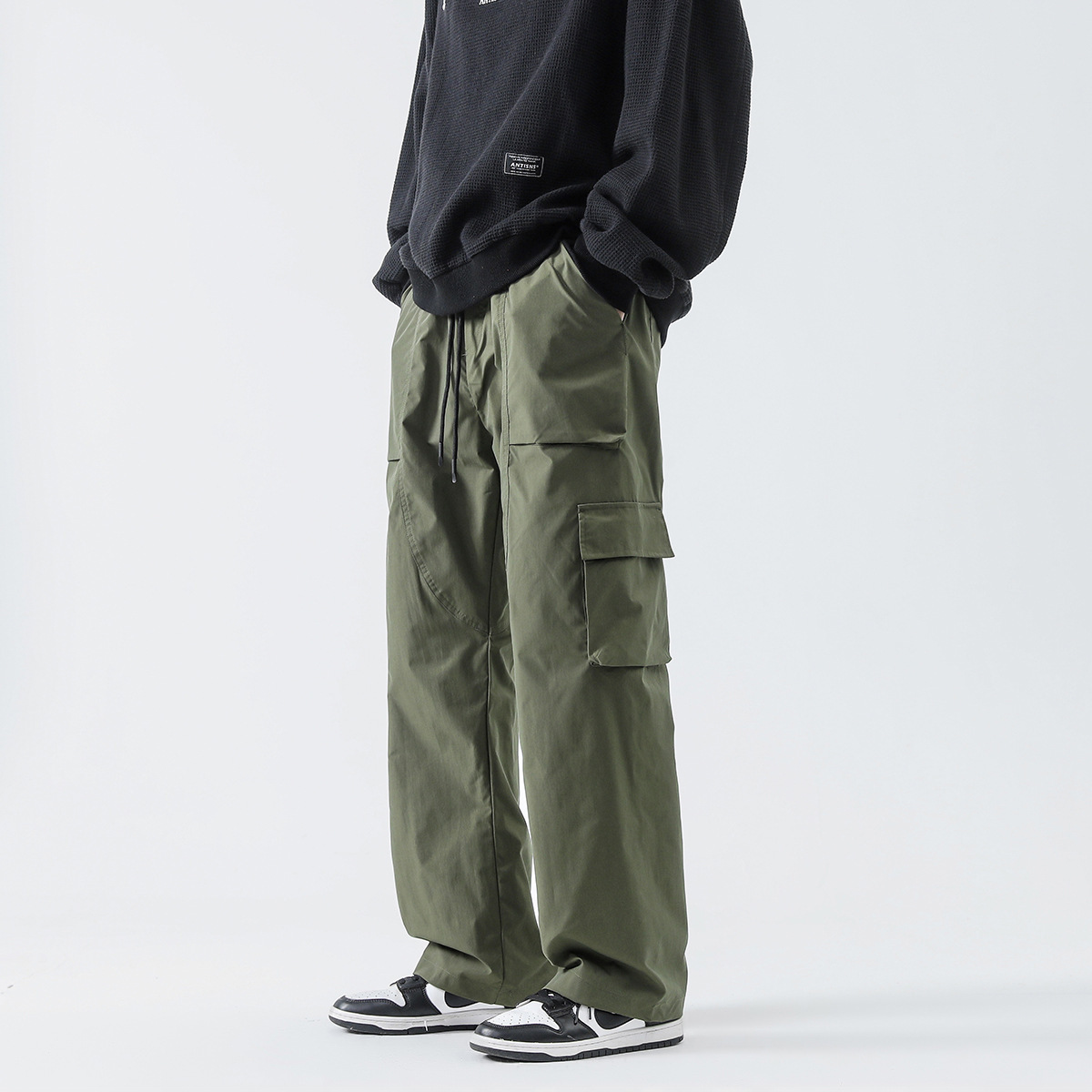 새로운 미국 스타일 남성용 작업복 바지, 봄/가을용, 멋스러운 스트레이트 캐주얼 바지, 멀티 포켓, 중간 허리 높이, 슬림핏 기능성 아웃도어 바지스토어 가기