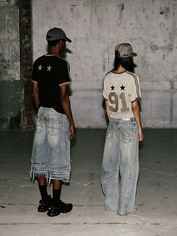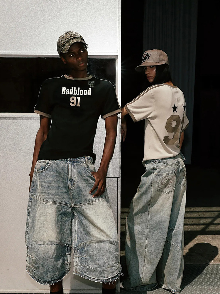 한국어 badblood bcac 시리즈 여성용 반팔 티셔츠 American Hot Girl 복고풍 자수 슬리밍 틈새 탑 트렌디