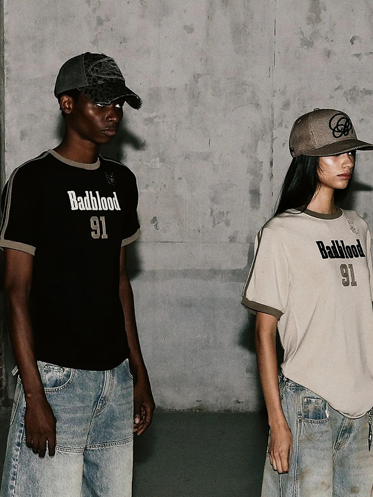 한국어 badblood bcac 시리즈 여성용 반팔 티셔츠 American Hot Girl 복고풍 자수 슬리밍 틈새 탑 트렌디스토어 가기