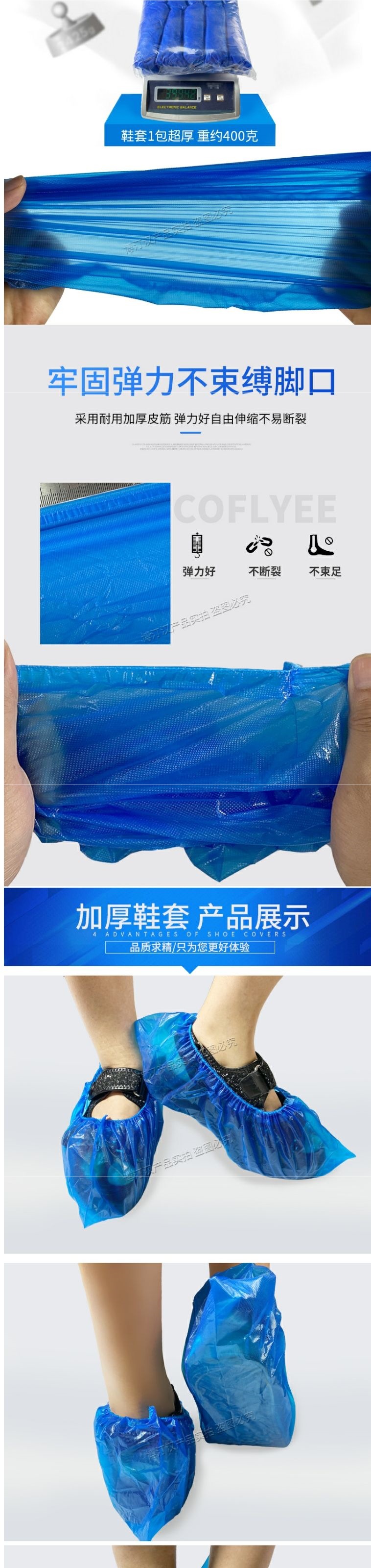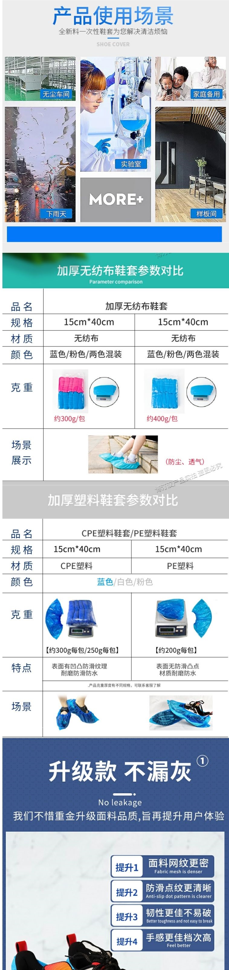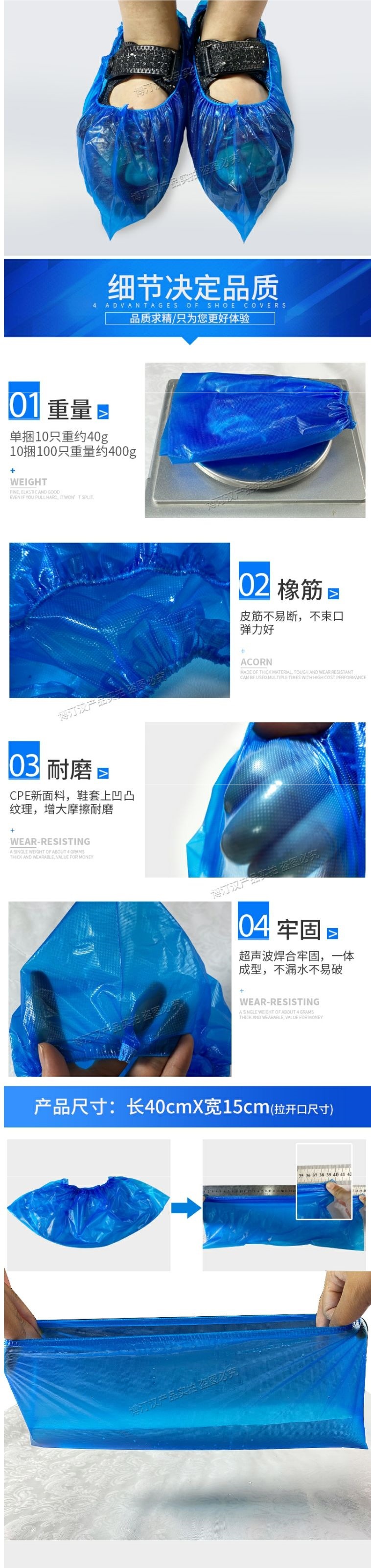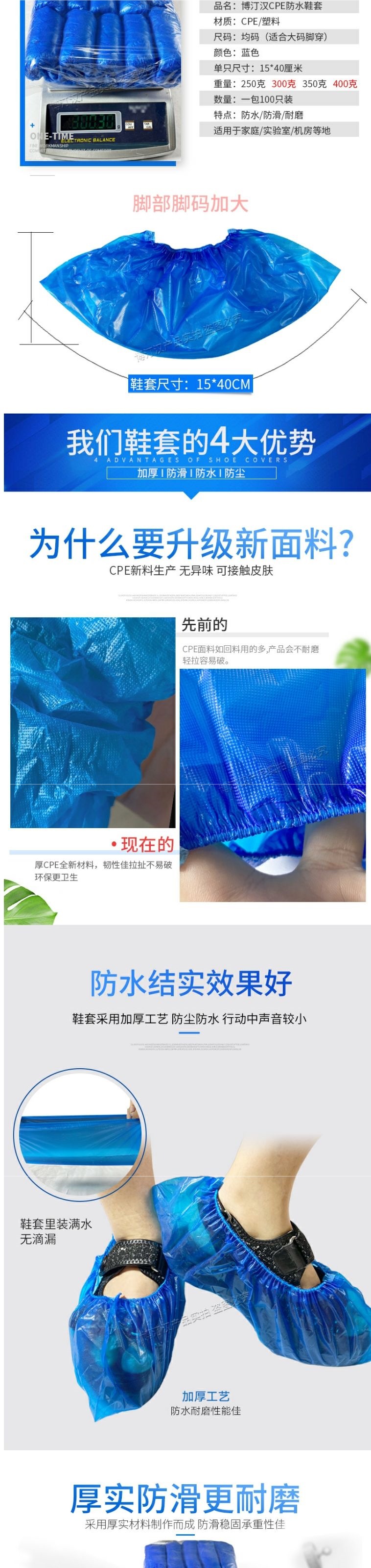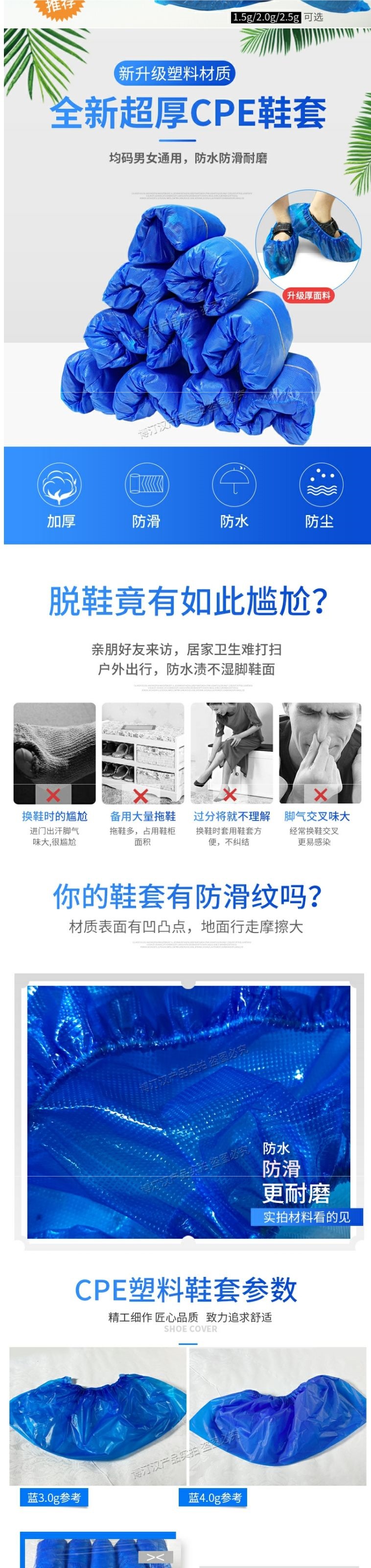 가정용 실내용 일회용 신발 커버 두꺼운 방수 내마모성 미끄럼 방지 부직포 학생 환대 CPE 플라스틱 발 커버