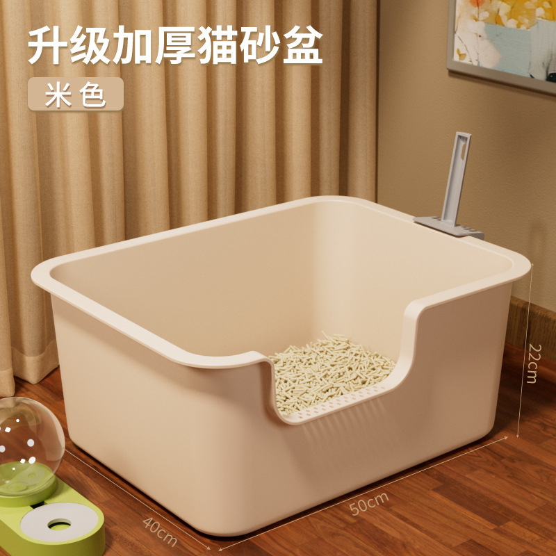 • (업그레이드되고 넓어진 고양이 배변 상자) 50CM 베이지 대형 [무료 고양이 배변 국자].
