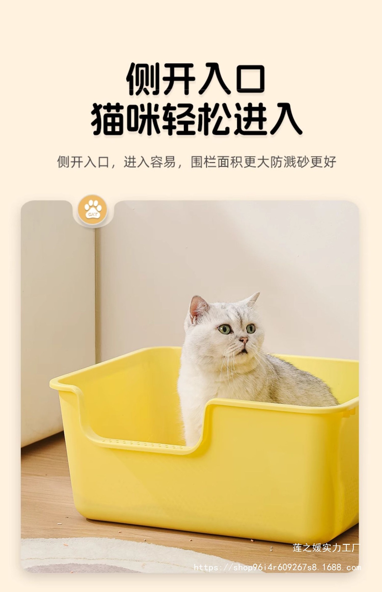 • (업그레이드되고 넓어진 고양이 배변 상자) 50CM 노란색 대형 [무료 고양이 배변 국자]