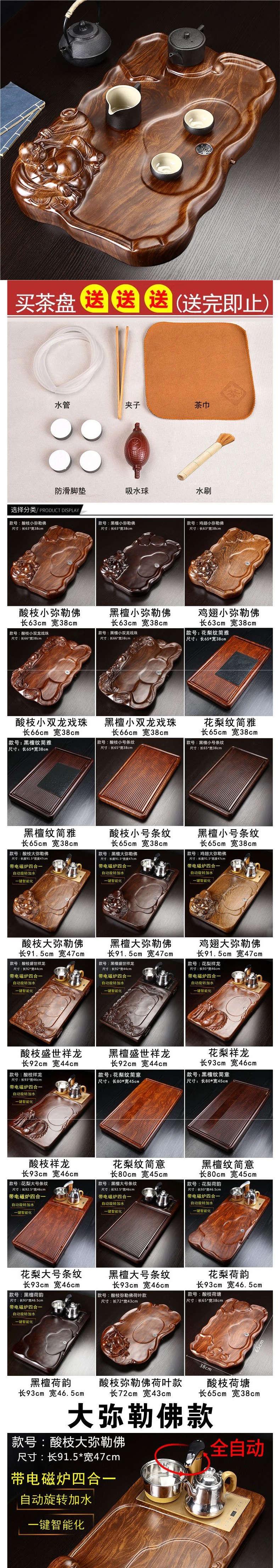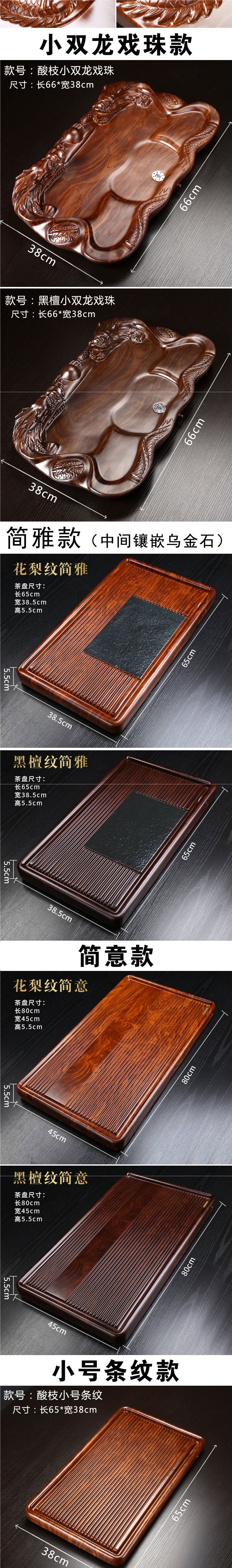 흑단 차 트레이 가정용 단단한 나무 차 바다 차 테이블 크고 작은 직사각형 통나무 로즈우드 차 트레이 크리 에이 티브스토어 가기