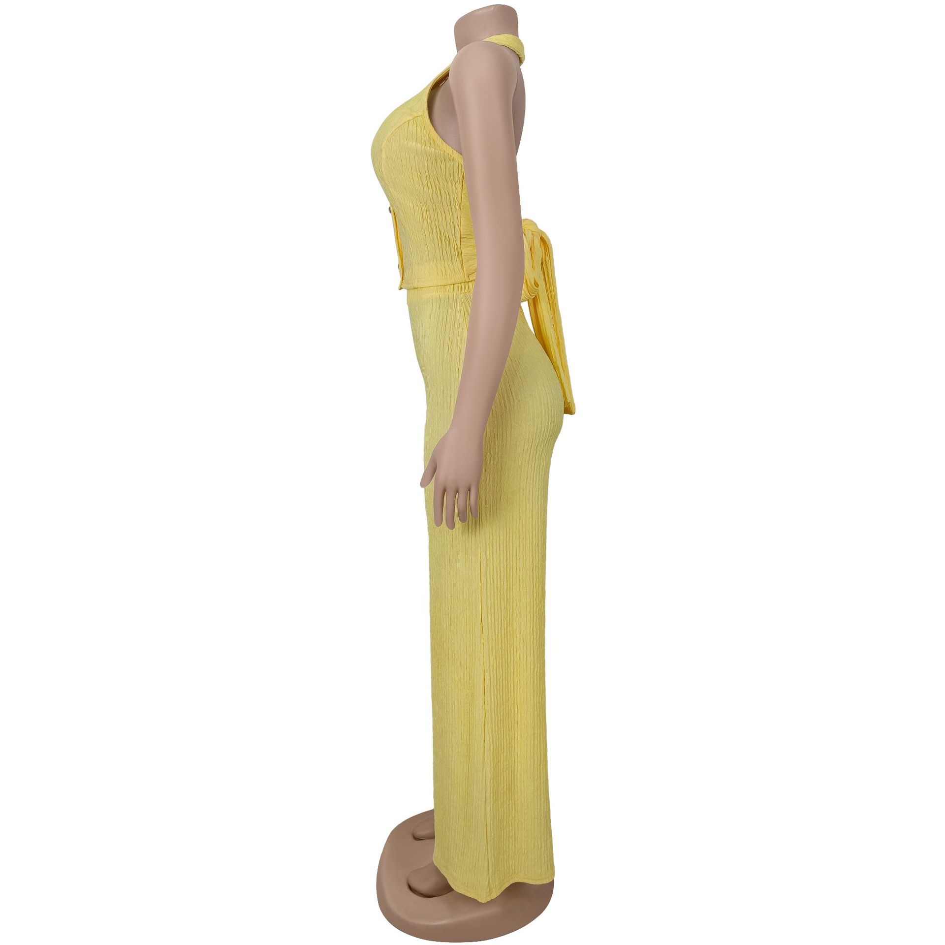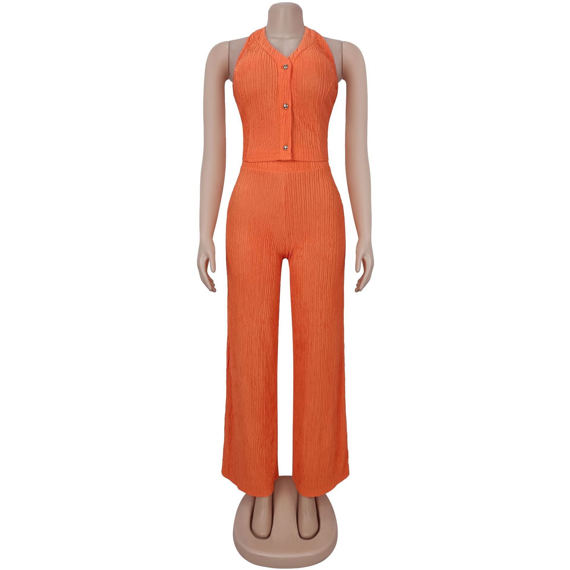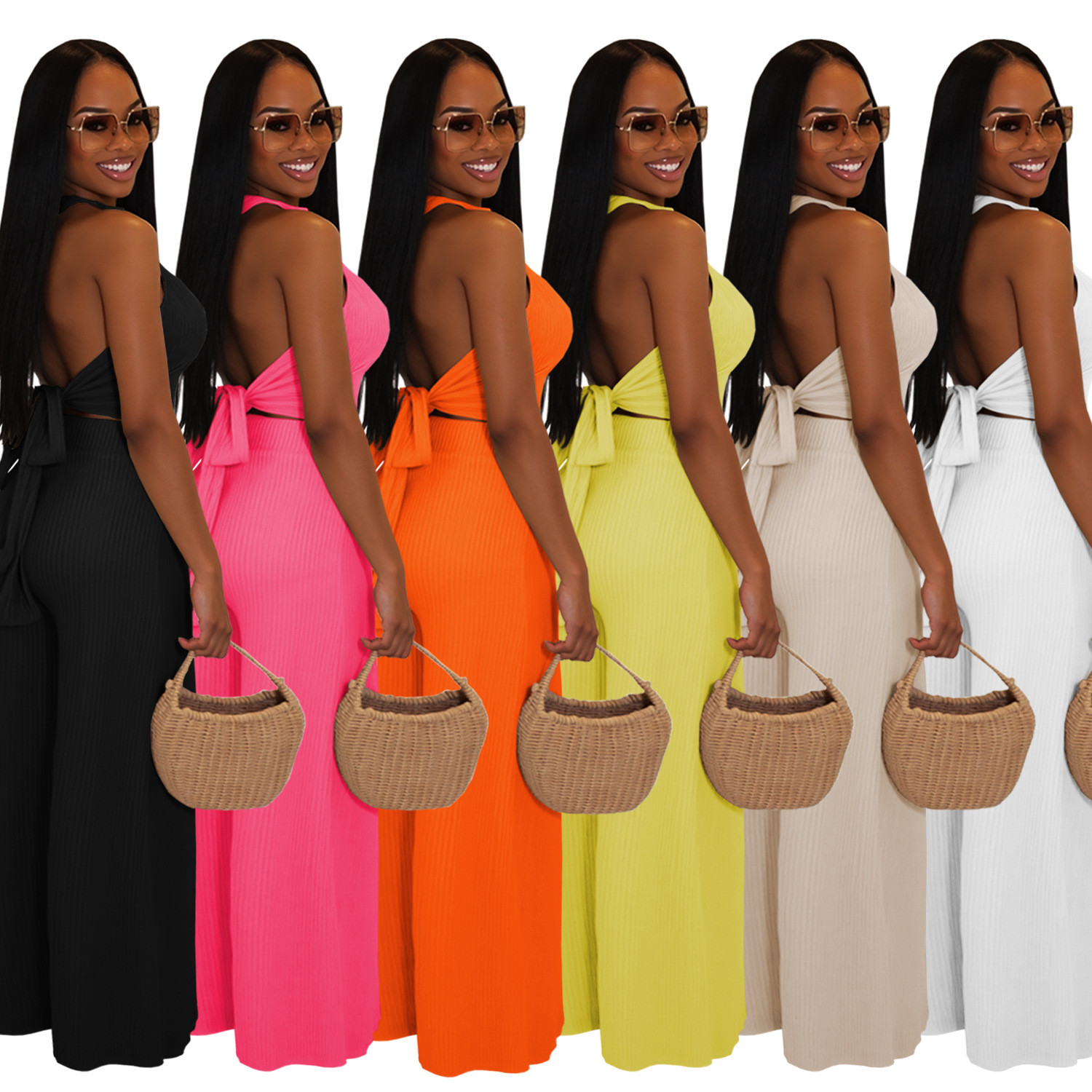 C7461 크로스보더 AliExpress Amazon 유럽과 미국 패션 여성 캐주얼 홀터넥 스트랩 탑과 바지 투피스 세트스토어 가기