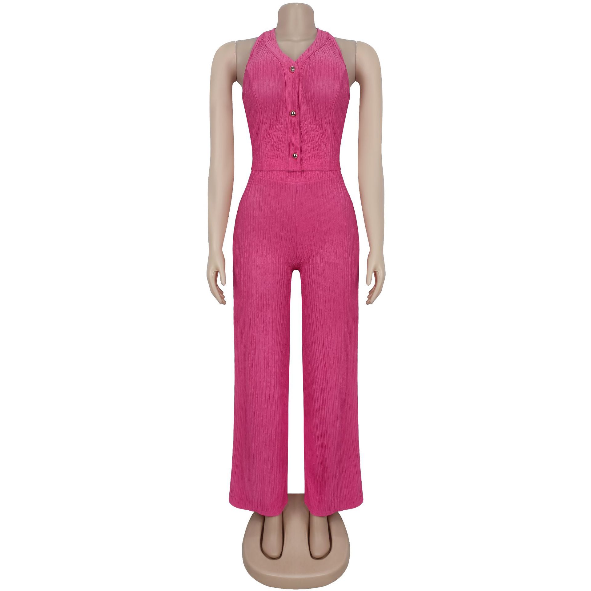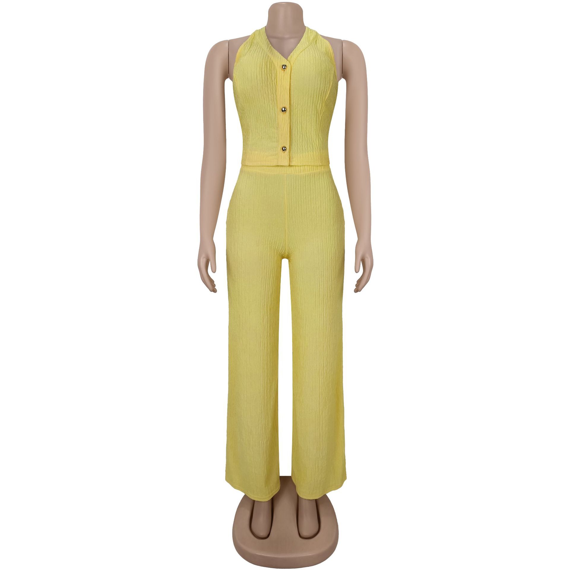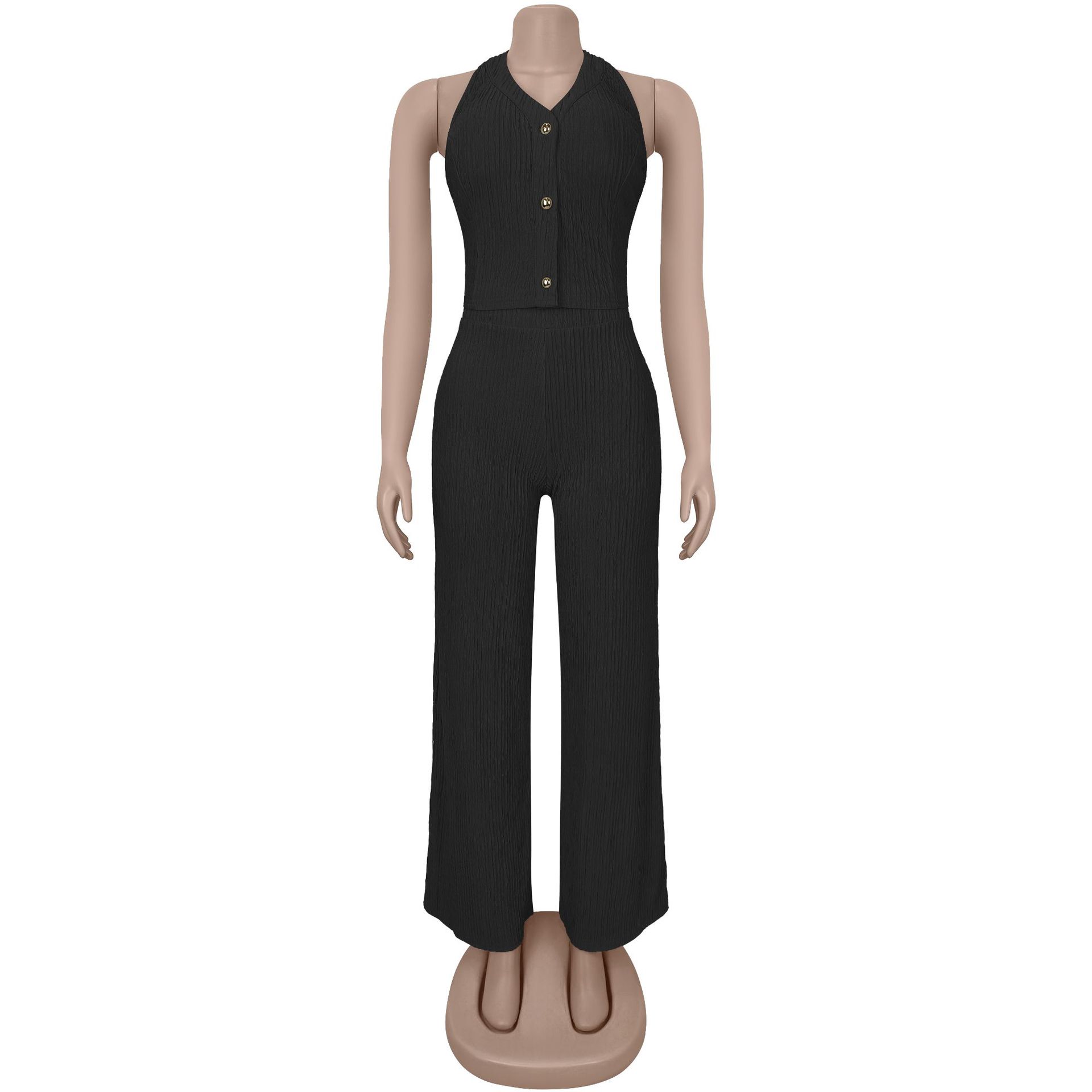 C7461 크로스보더 AliExpress Amazon 유럽과 미국 패션 여성 캐주얼 홀터넥 스트랩 탑과 바지 투피스 세트스토어 가기