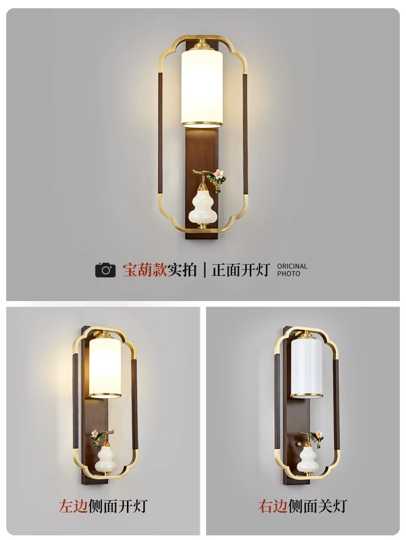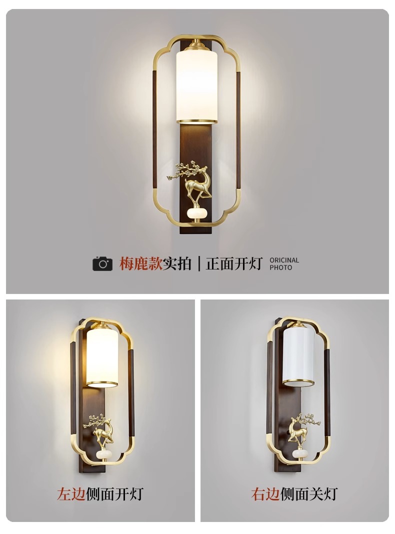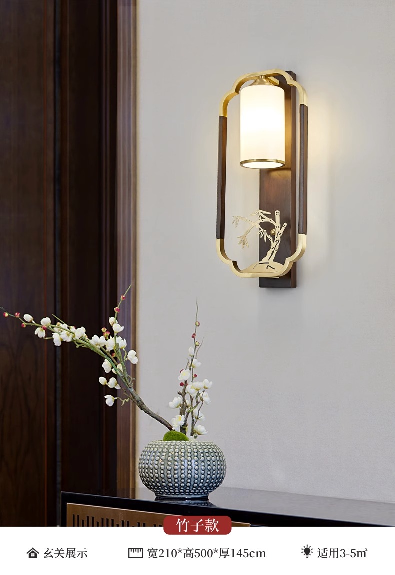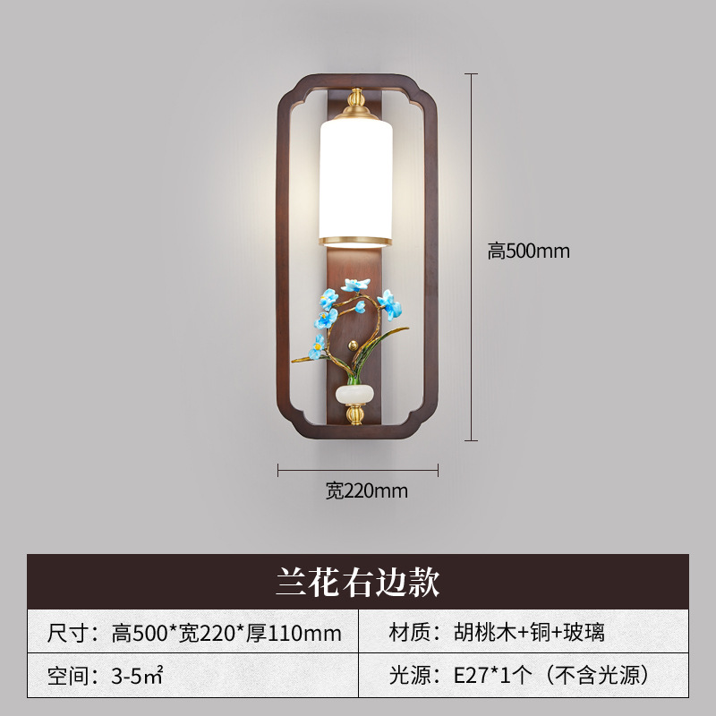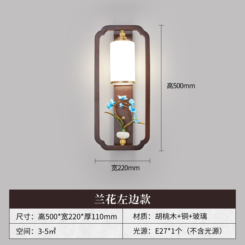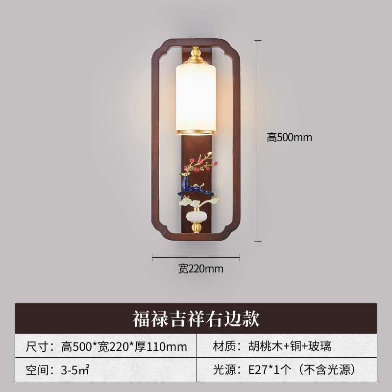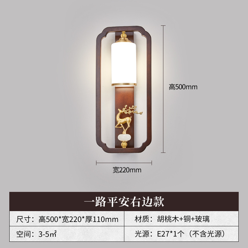 새로운 중국 스타일 벽 램프 전체 구리 단단한 나무 복고풍 중국 스타일 복도 통로 머리맡 램프 거실 소파 배경 벽 램프스토어 가기