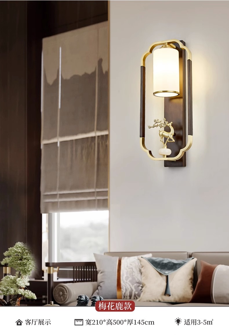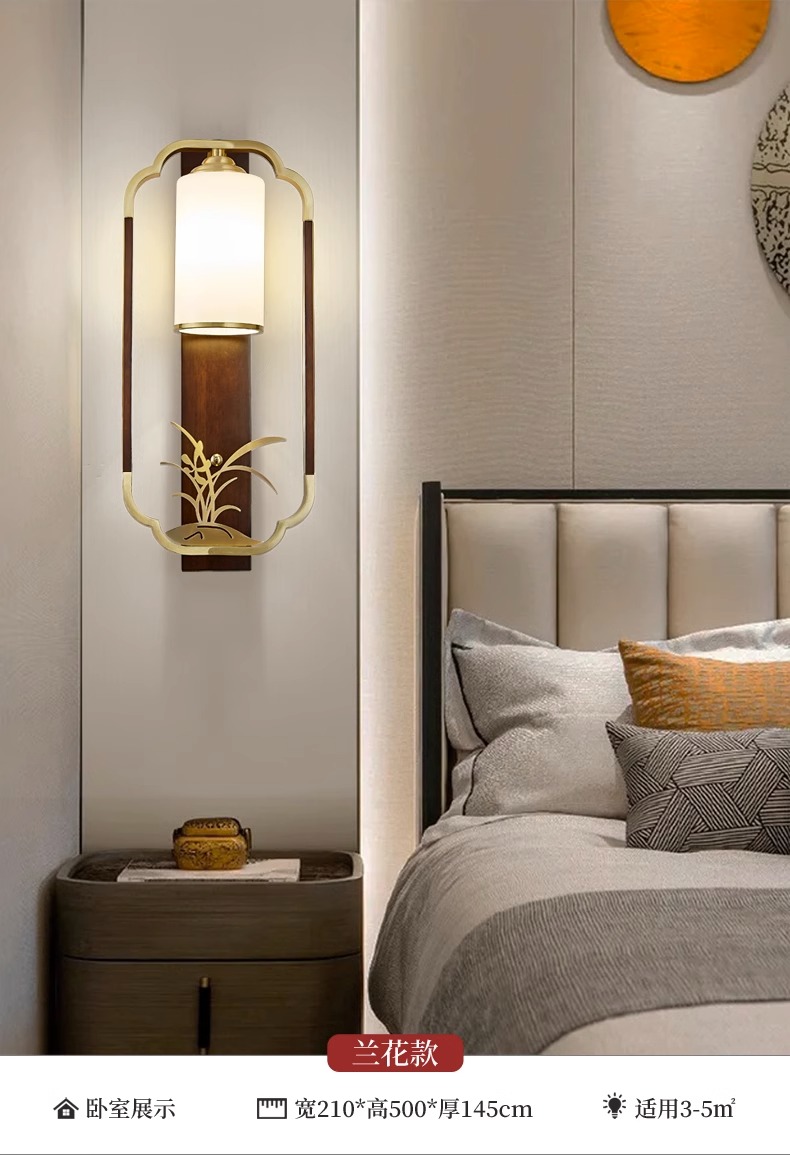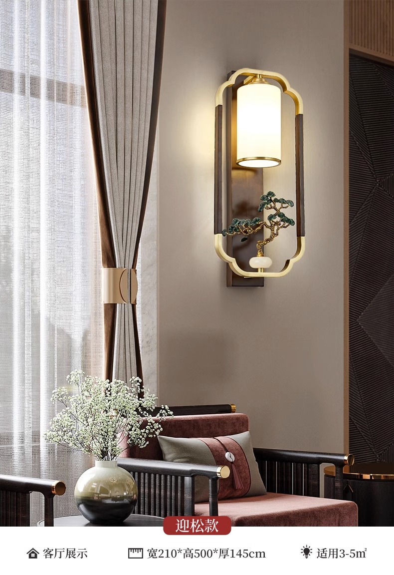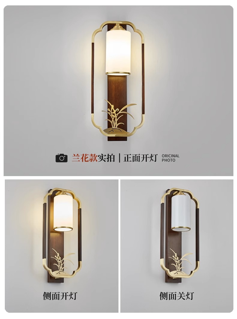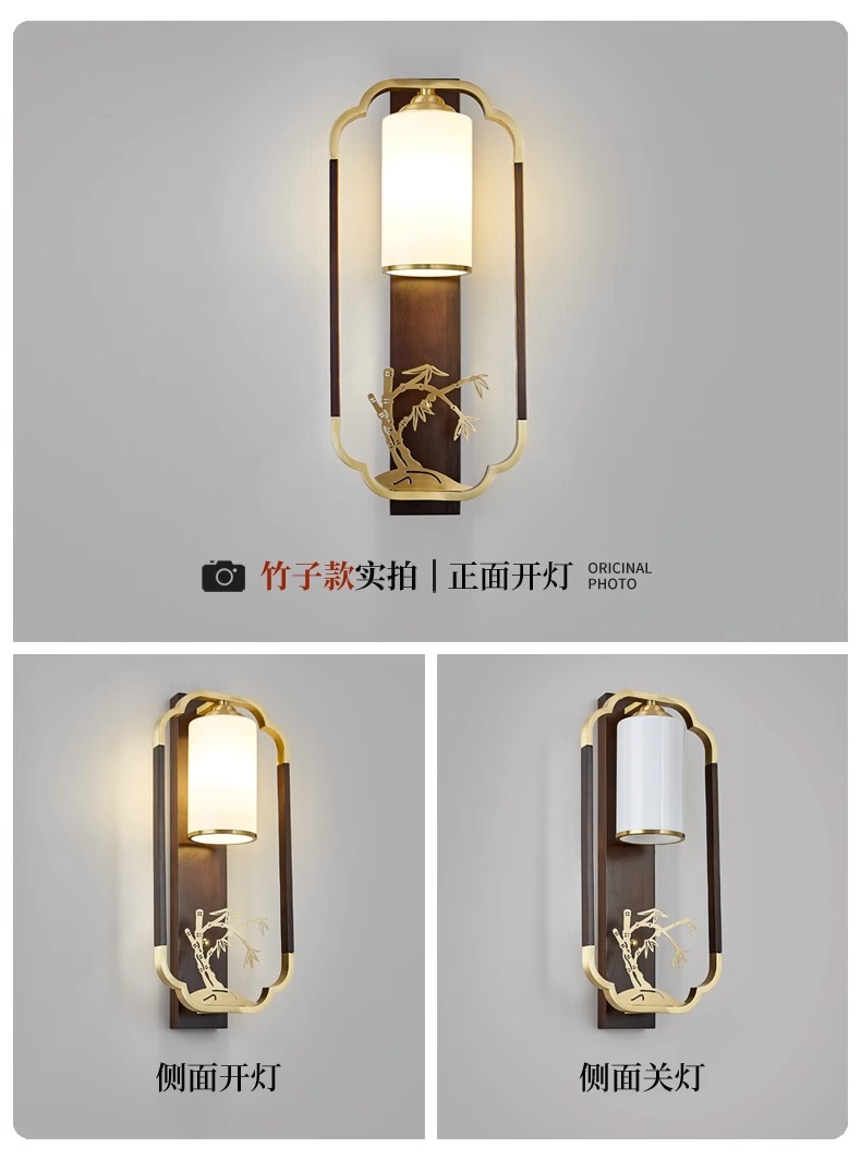 새로운 중국 스타일 벽 램프 전체 구리 단단한 나무 복고풍 중국 스타일 복도 통로 머리맡 램프 거실 소파 배경 벽 램프스토어 가기