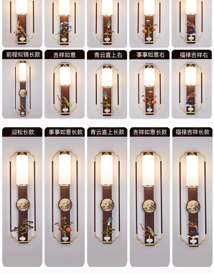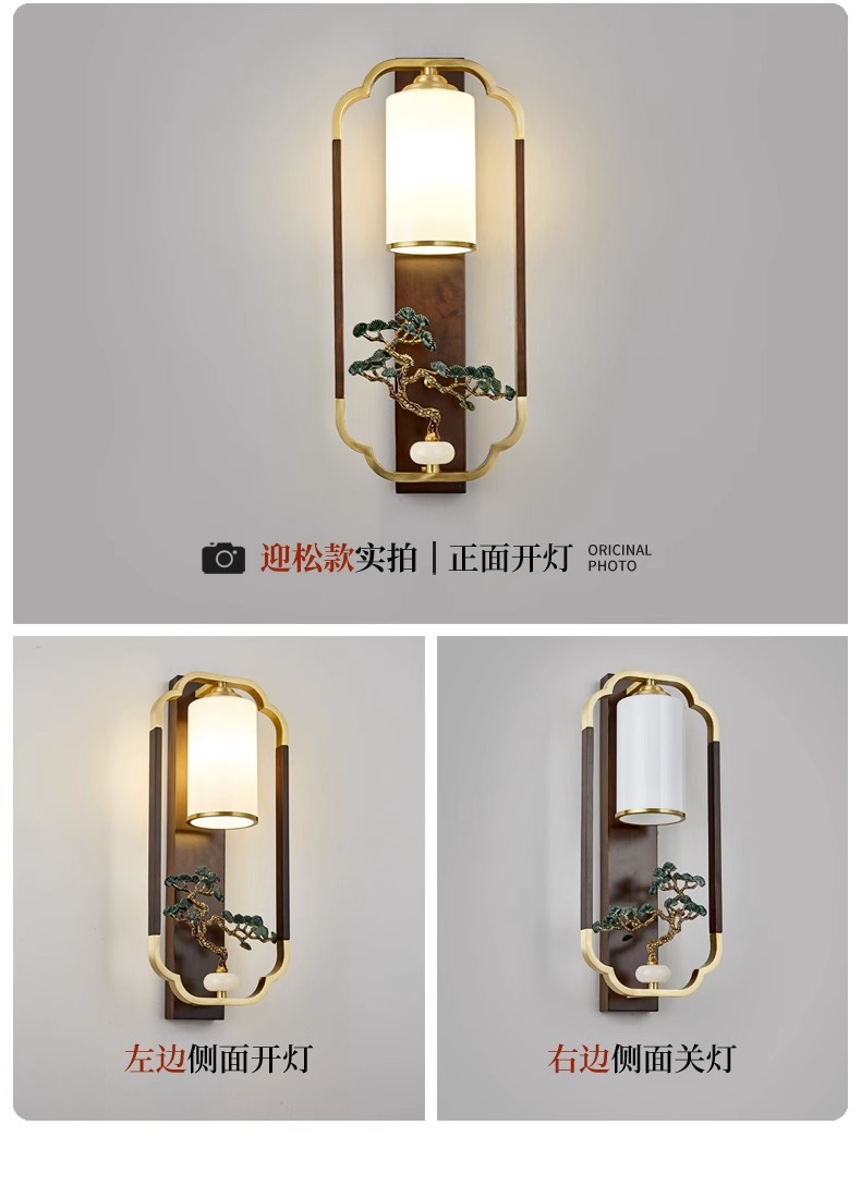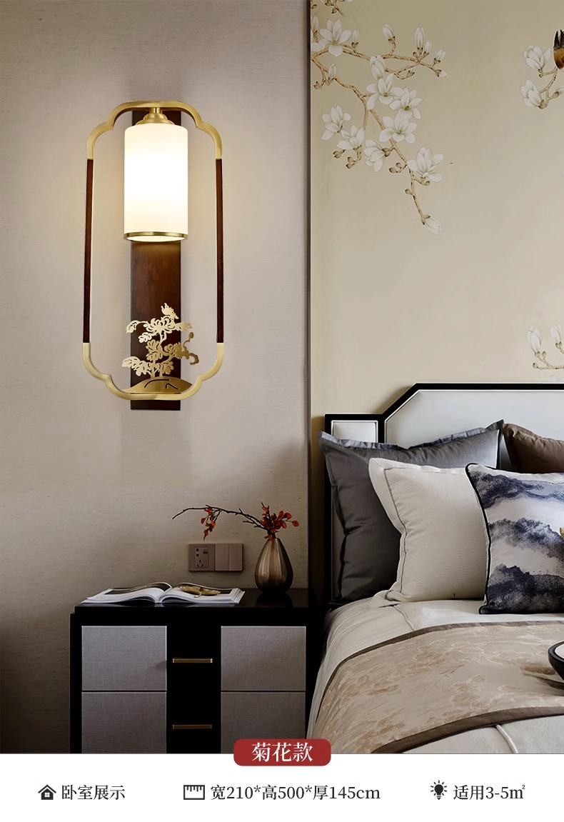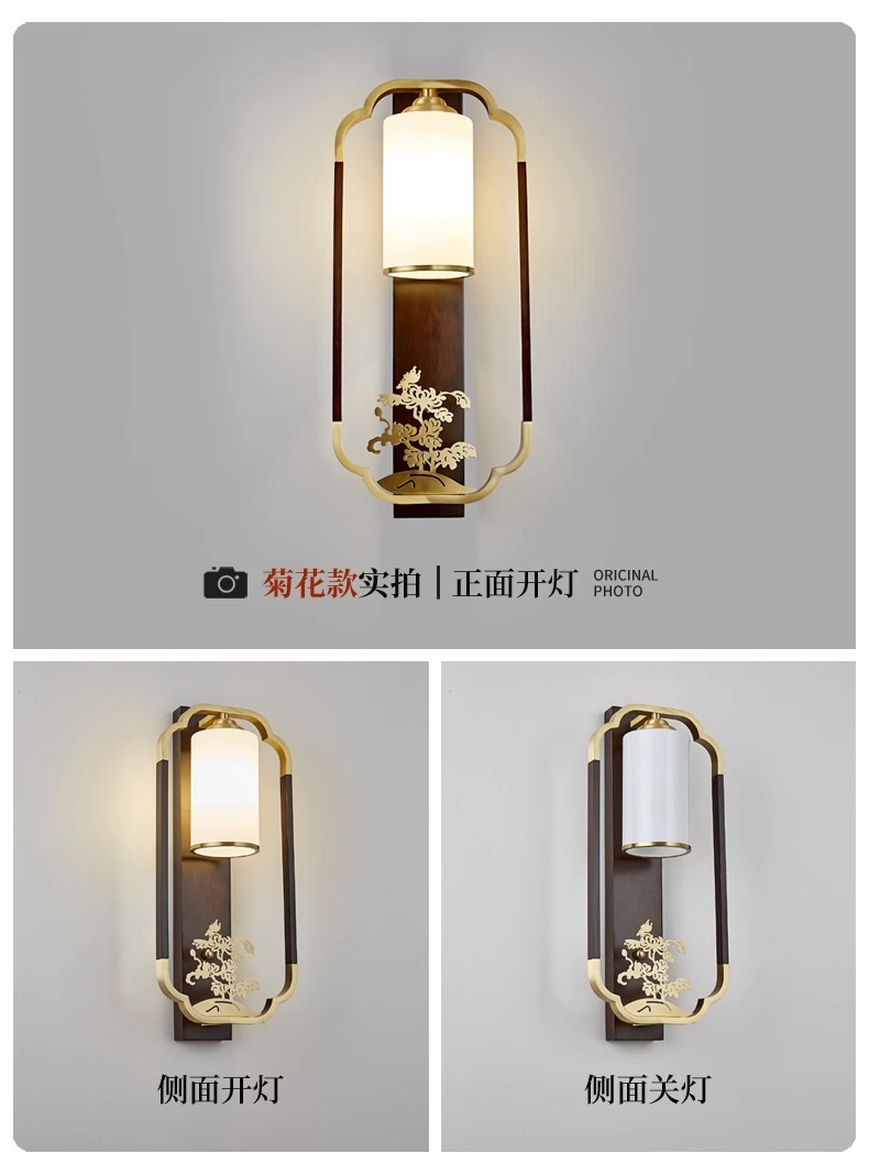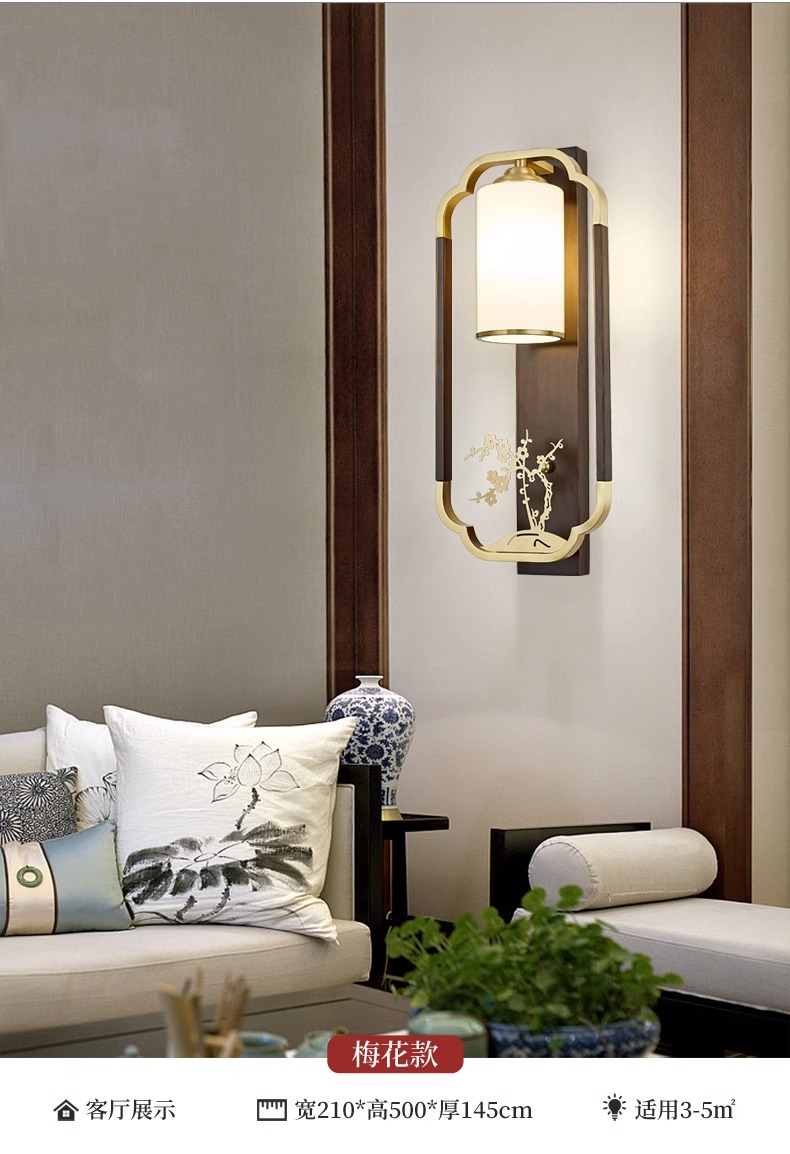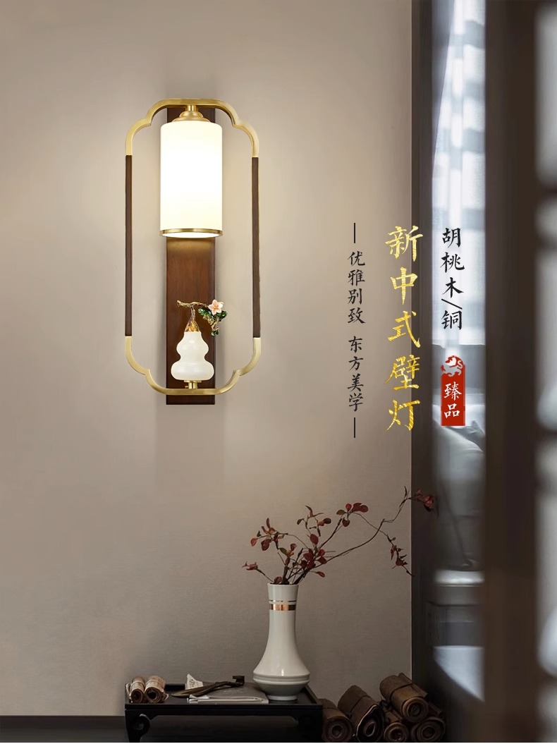 새로운 중국 스타일 벽 램프 전체 구리 단단한 나무 복고풍 중국 스타일 복도 통로 머리맡 램프 거실 소파 배경 벽 램프스토어 가기