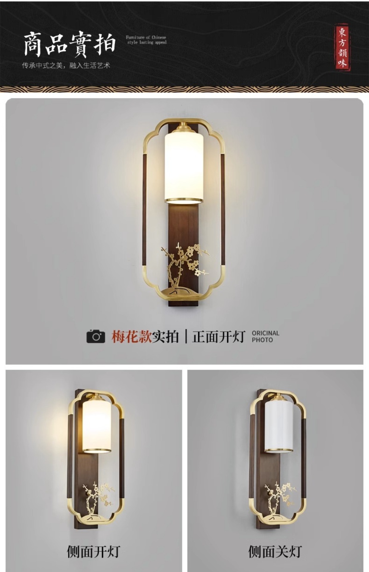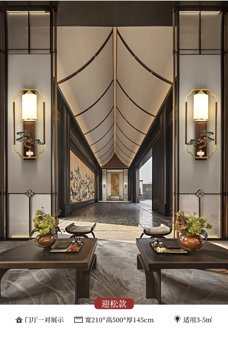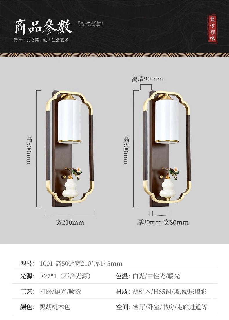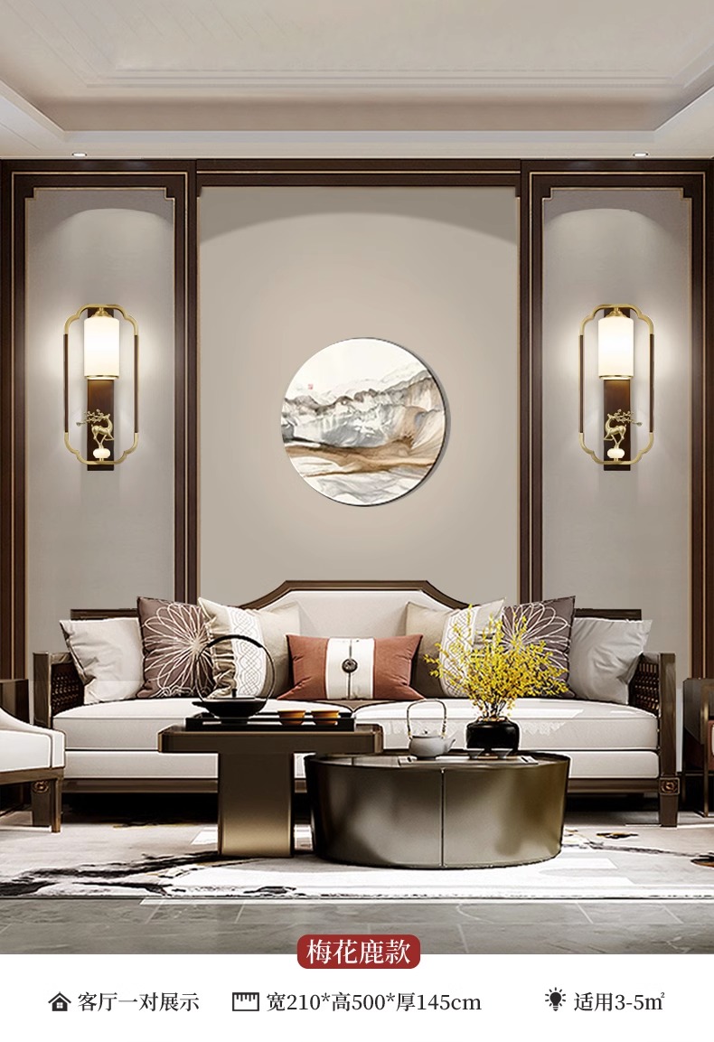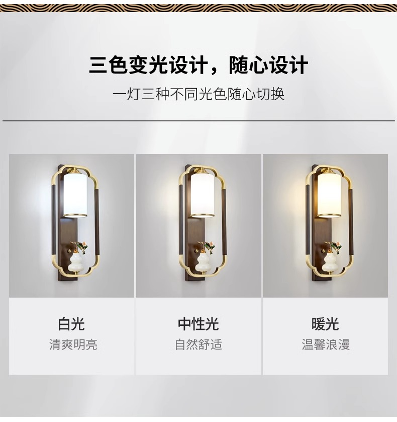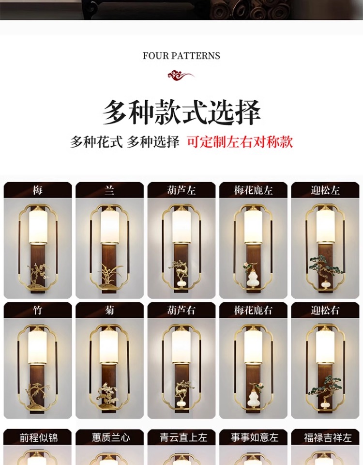 새로운 중국 스타일 벽 램프 전체 구리 단단한 나무 복고풍 중국 스타일 복도 통로 머리맡 램프 거실 소파 배경 벽 램프스토어 가기