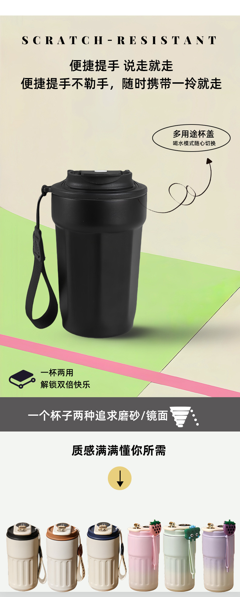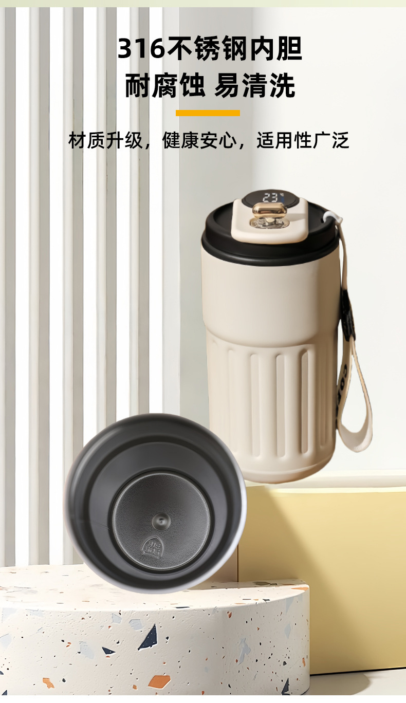 316不锈钢新款保温提绳便携水杯加厚高颜值智能保温杯