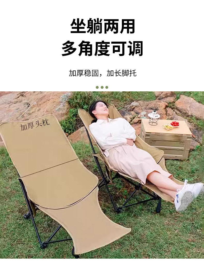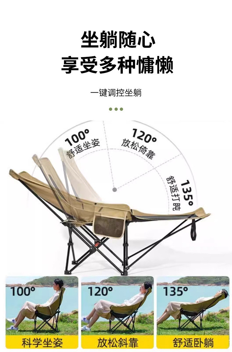야외 접이식 의자 휴대용 캠핑 달 의자 사무실 점심 시간 다리 받침대가있는 3 단 조절 식 접이식 안락 의자