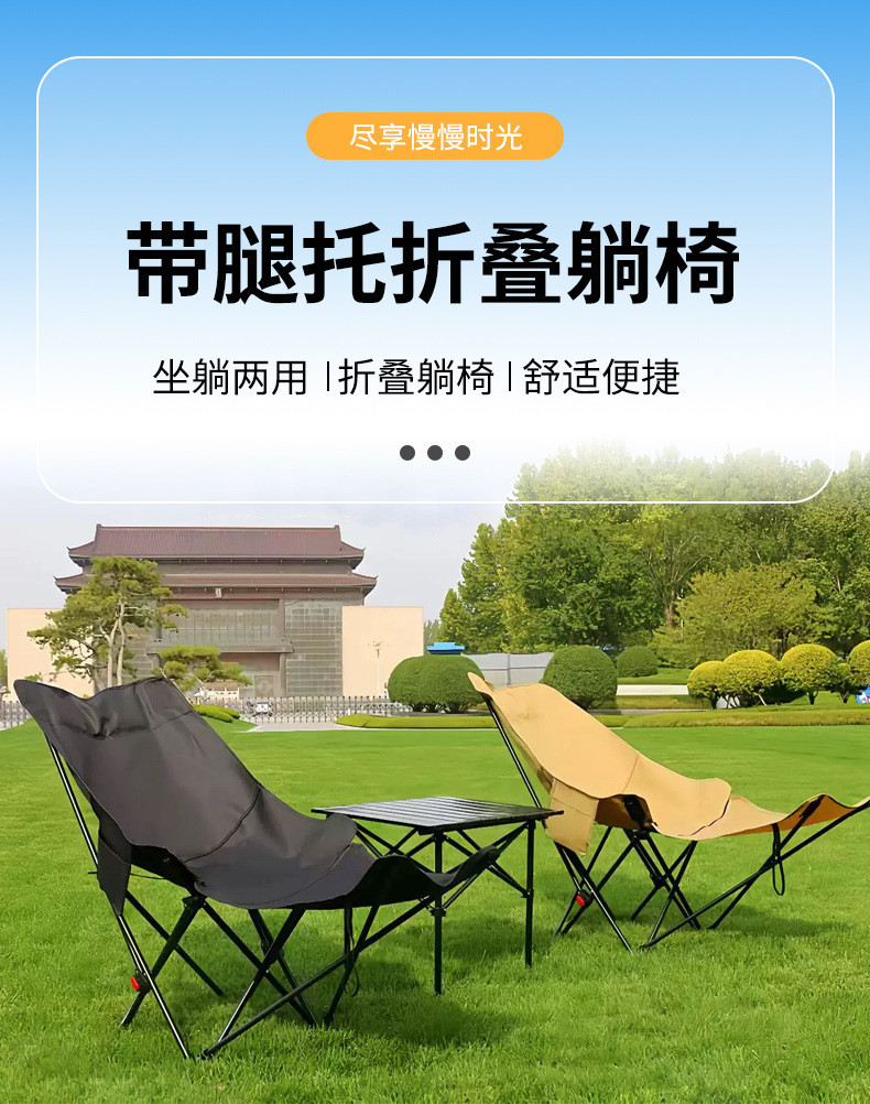 야외 접이식 의자 휴대용 캠핑 달 의자 사무실 점심 시간 다리 받침대가있는 3 단 조절 식 접이식 안락 의자스토어 가기