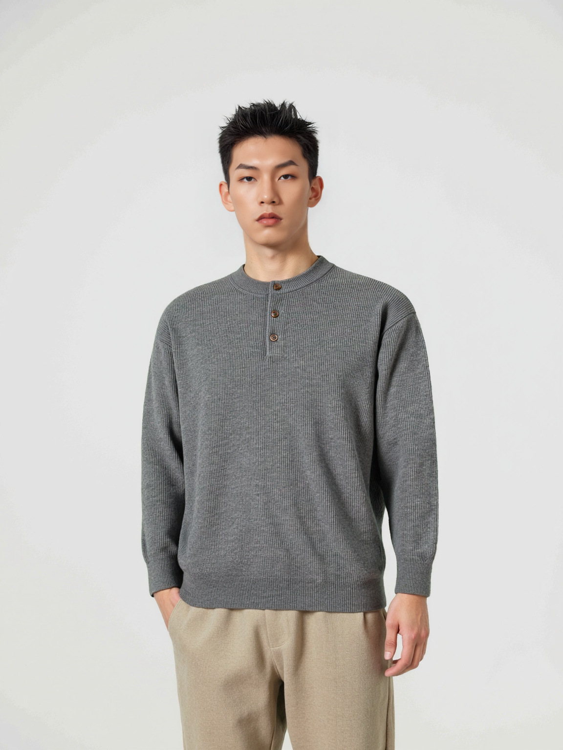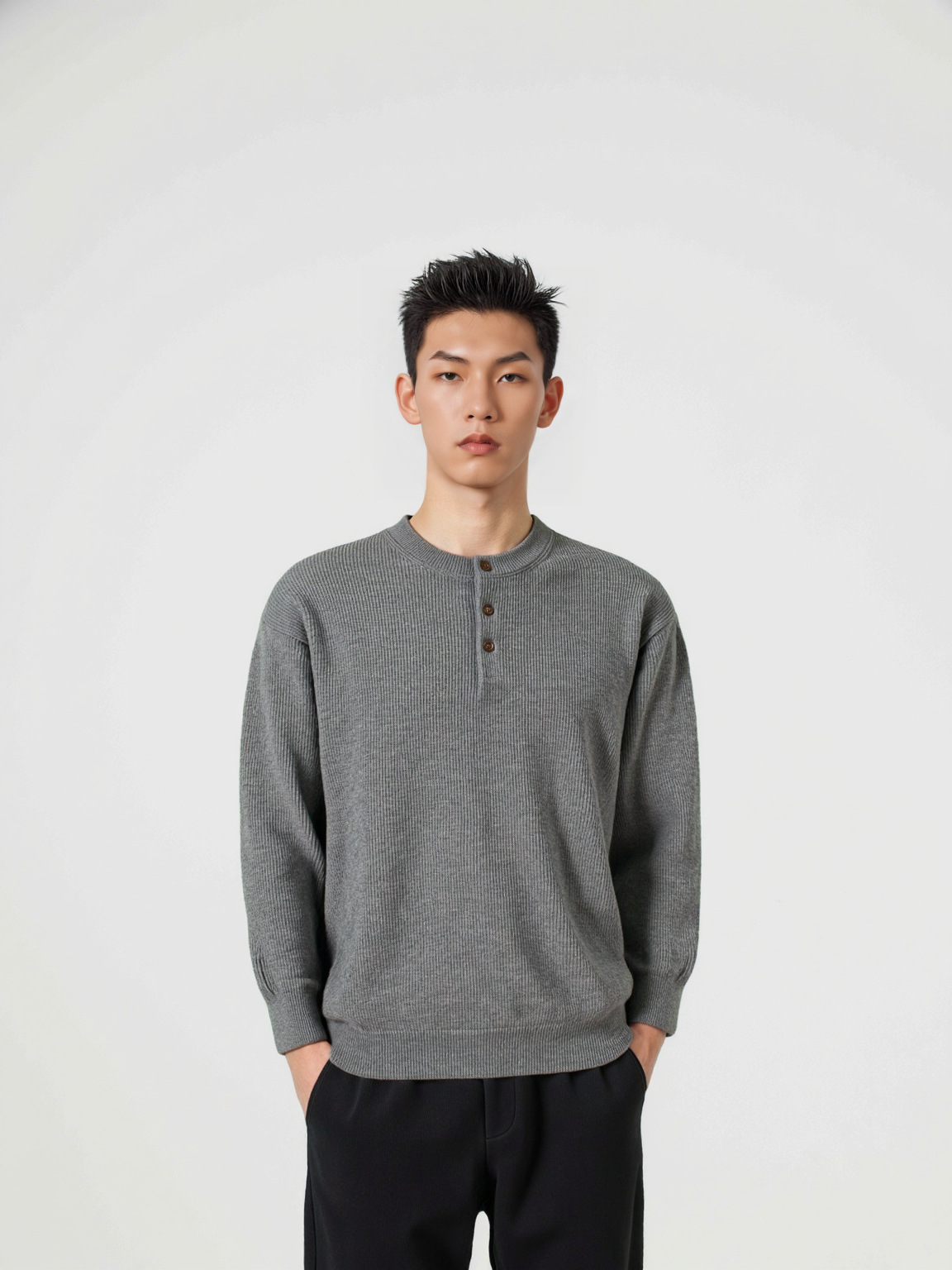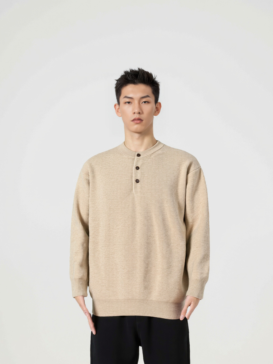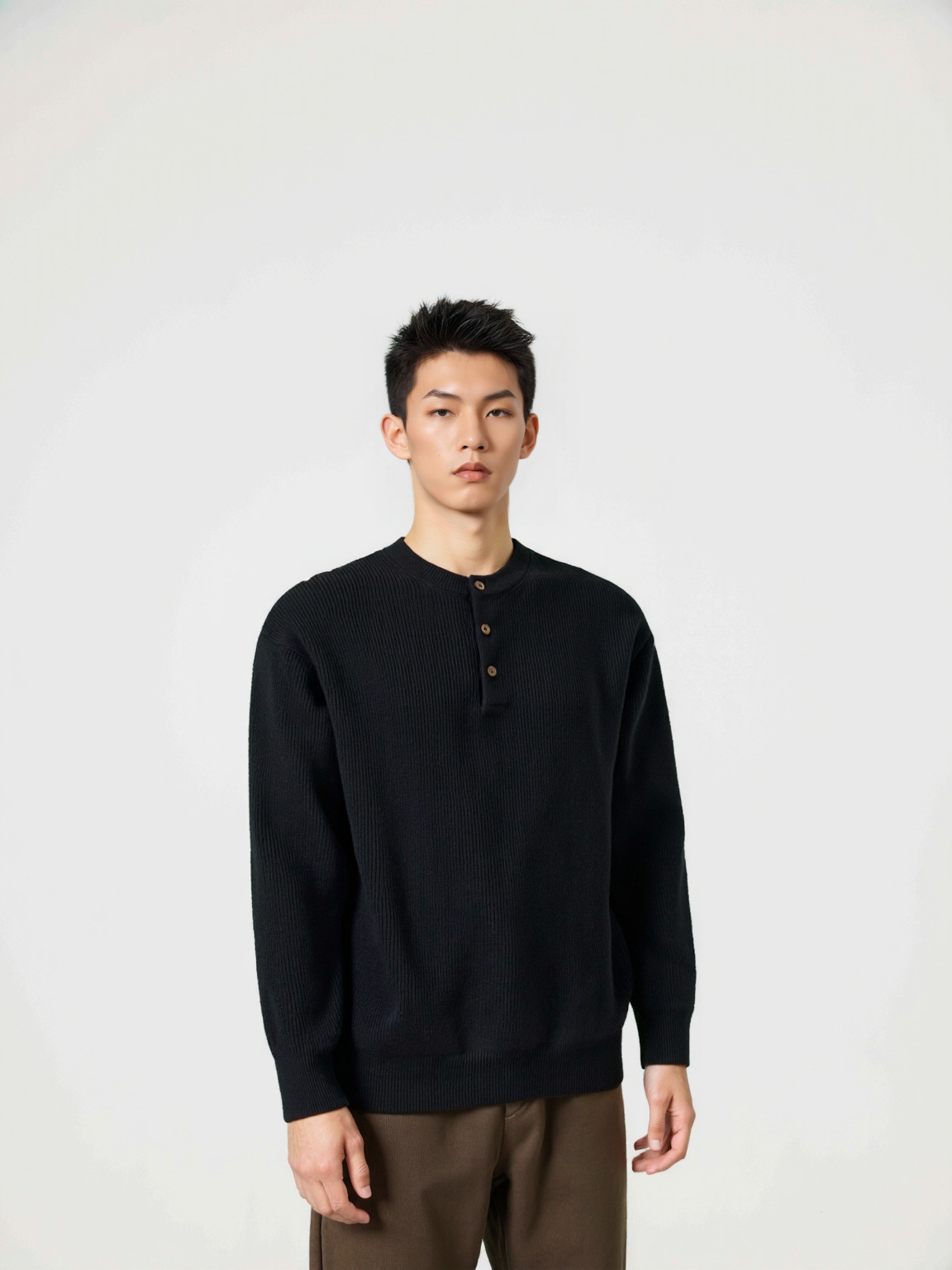2025 새로운 가을, 겨울 올드 머니 스타일 헨리 칼라 풀오버 스웨터 남성 루즈 캐주얼 솔리드 컬러 탑