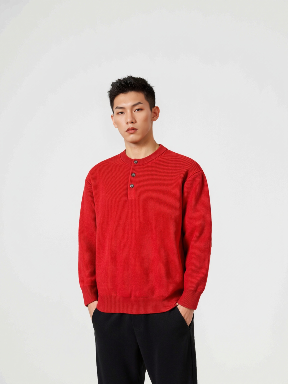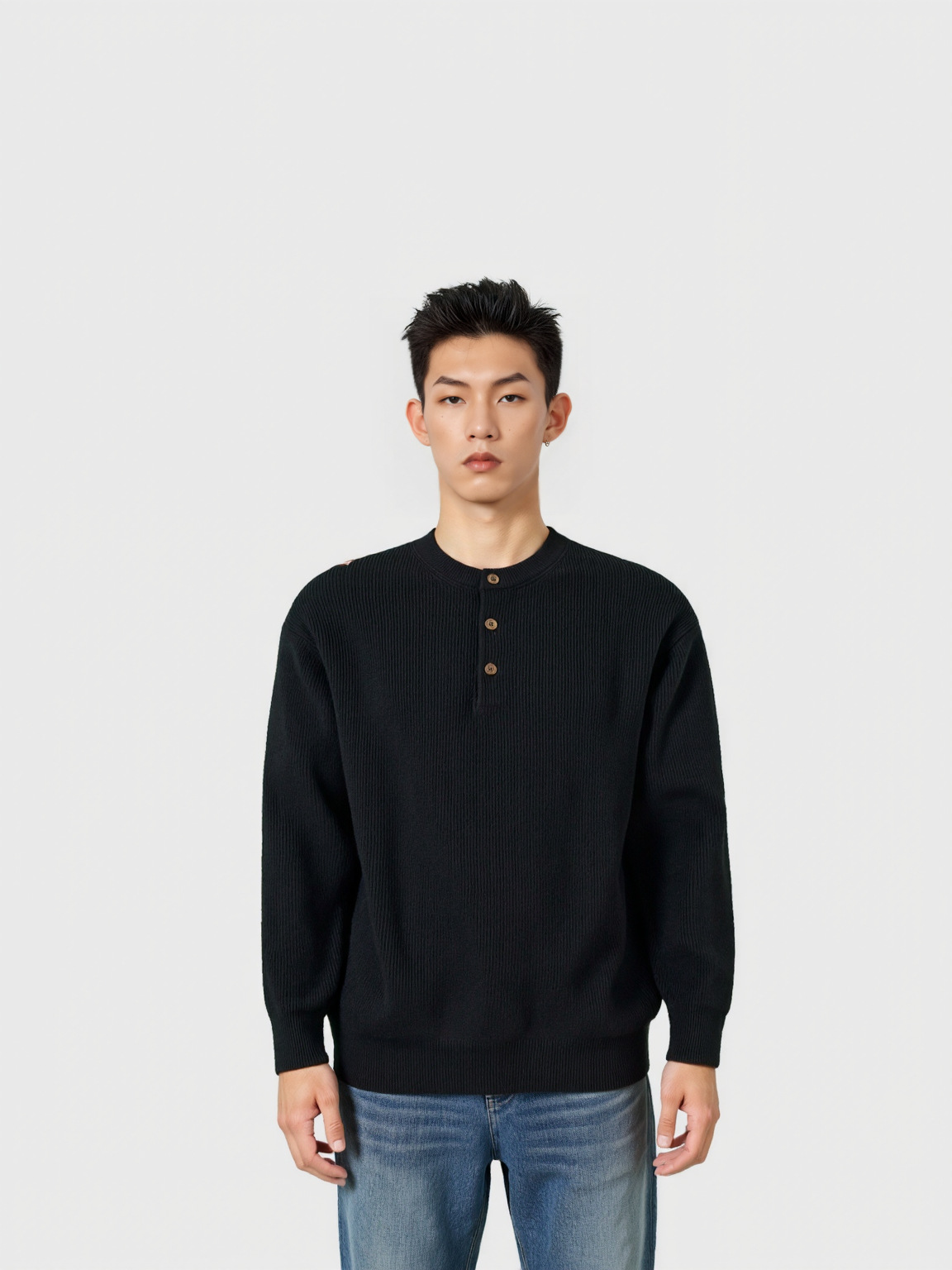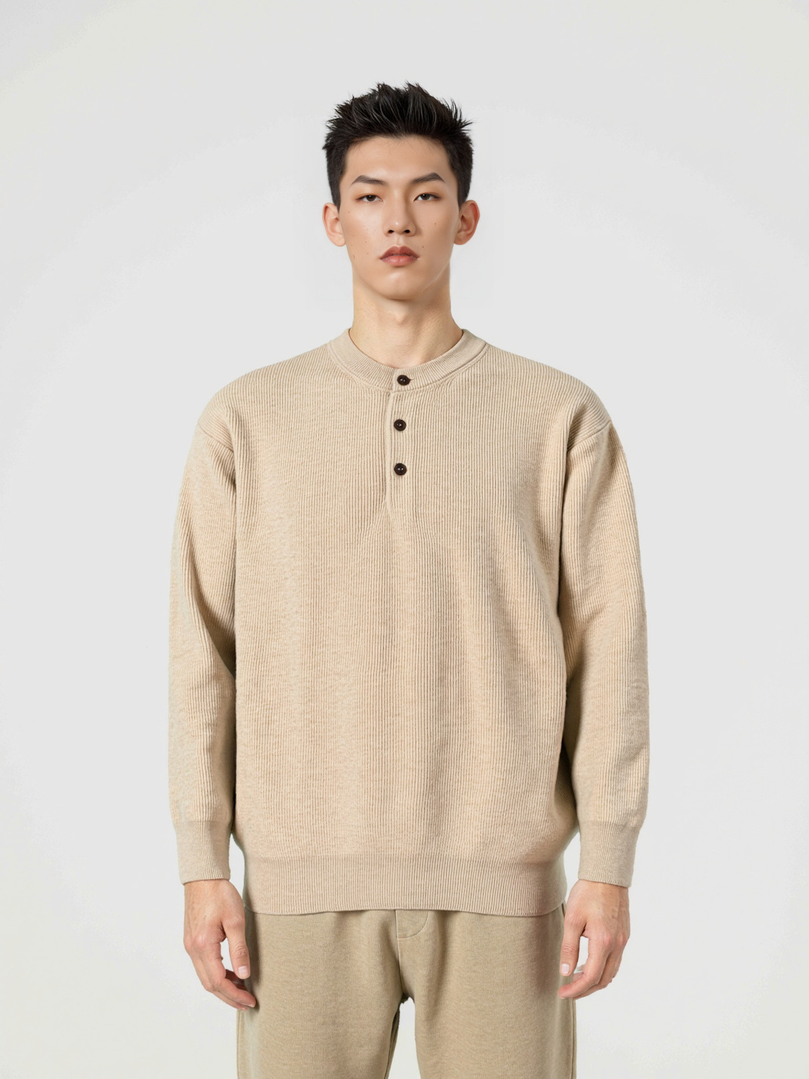 2025 새로운 가을, 겨울 올드 머니 스타일 헨리 칼라 풀오버 스웨터 남성 루즈 캐주얼 솔리드 컬러 탑