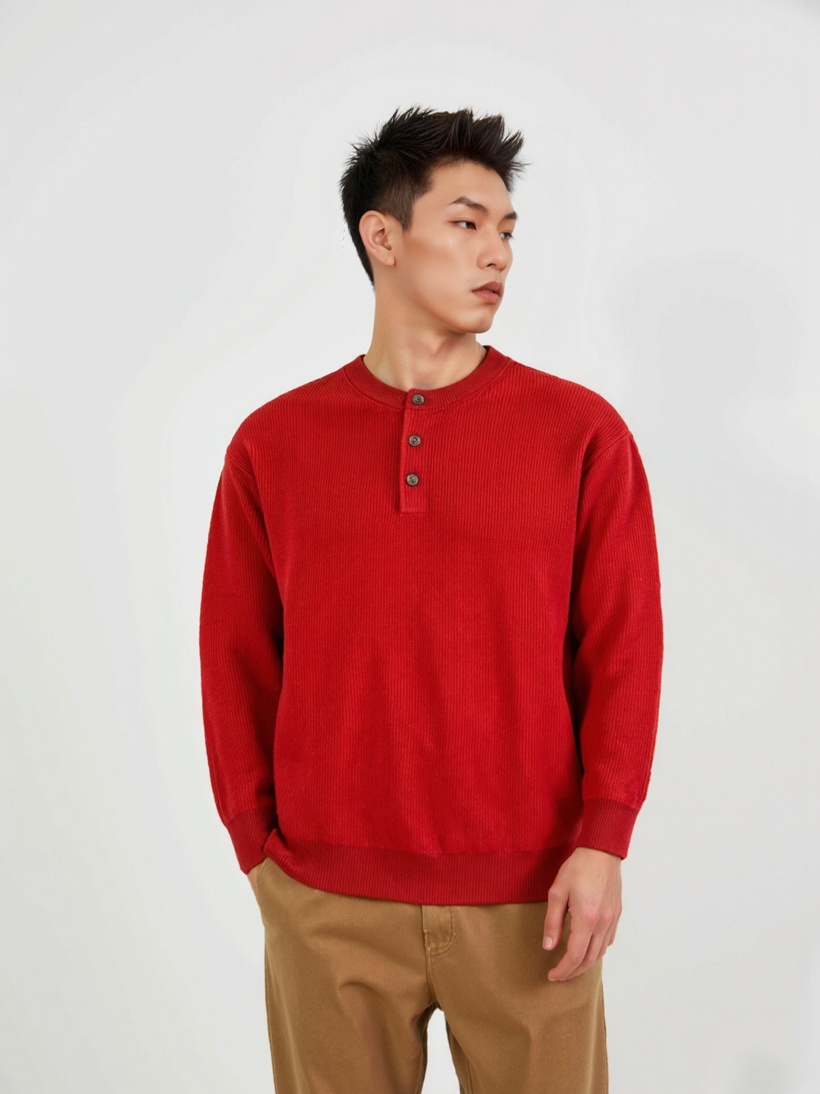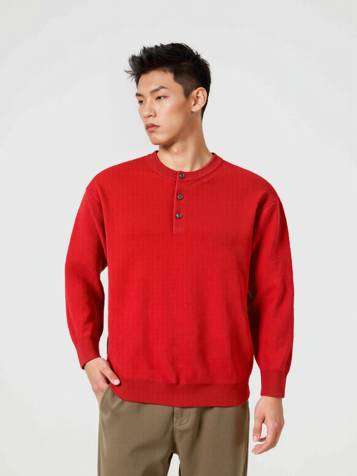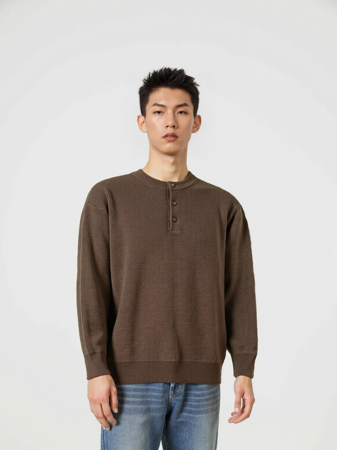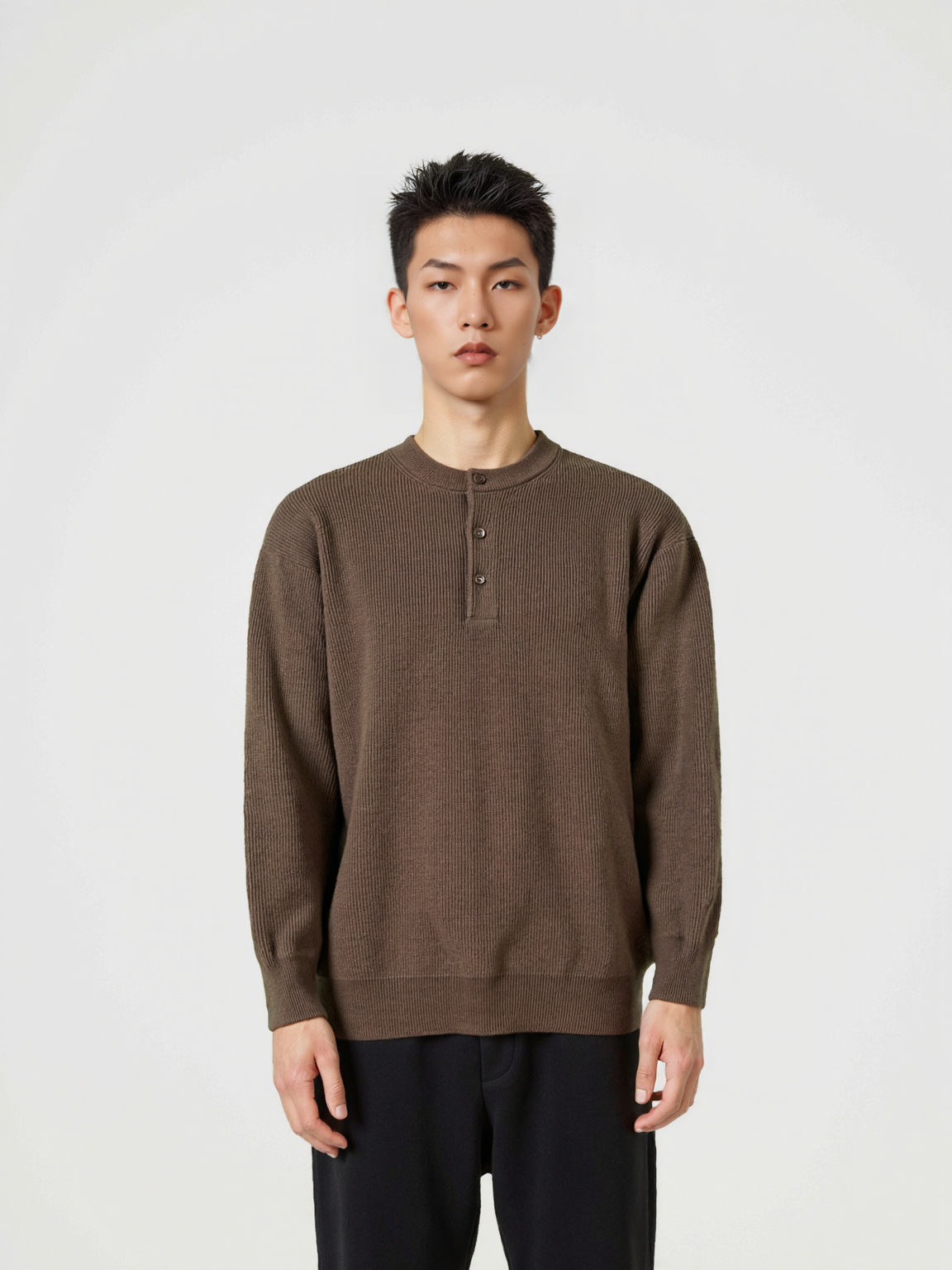2025 새로운 가을, 겨울 올드 머니 스타일 헨리 칼라 풀오버 스웨터 남성 루즈 캐주얼 솔리드 컬러 탑