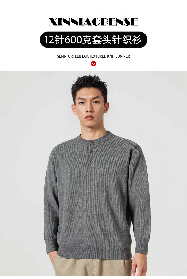 2025 새로운 가을, 겨울 올드 머니 스타일 헨리 칼라 풀오버 스웨터 남성 루즈 캐주얼 솔리드 컬러 탑스토어 가기