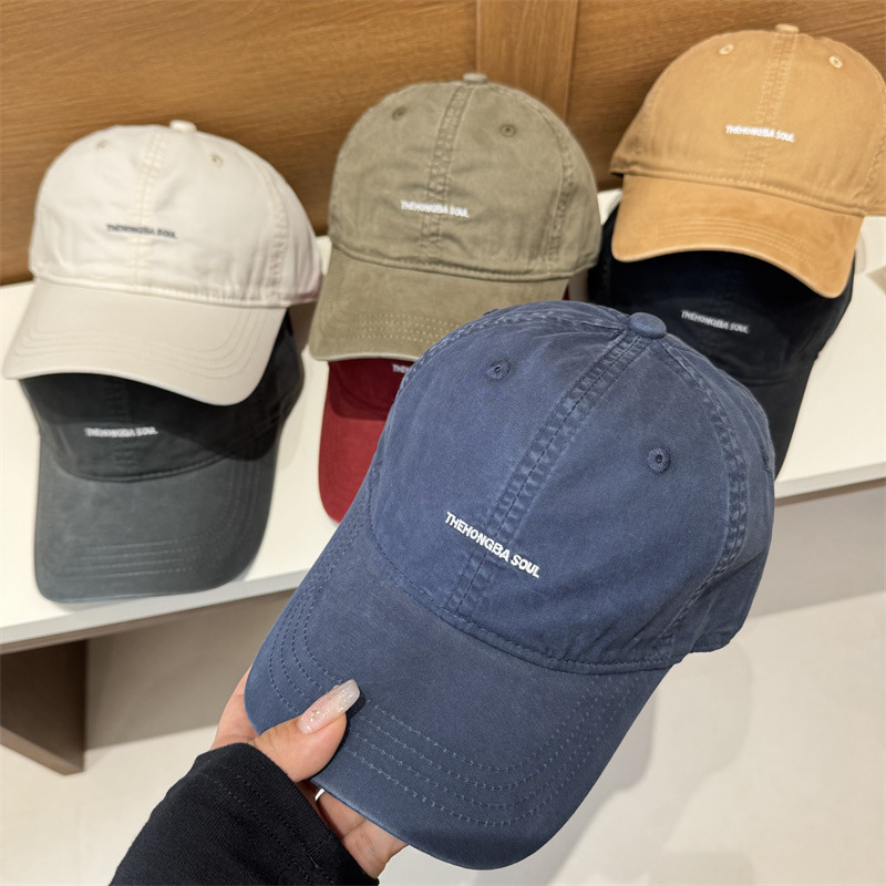 여성을위한 한국어 버전 ins 자수 문자 소프트 탑 피크 캡 봄, 여름 남성용 심플 캐주얼 복고풍 다용도 야구 모자