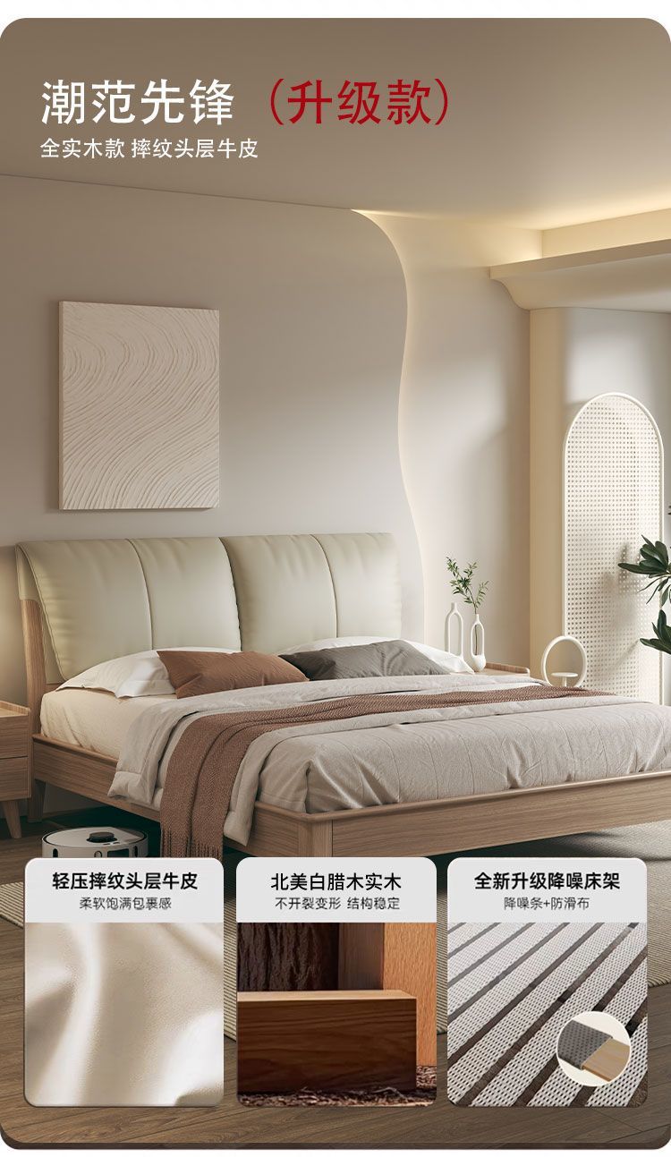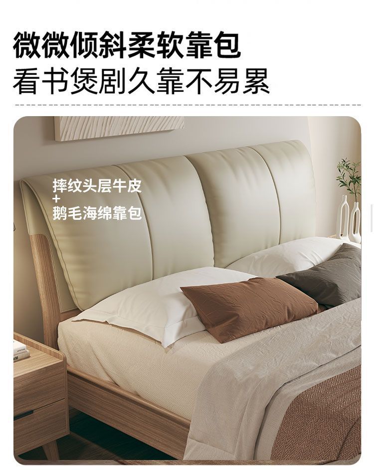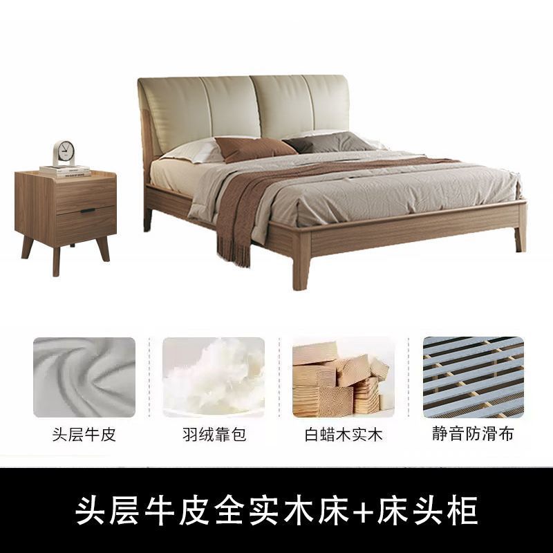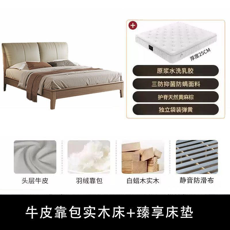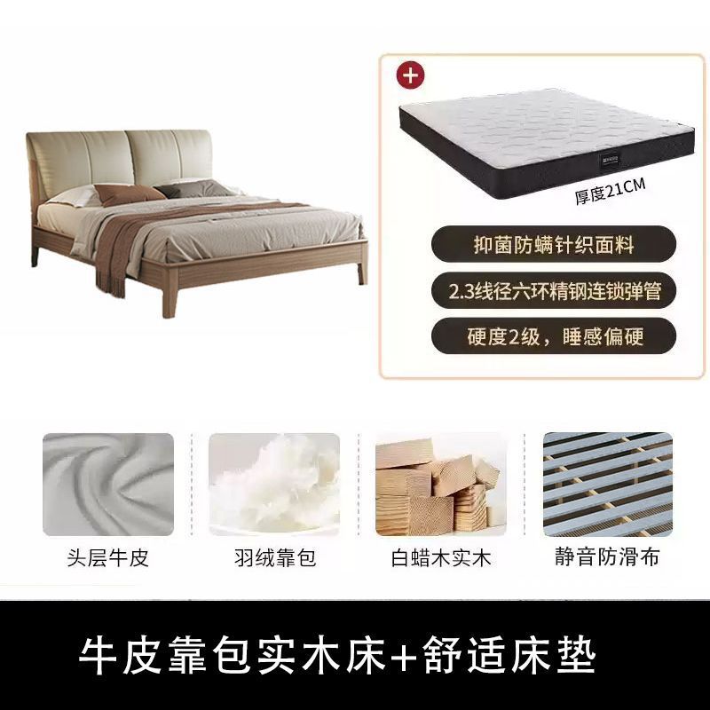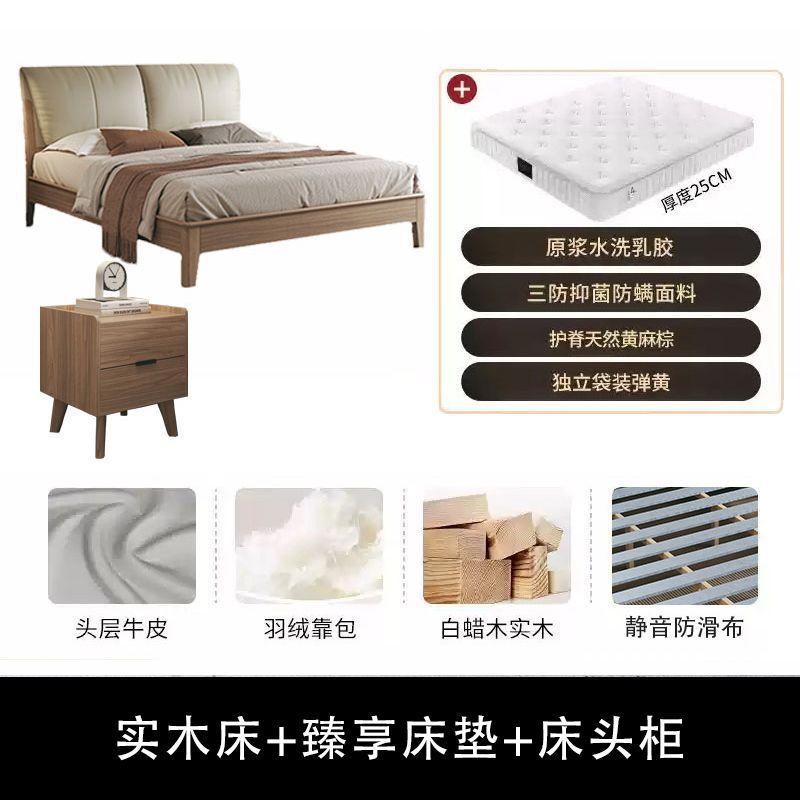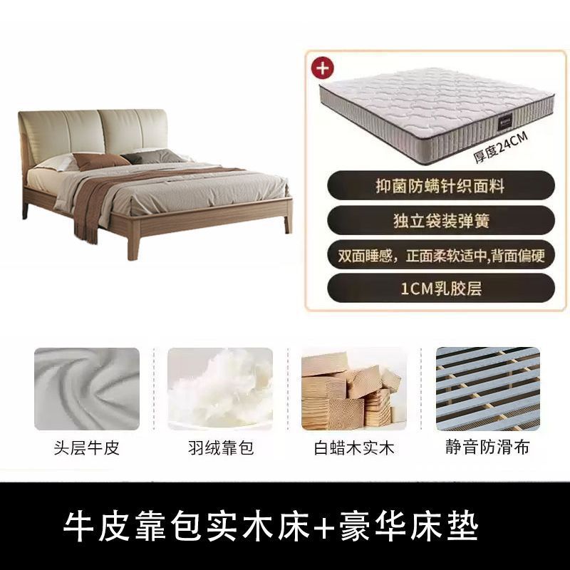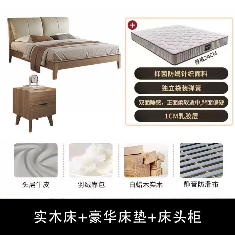 • 물푸레나무 소가죽 원목 침대 + 침대 옆 테이블 + Zhenxiang 매트리스