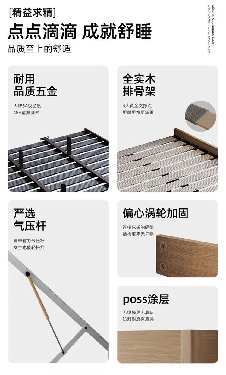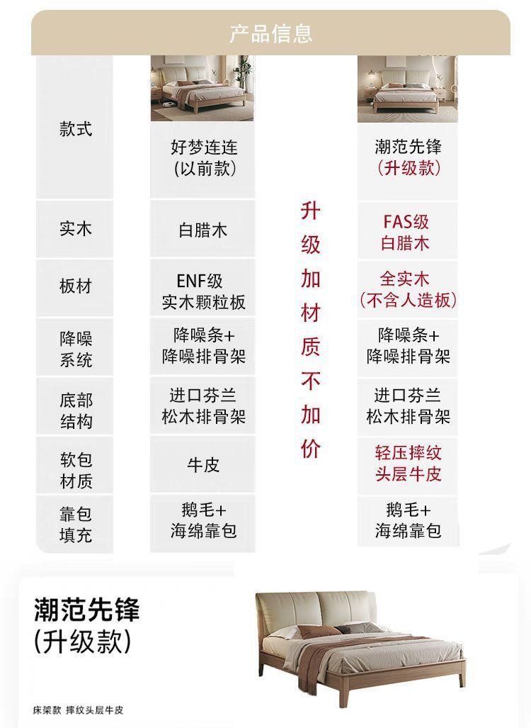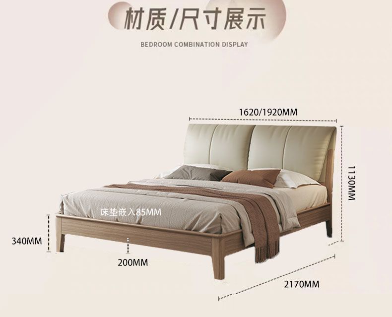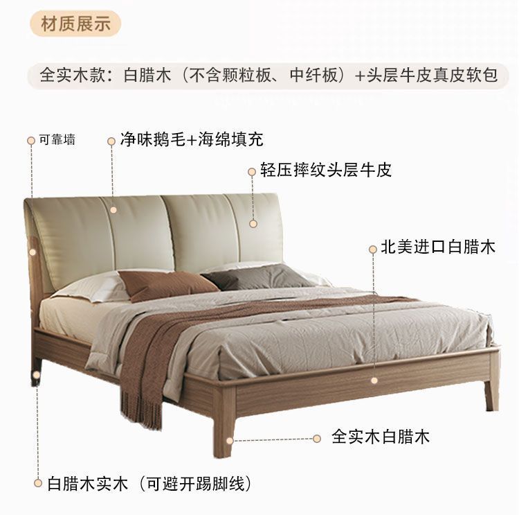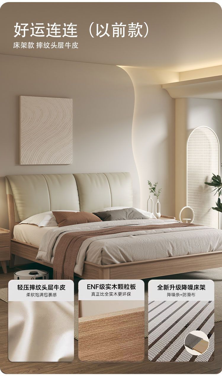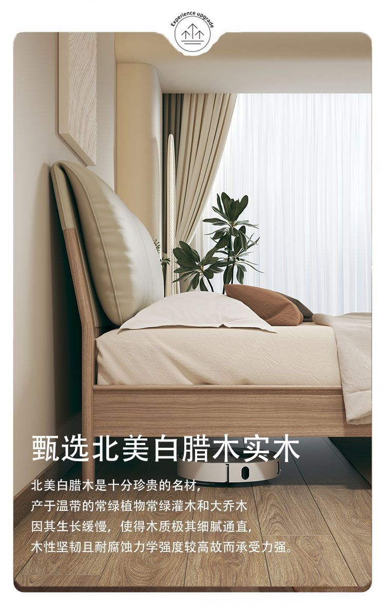 • 물푸레나무 소가죽 원목 침대 + 침대 옆 테이블 + Zhenxiang 매트리스