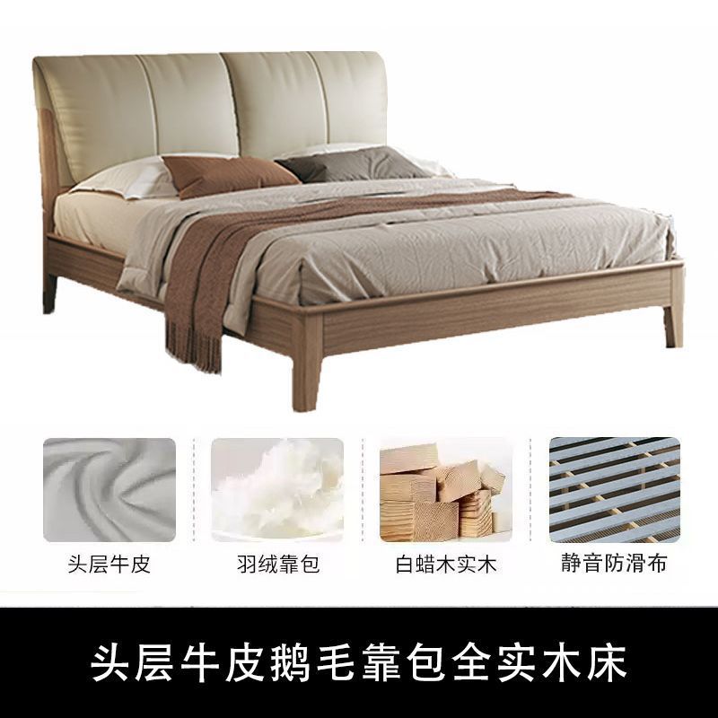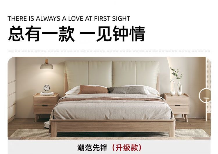 현대적인 심플한 북유럽 1.8 마스터 침실 더블 침대 1.5m 침대 홈 소프트 등받이 웨딩 침대 갈비 원목 침대 전체 원목스토어 가기