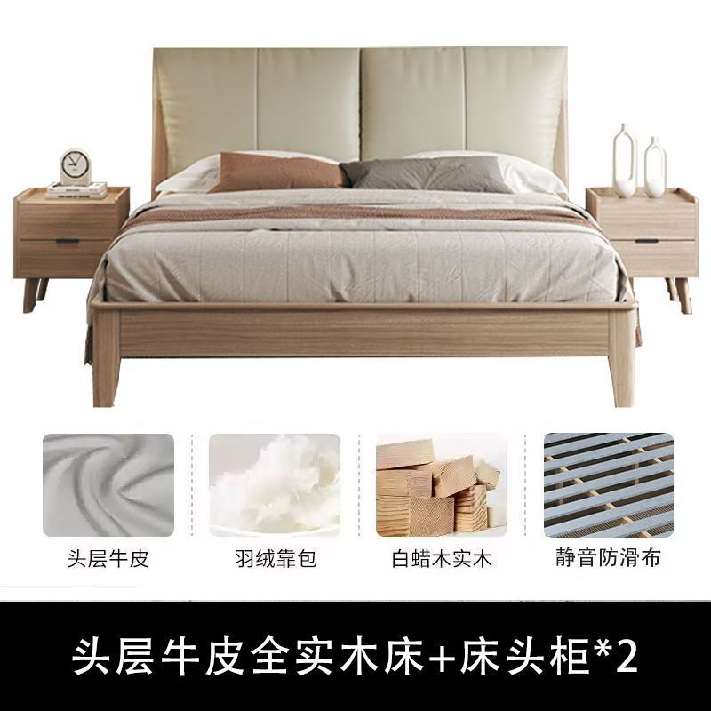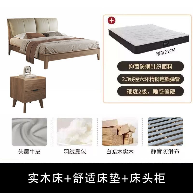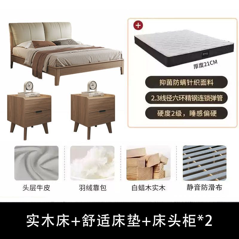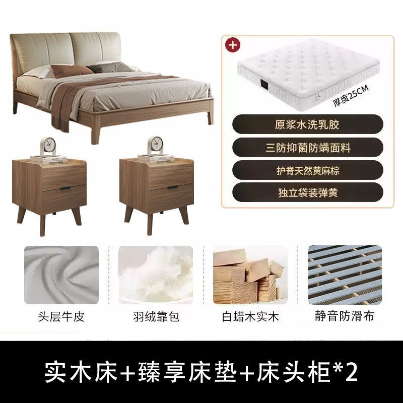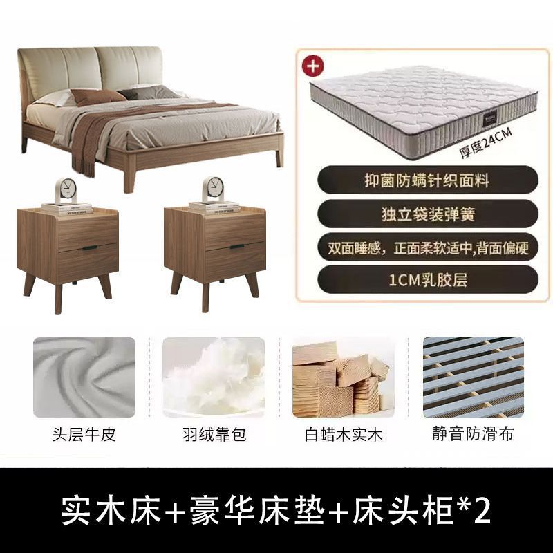 • 물푸레나무 소가죽 원목 침대 + 침대 옆 테이블 * 2 + Zhenxiang 매트리스