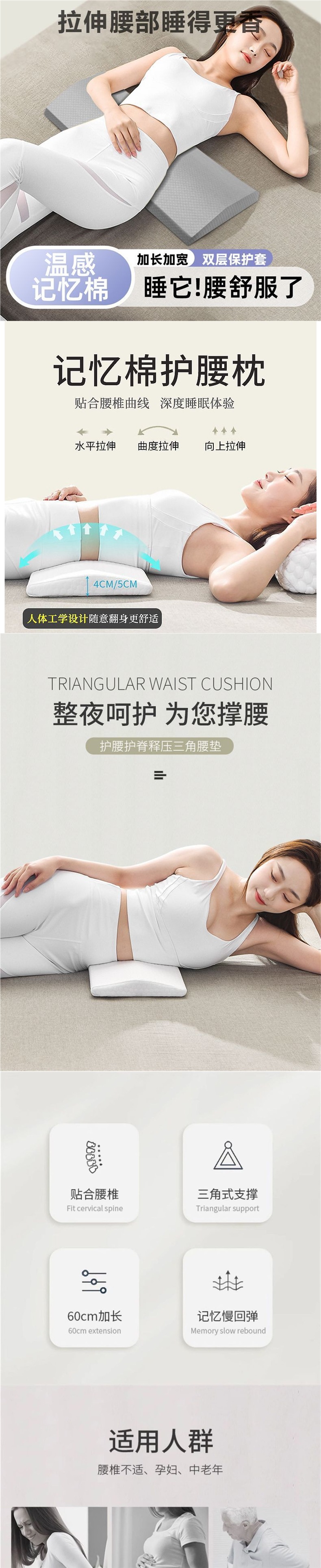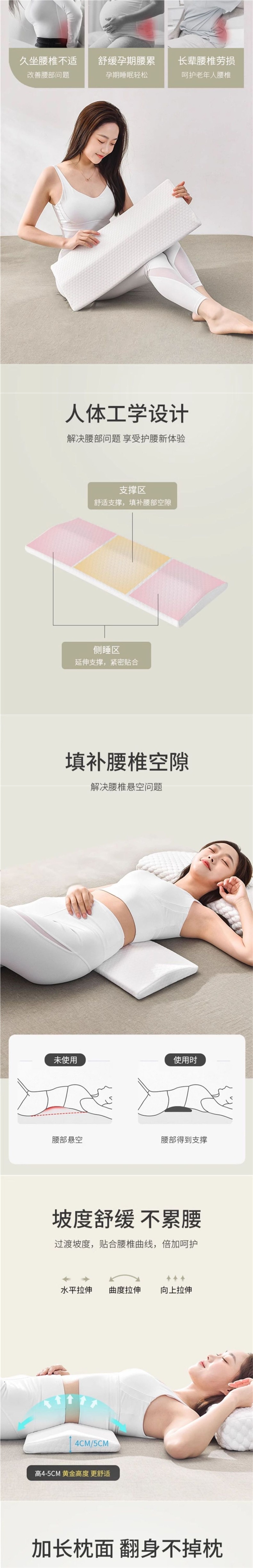 메모리 폼 요추 베개 침대 플랫 사이드 레이 허리 쿠션 허리 지지대 요추 지지대 인체 공학적 플랫 레이 수면
