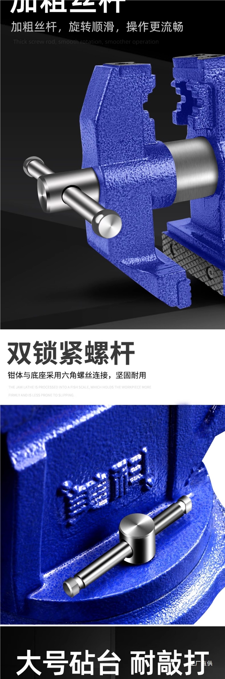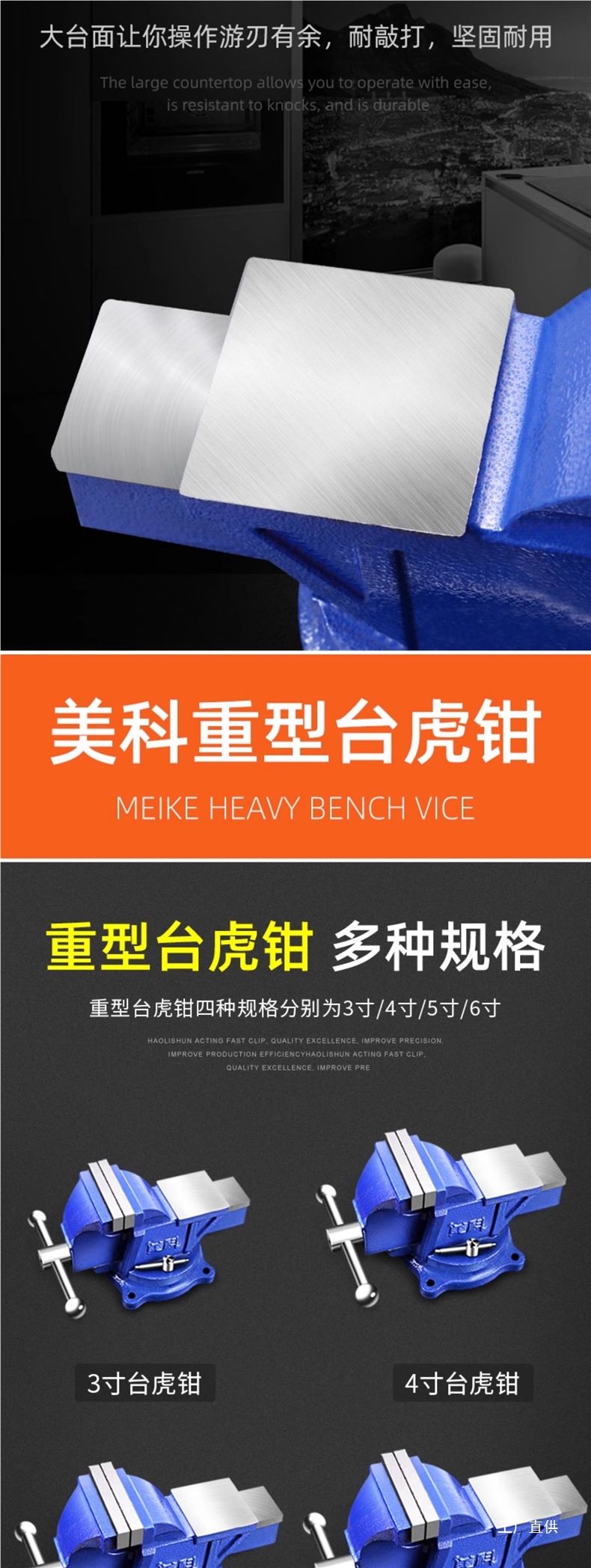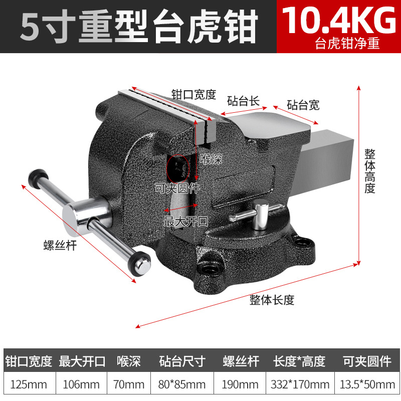 • 10inch 견고한 바이스(무거운 작업)는 볼트와 함께 제공됩니다.