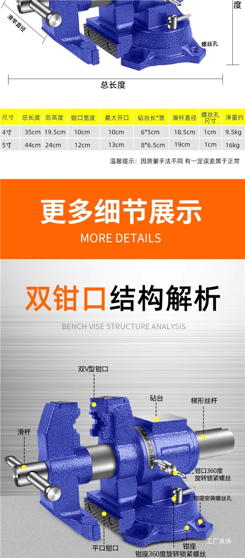 • 5inch 견고한 바이스(볼트 제공) + 나사 보호 스트립