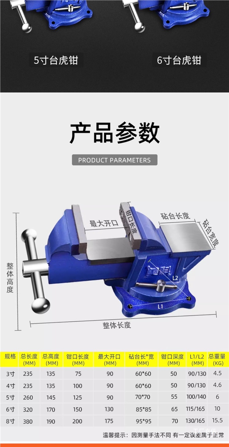 • 6inch 견고한 바이스(볼트 제공) + 나사 보호 스트립