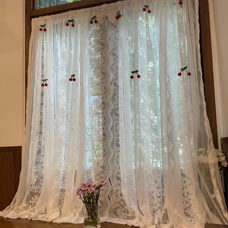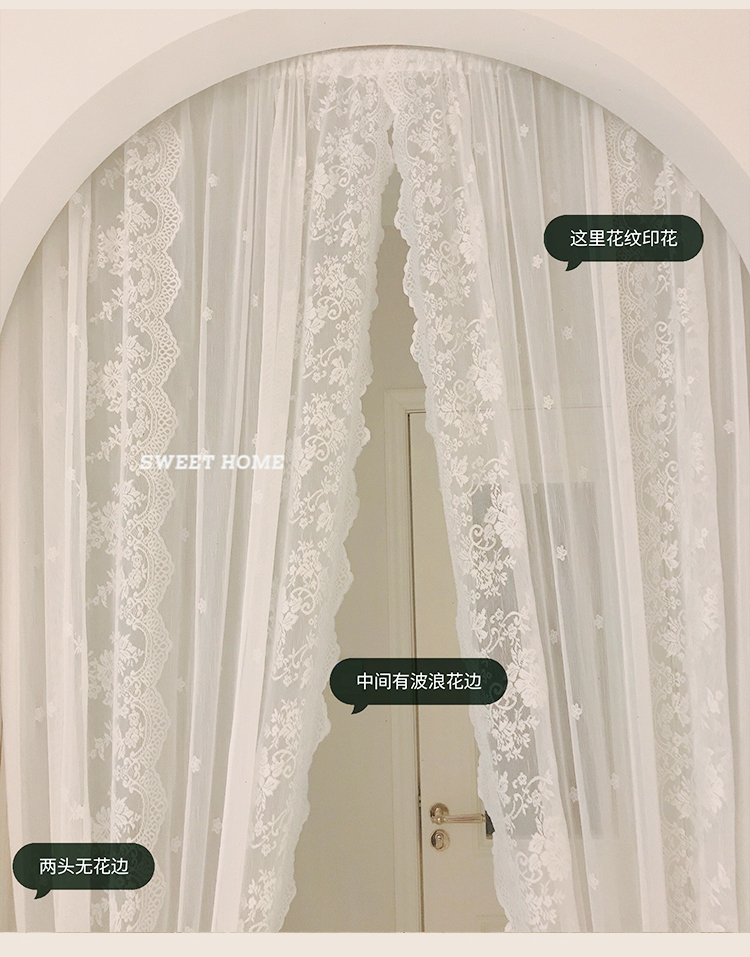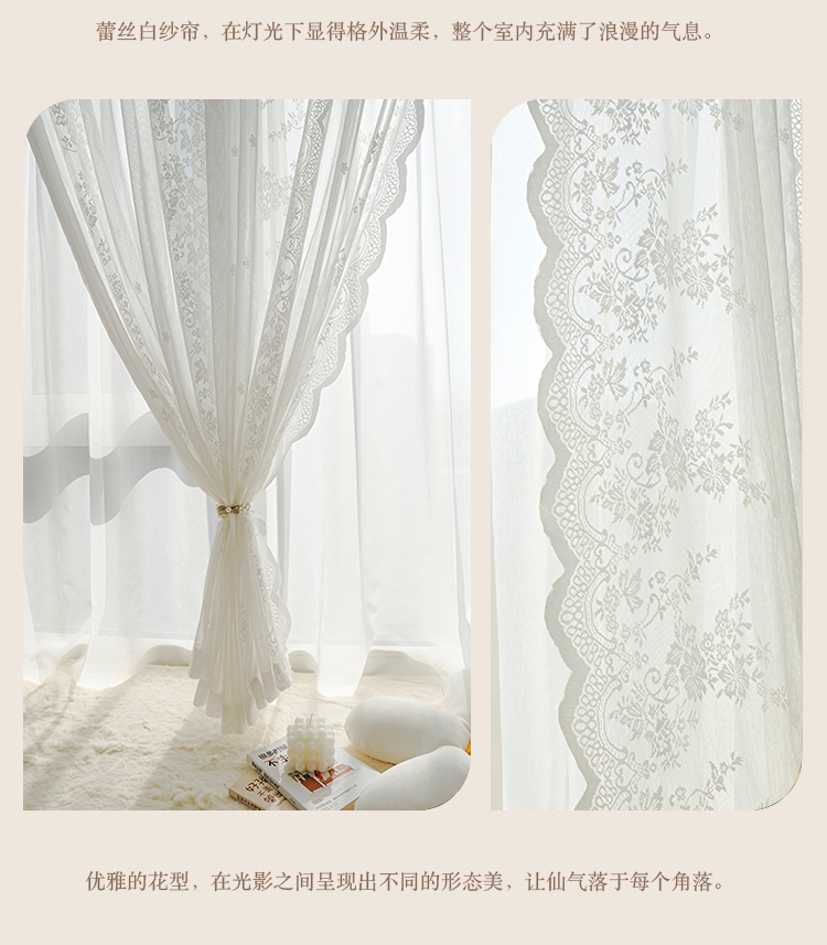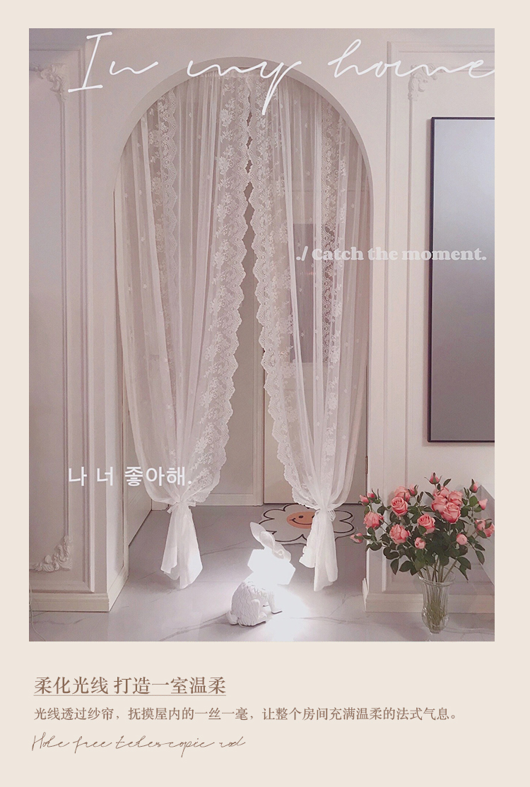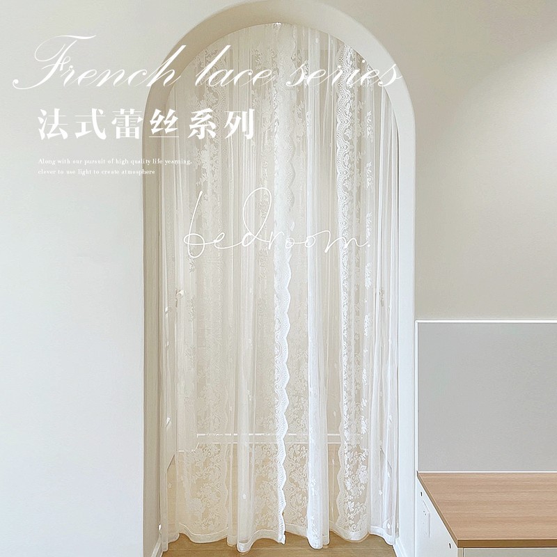 벨크로 펀치없는 레이스 흰색 거즈 복고풍 프랑스 침실 스타일 소녀 파티션 도어 커튼 거즈 커튼 커튼 미터스토어 가기