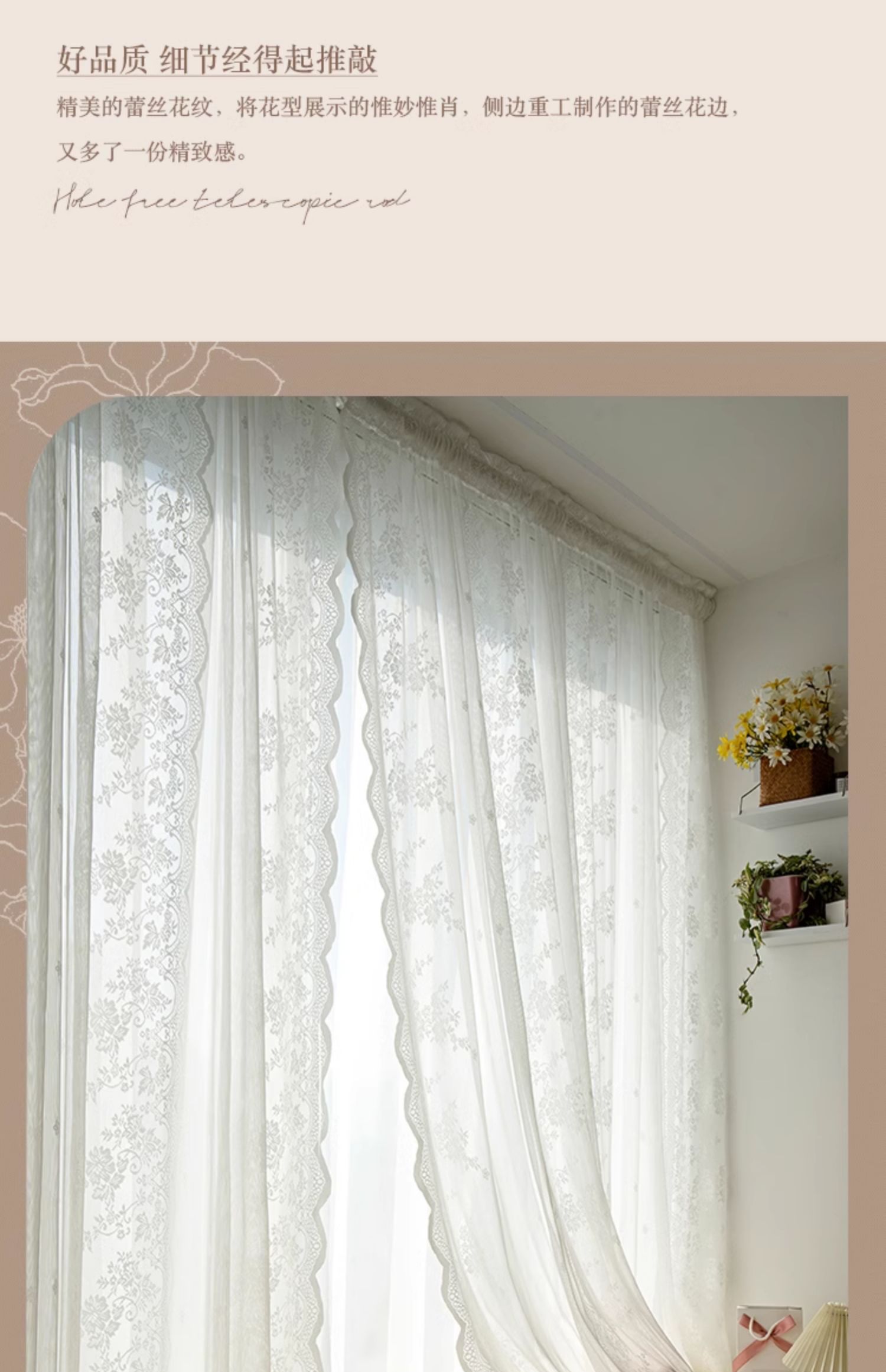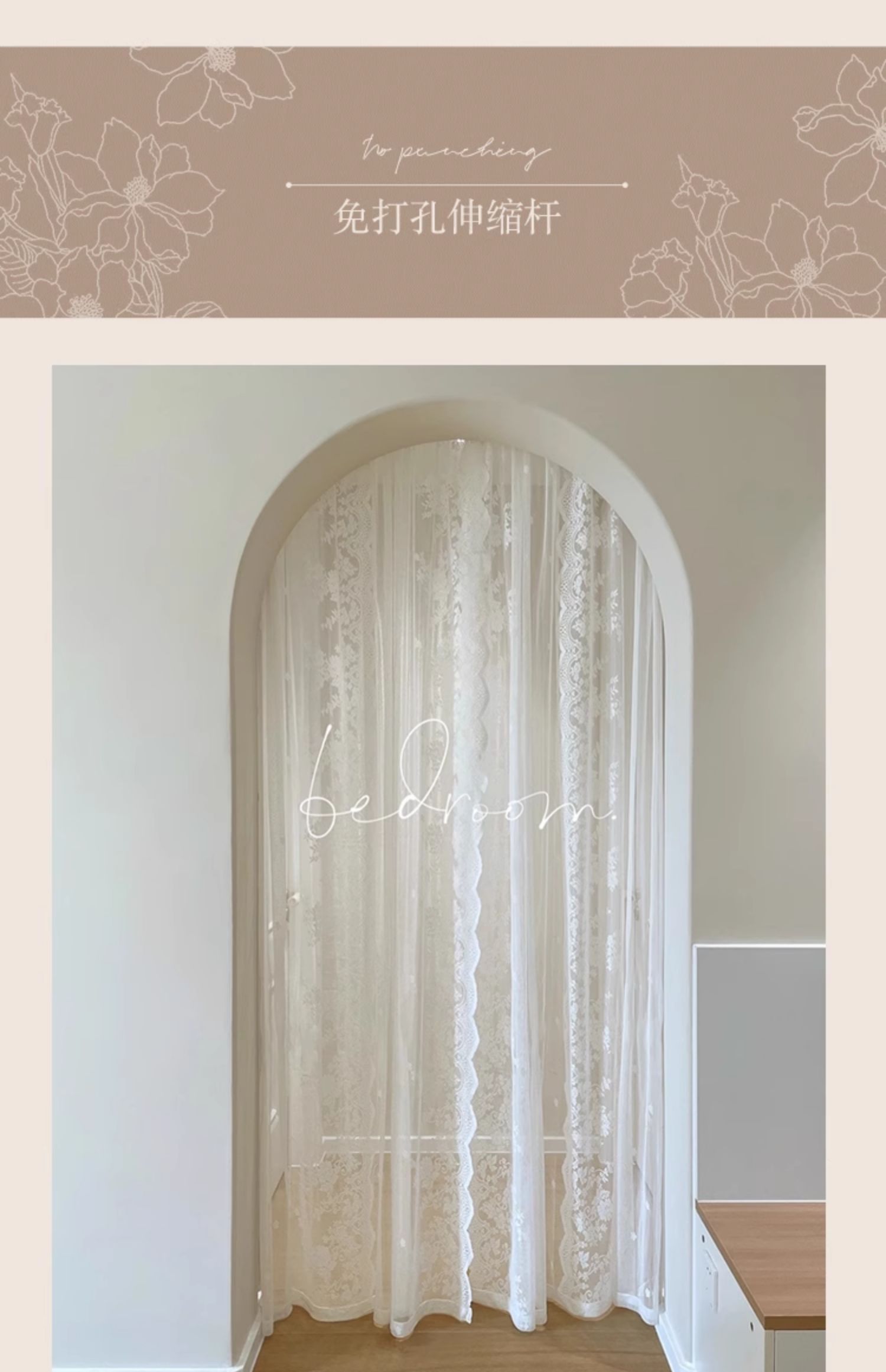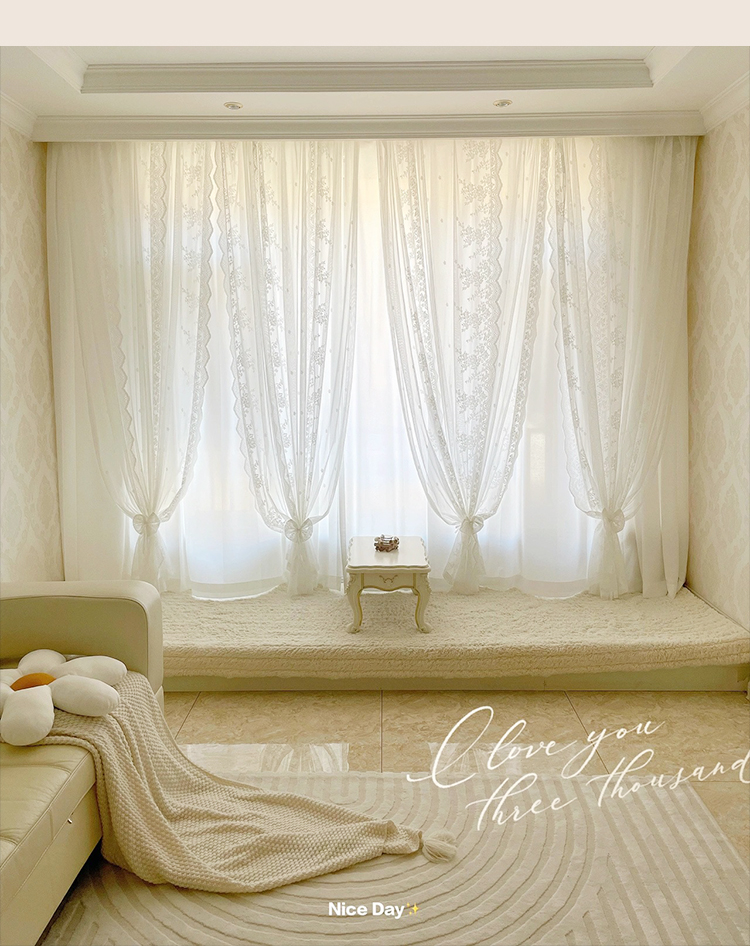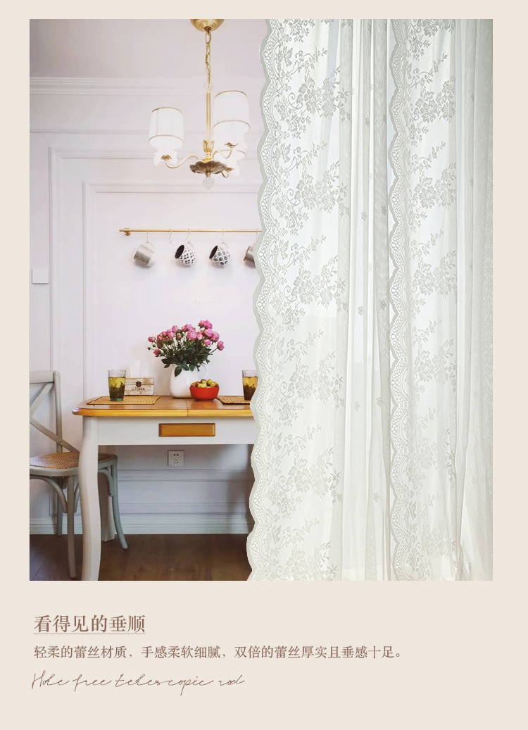 벨크로 펀치없는 레이스 흰색 거즈 복고풍 프랑스 침실 스타일 소녀 파티션 도어 커튼 거즈 커튼 커튼 미터스토어 가기