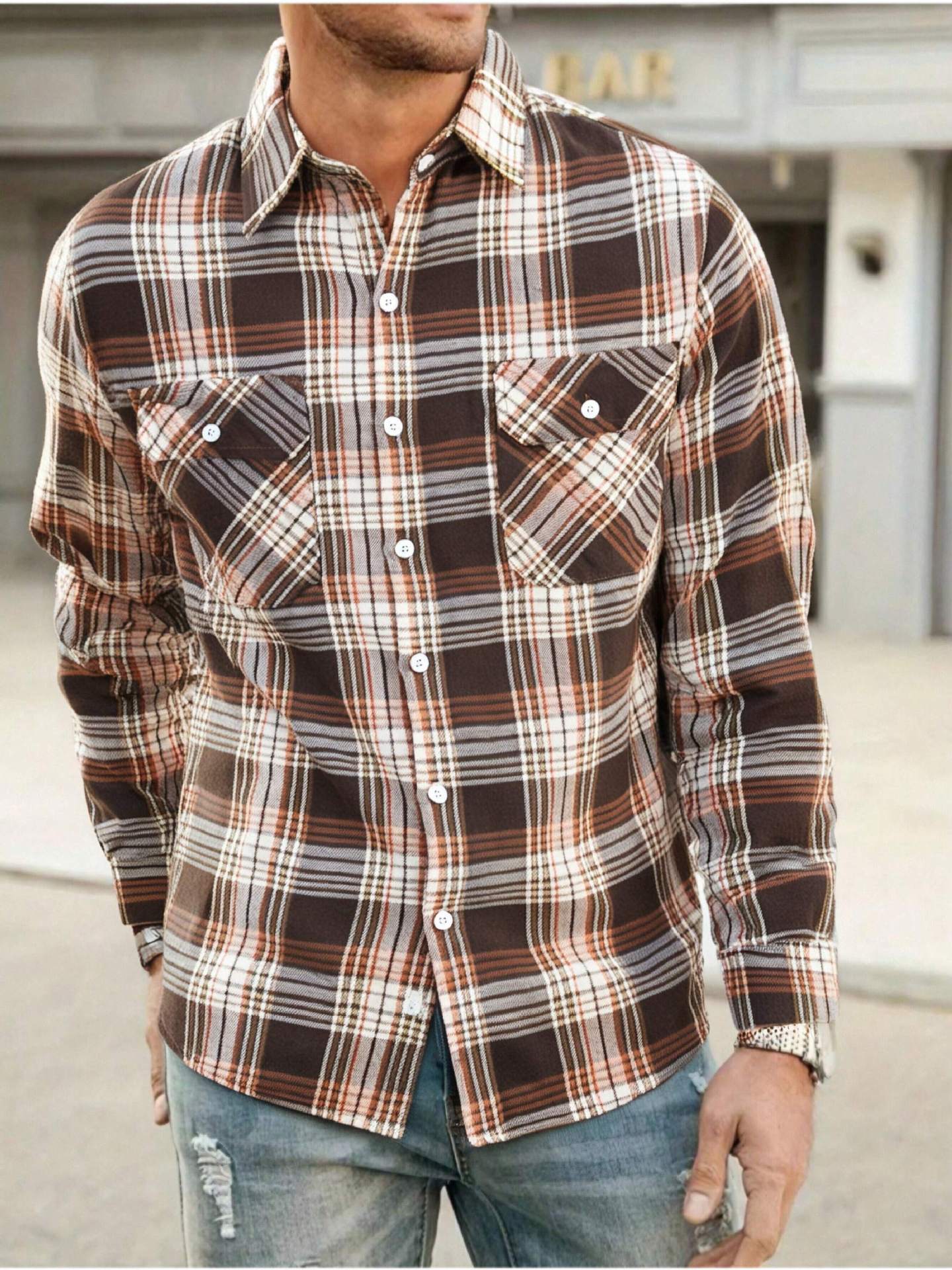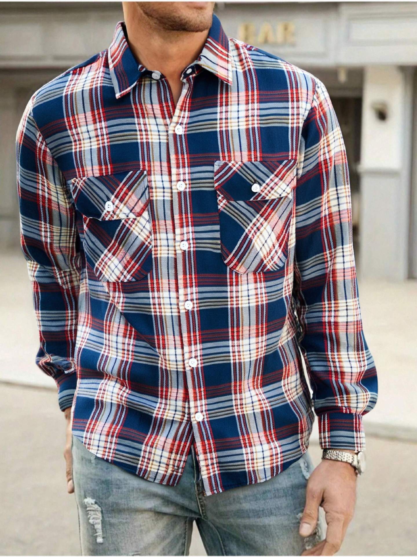 봄, 가을, 겨울 셔츠 대외 무역 격자 무늬 긴팔 셔츠 유럽과 미국 남성 격자 무늬 셔츠 유행 남성 기모 셔츠